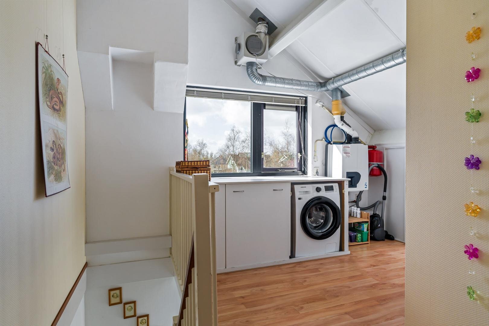 De tweede verdieping beschikt over nog eens twee ruime slaapkamers, een wasgelegenheid en veel extra opbergruimte, wat zorgt voor extra wooncomfort en functionaliteit.