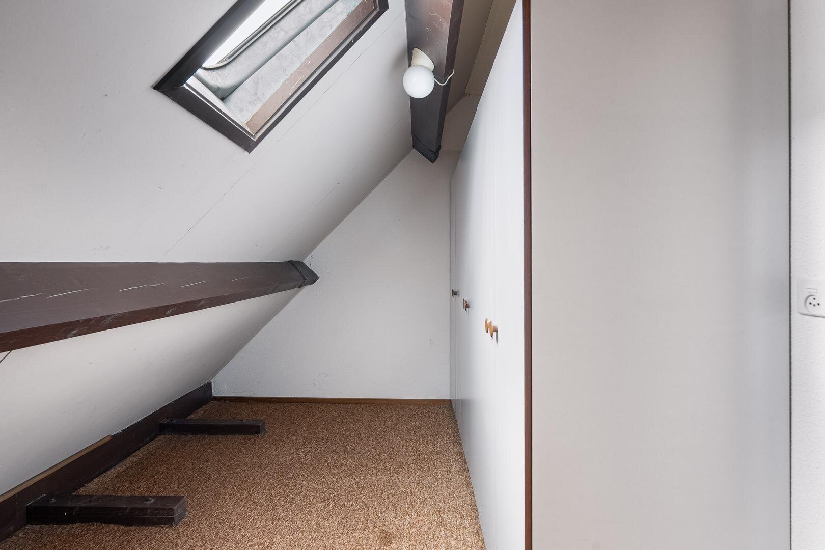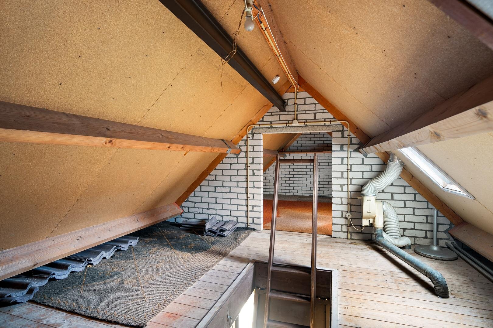 Via een vlizotrap bereik je de ruime bergzolder, ideaal voor extra opslagruimte.