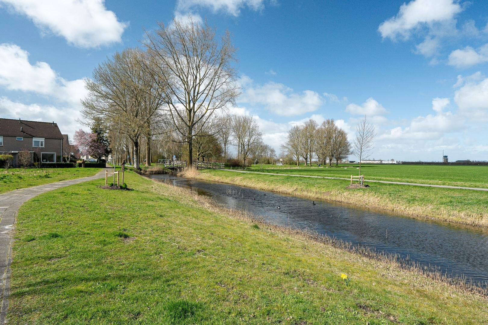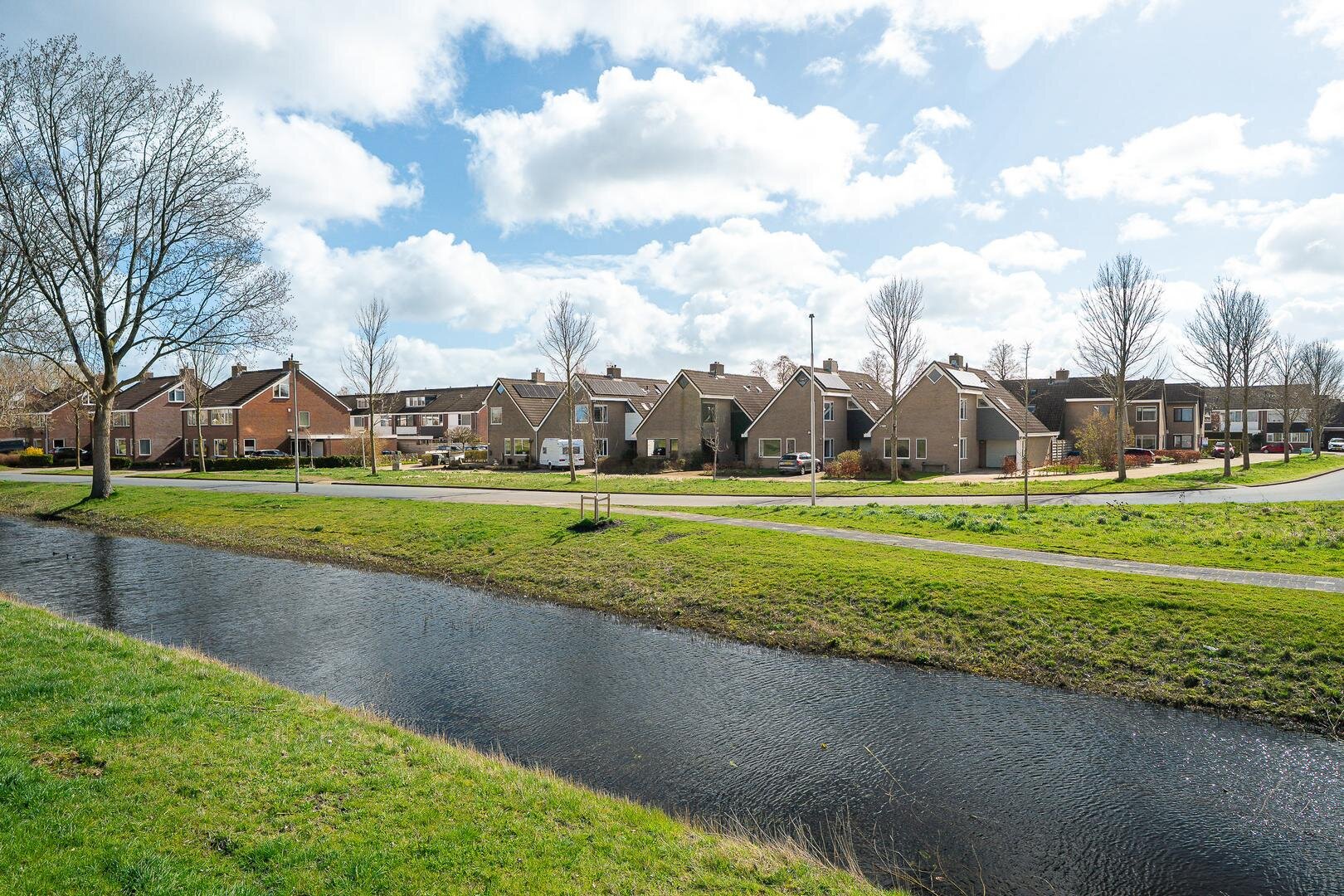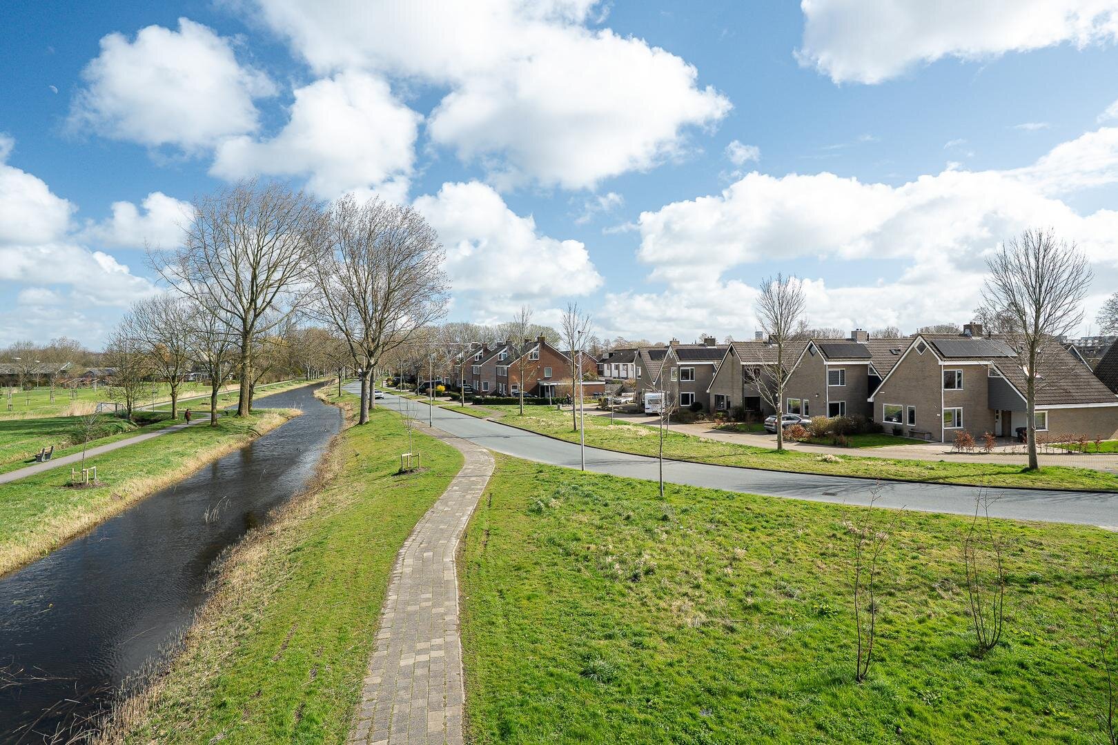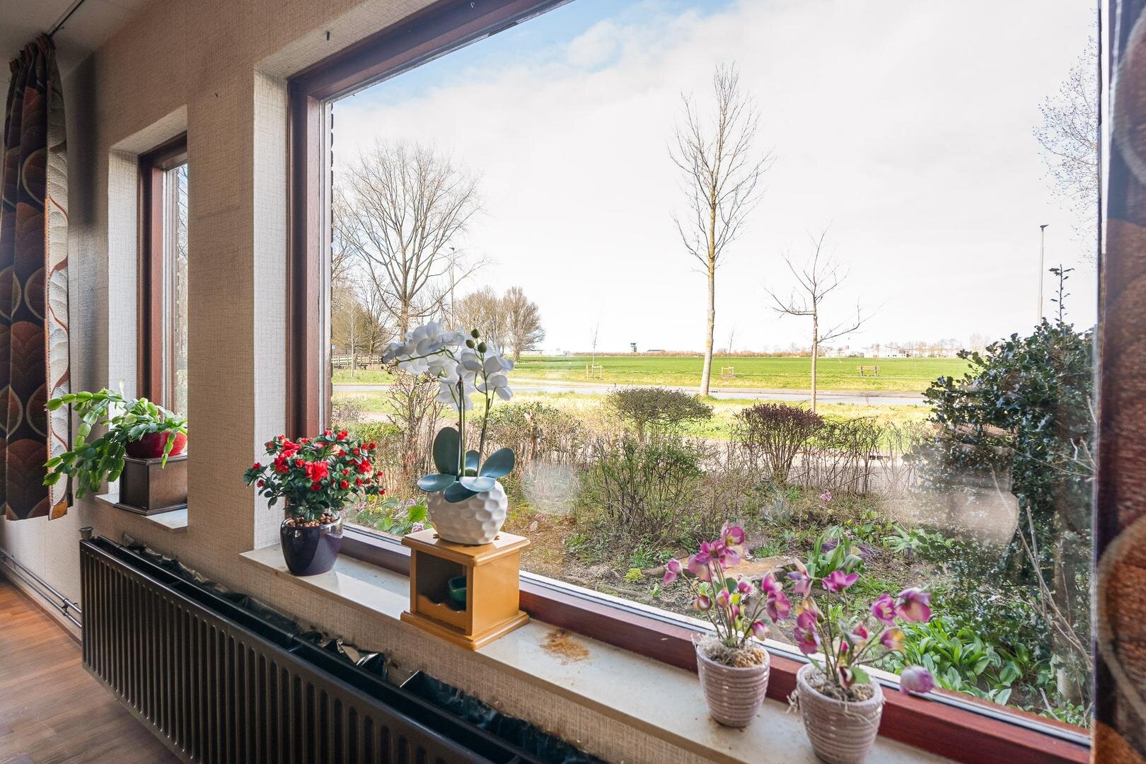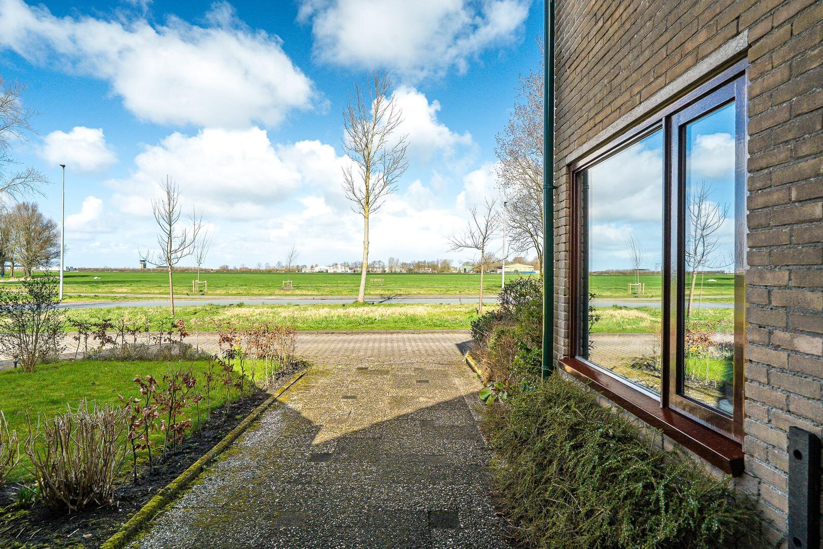 De woning beschikt over een ruime achtertuin op het zuiden, waar je volop kunt genieten van de zon en privacy. Met wat onderhoud en het aanleggen van een terras en eventueel een overkapping creëer je hier een heerlijke plek waar je de hele zomer kunt vertoeven. Aan de voorzijde ervaar je het unieke vrije uitzicht over de landerijen en het water. Een zeldzame kwaliteit binnen de stad. Parkeren kan op eigen erf.