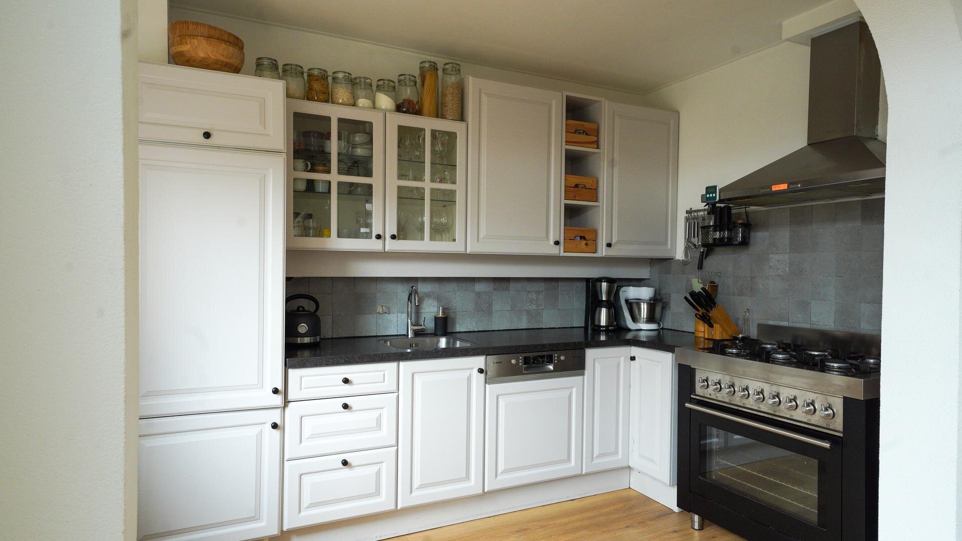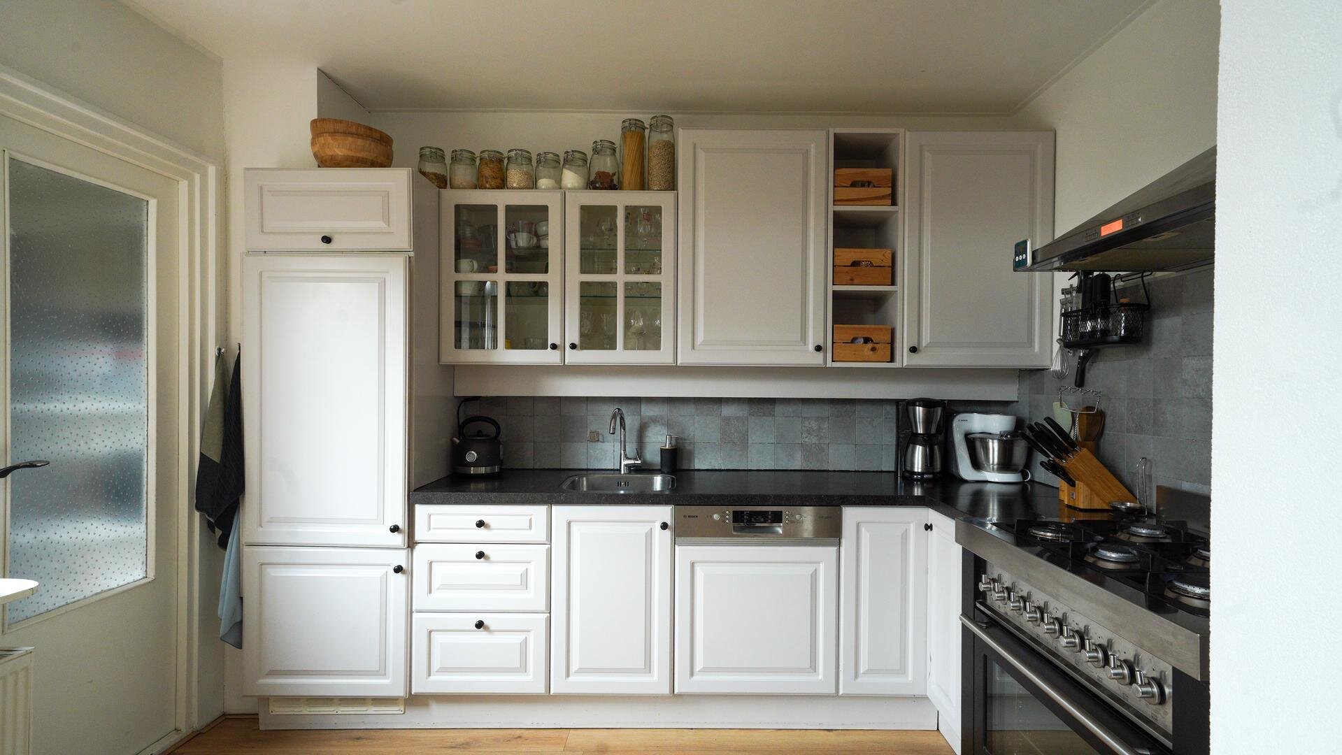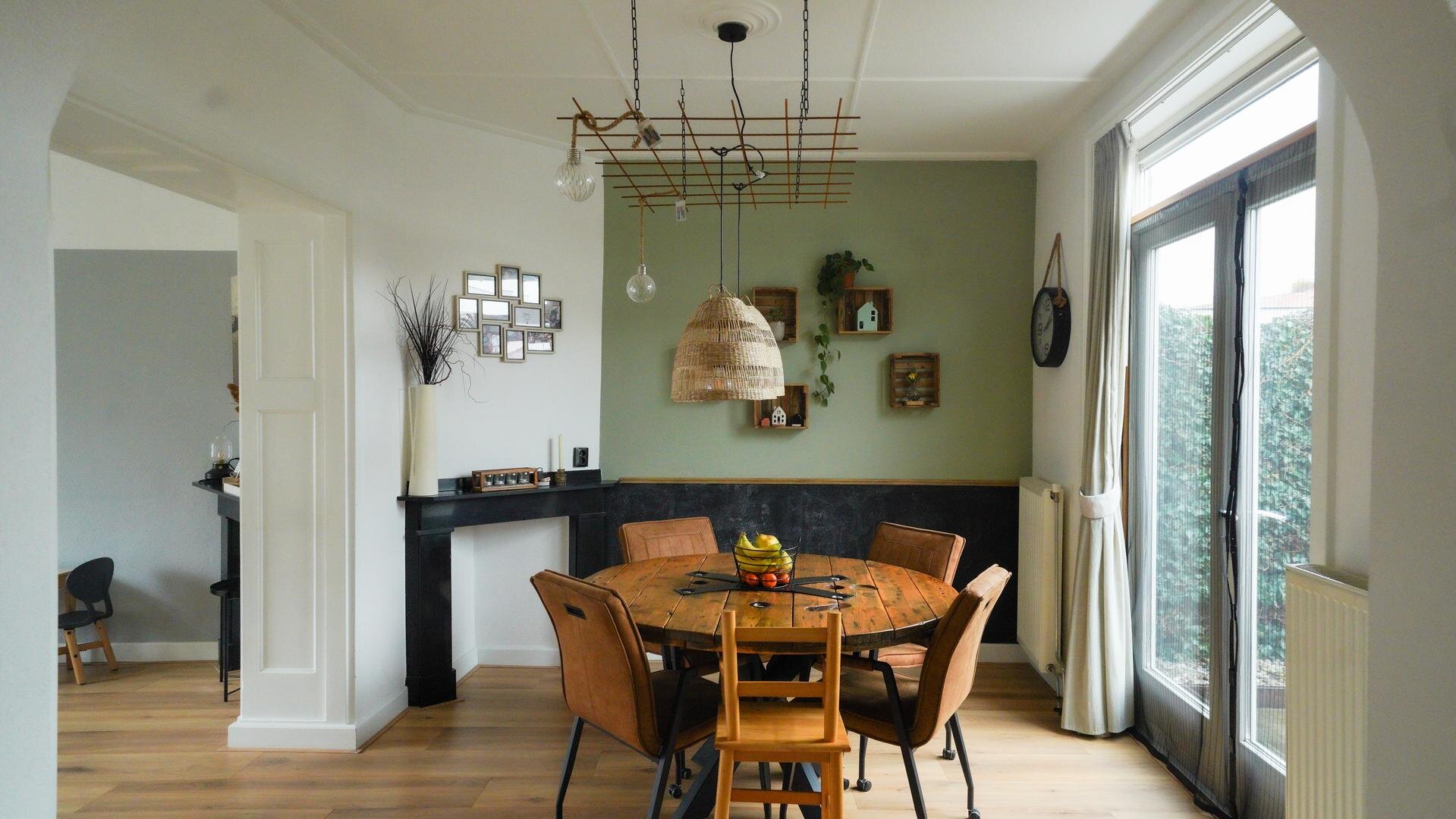 Via de entree kom je in de hal met trapopgang, meterkast en praktische trapkast. De lichte woonkamer heeft een prettige indeling en staat in verbinding met de ruime keuken, die is voorzien van diverse inbouwapparatuur. Vanuit de achterkamer openen de tuindeuren naar de achtertuin, waardoor binnen en buiten mooi in elkaar overlopen.