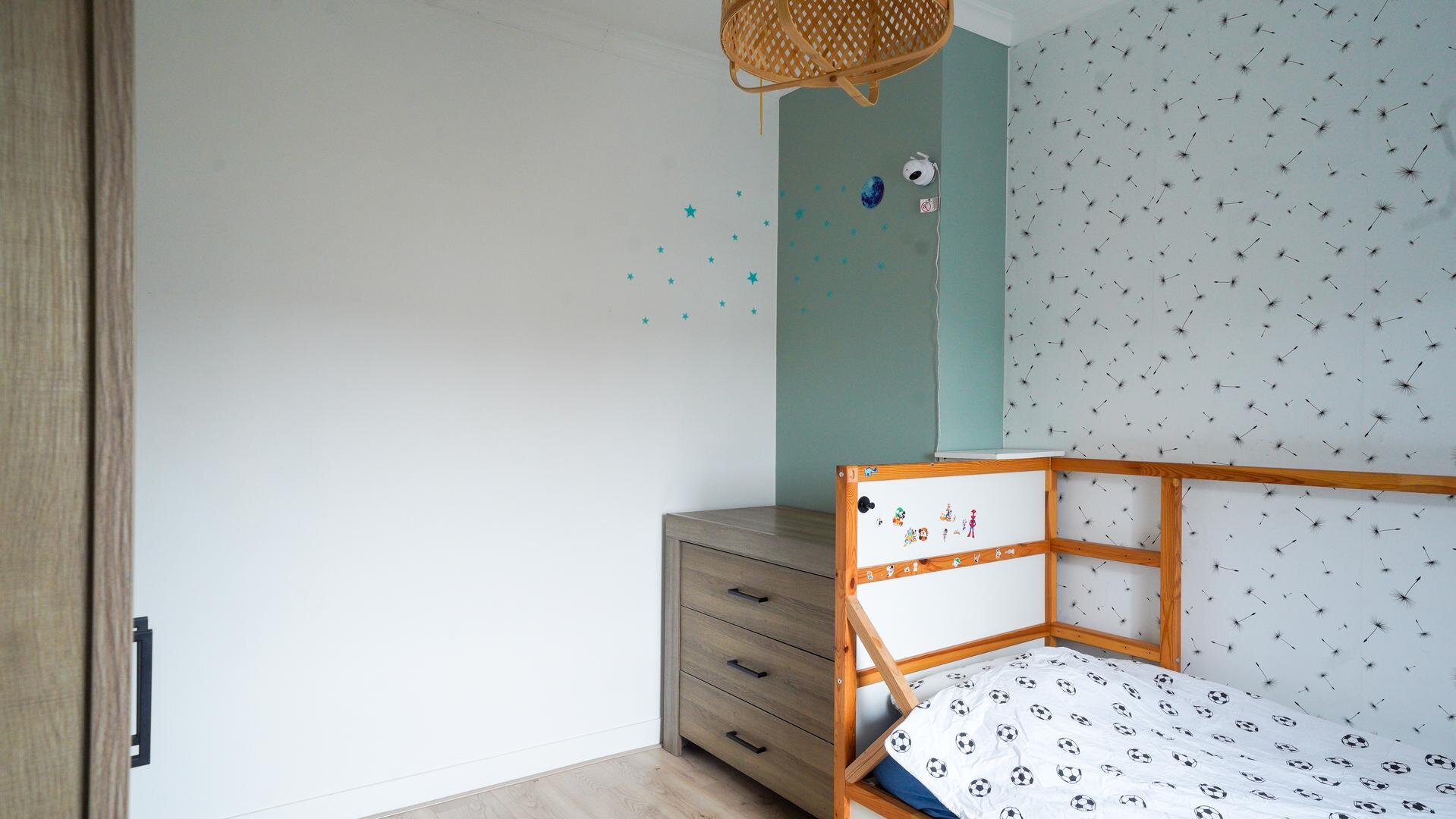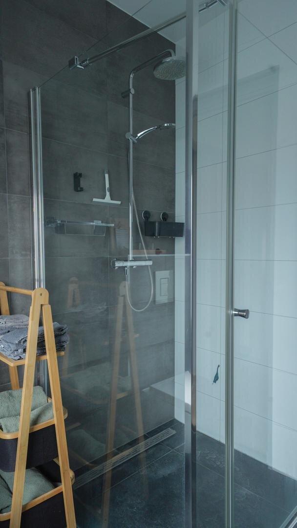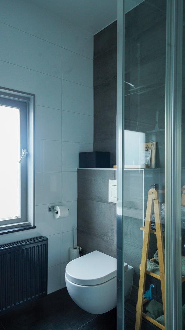 De overloop geeft toegang tot twee ruime slaapkamers (voorheen drie kamers) en een moderne badkamer. Deze badkamer is in 2019 vernieuwd en beschikt over een douche, toilet en dubbele wastafel.