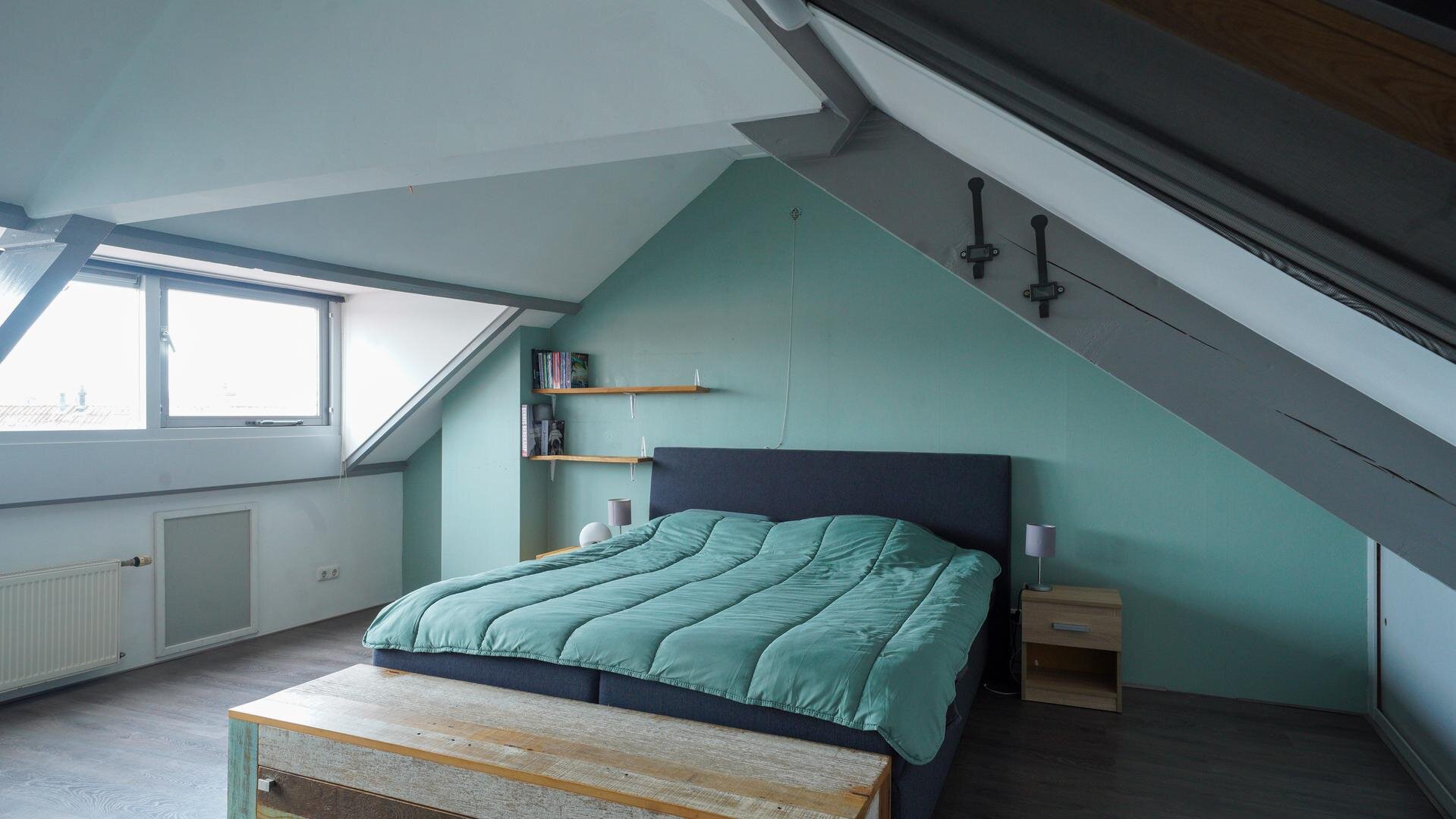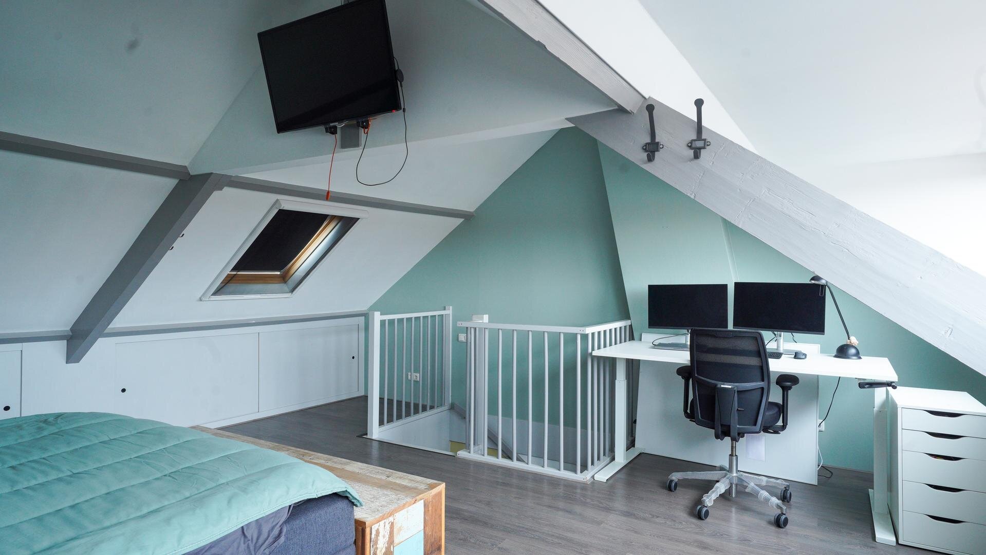 Via een vaste trap bereik je de zolderverdieping. Hier bevindt zich de derde slaapkamer en extra bergruimte achter de knieschotten.