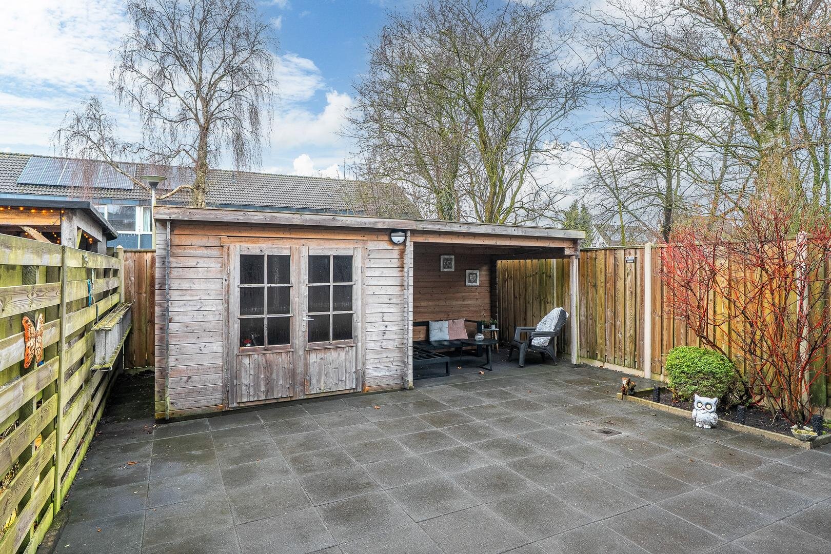 De achtertuin is circa 8,50 x 7 meter groot, recent opnieuw aangelegd en via een achterom bereikbaar. De nieuwe houten berging is ideaal voor fietsen, tuingereedschap en de grasmaaier en bovendien is er een heerlijke buitenruimte/ overkapping gecreëerd.