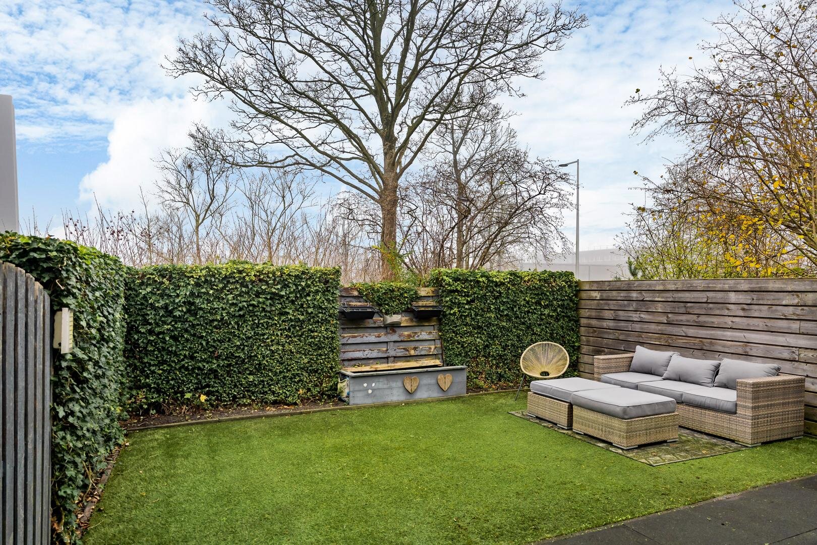 De woning beschikt over een verzorgde tuin met een eigen achterom, wat zorgt voor extra gemak. Daarnaast is er ruime parkeergelegenheid in de directe omgeving. Gebouwd in 1974, kenmerkt deze woning zich door een degelijke bouwstijl met betonnen vloeren, wat zorgt voor een solide en prettig woongevoel.