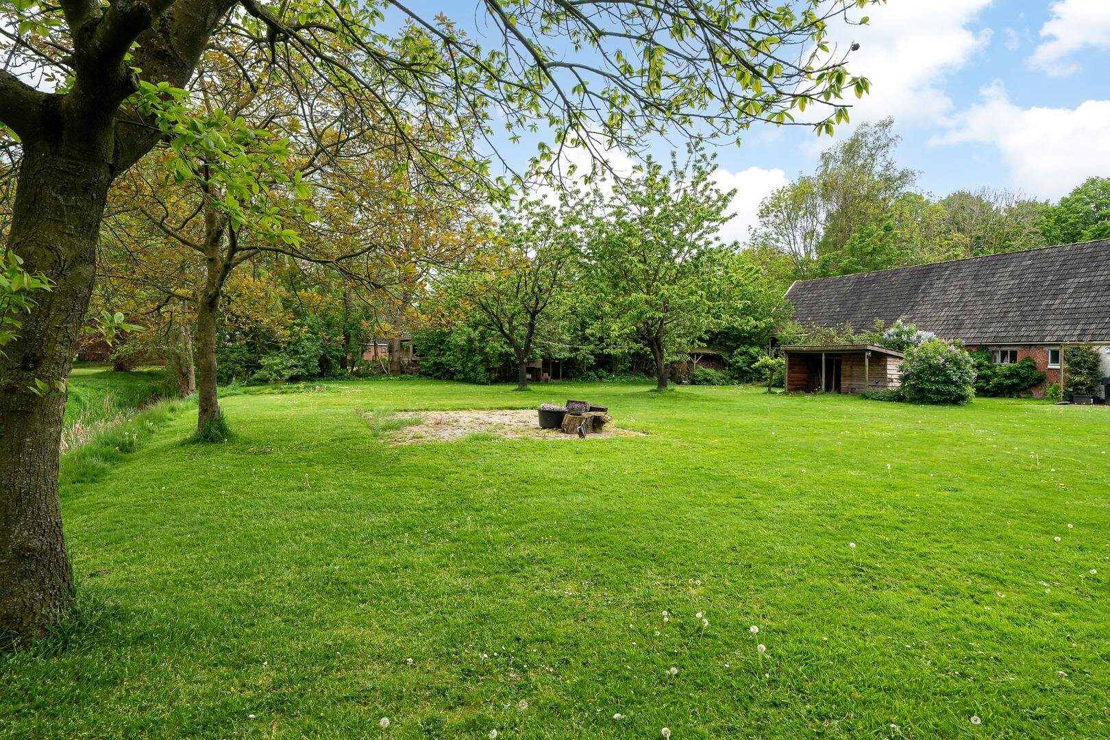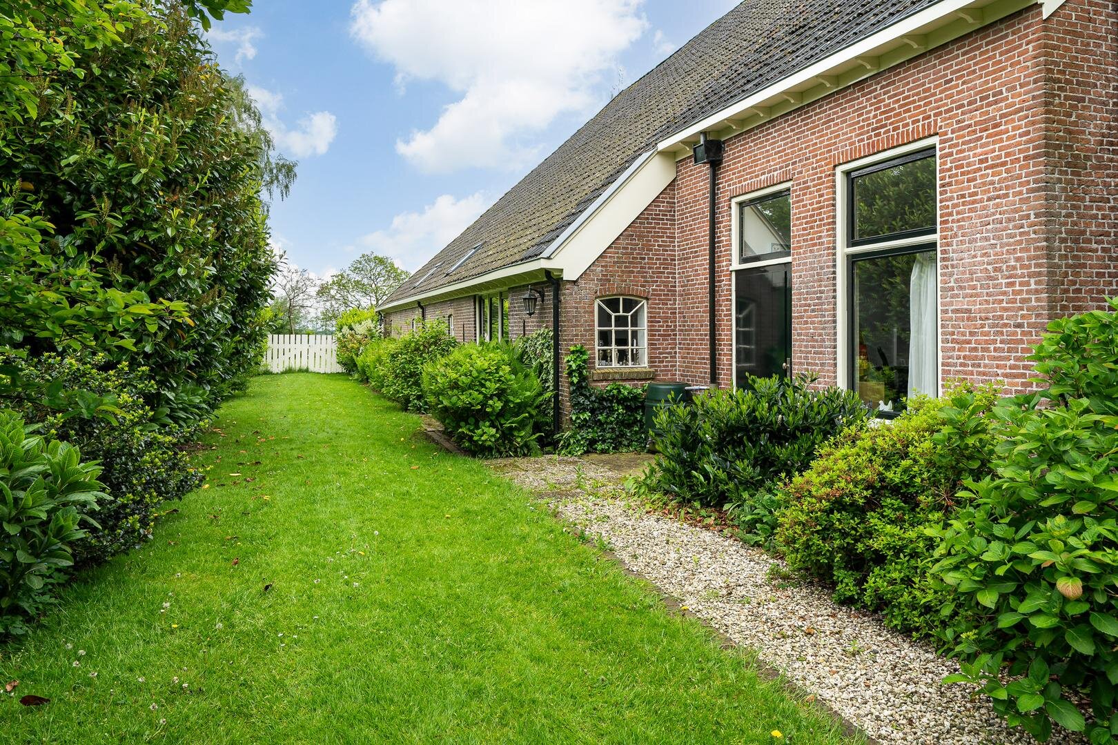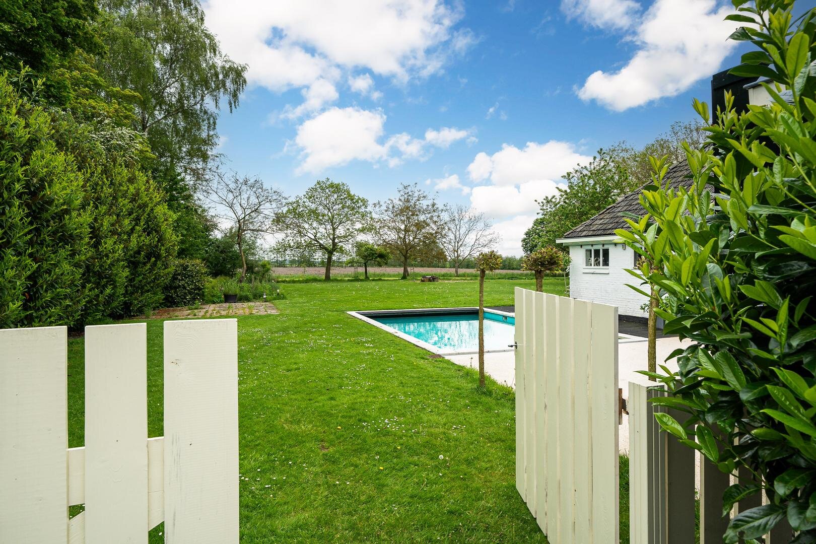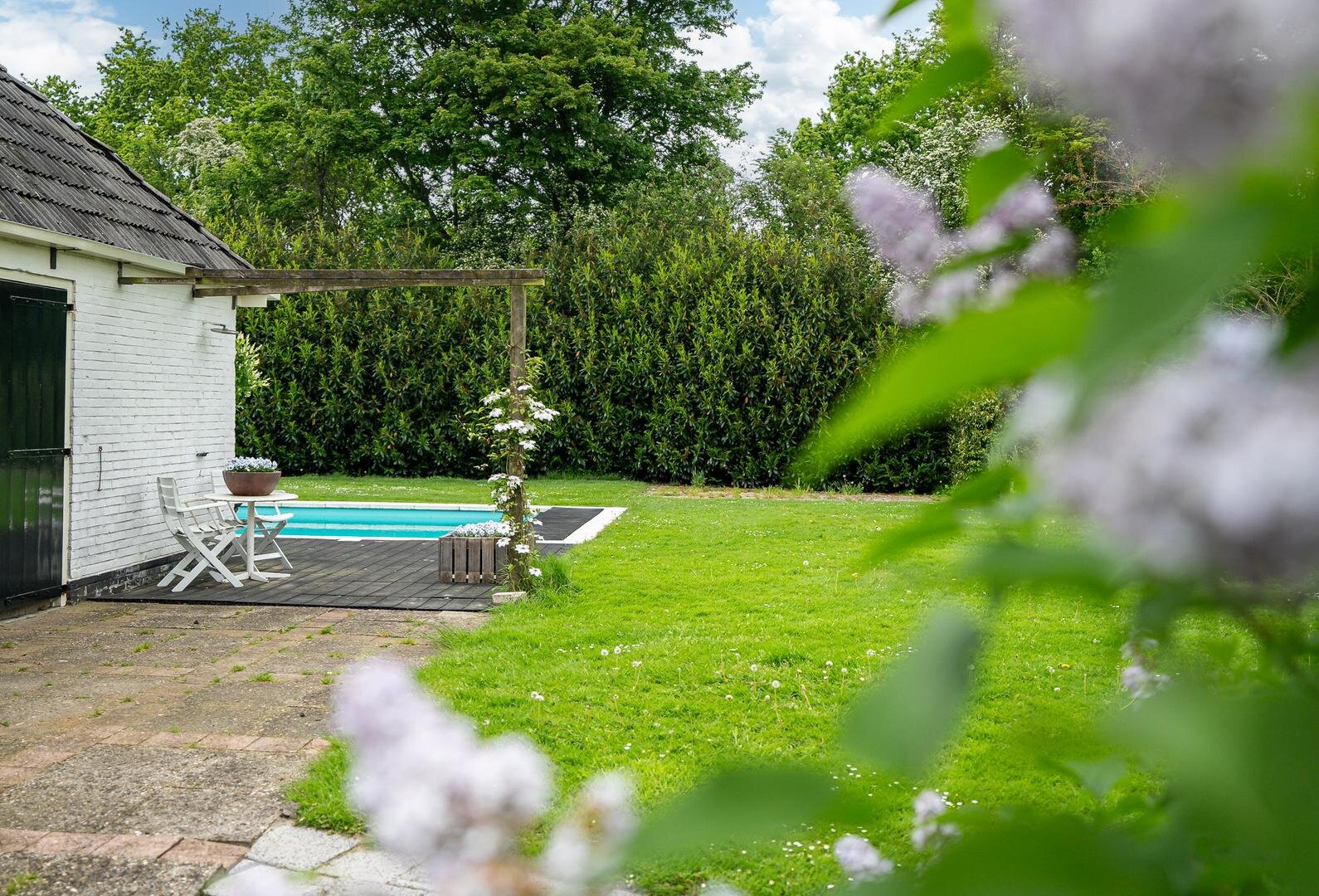 - De volledige tuin is voorzien van een automatische sproei installatie, met water uit de aanliggende sloot.