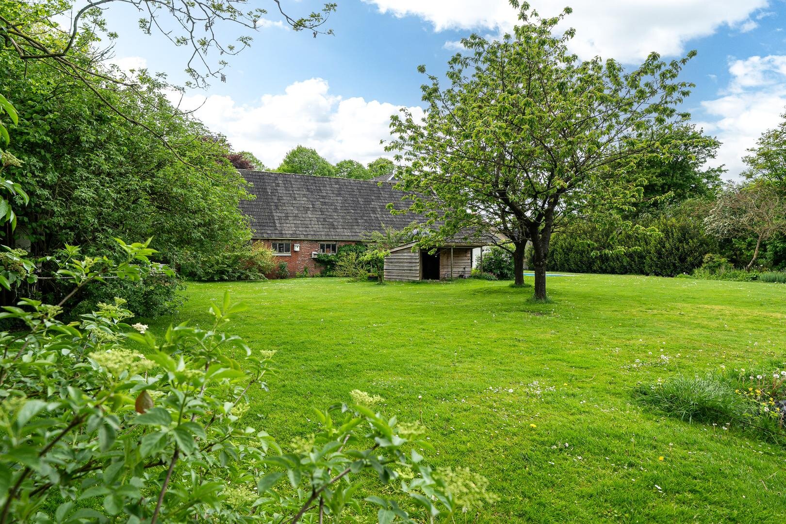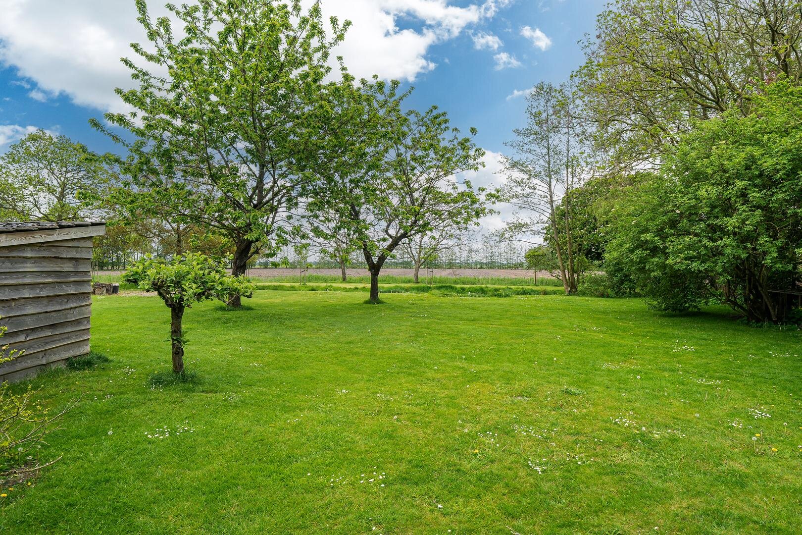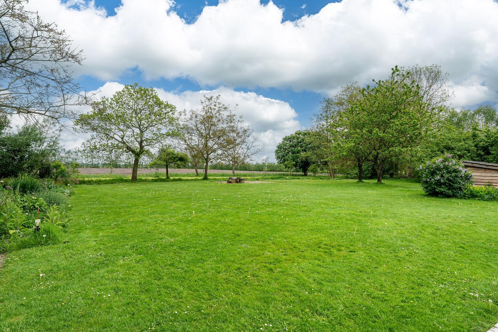 Wanneer u door de openslaande deuren van de tuinkamer loopt ervaart u een prachtig uitzicht over de landerijen. In de achtertuin heeft u altijd wel een plek om de zon op te zoeken of in de natuurlijke schaduw van de bomen te zitten.
