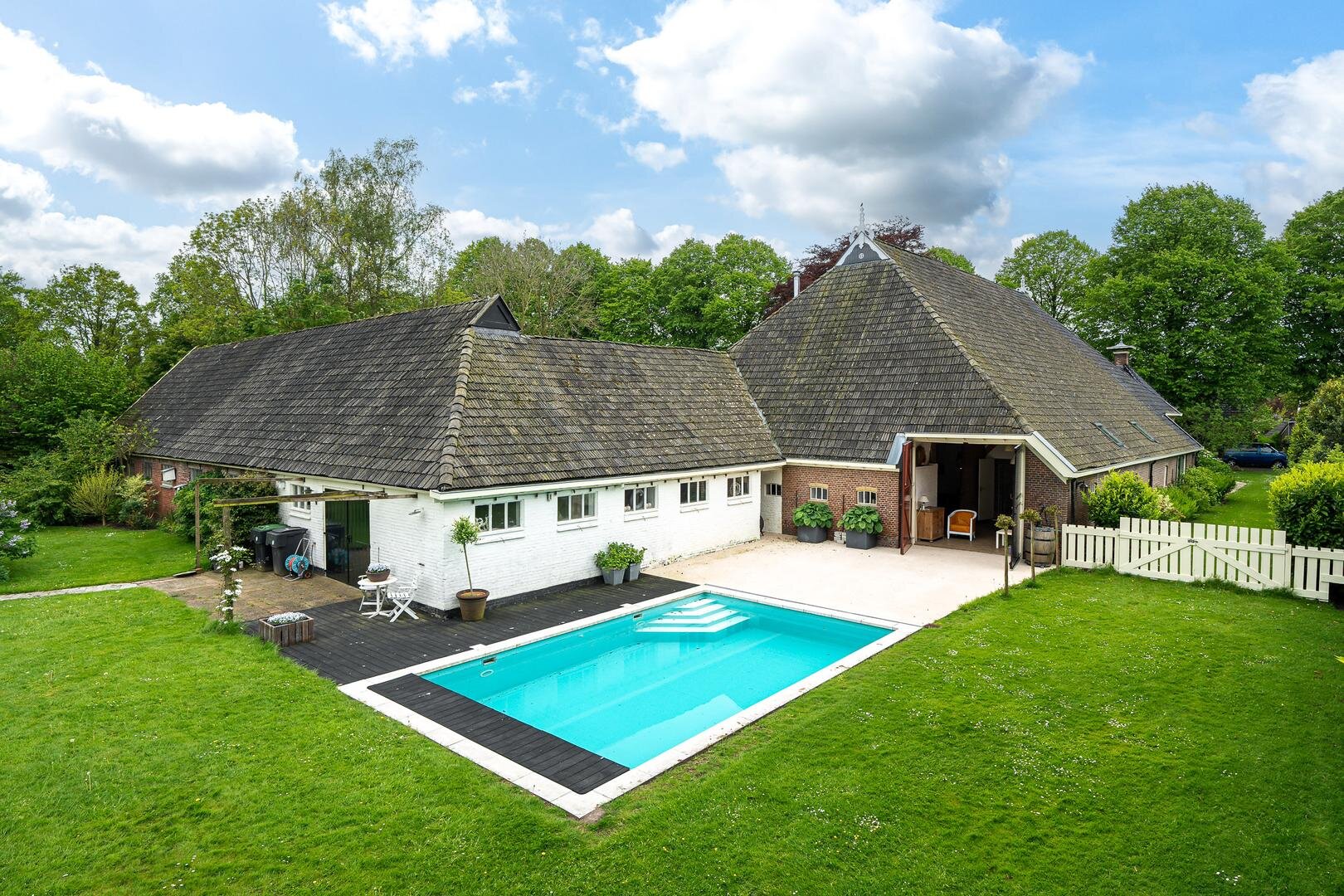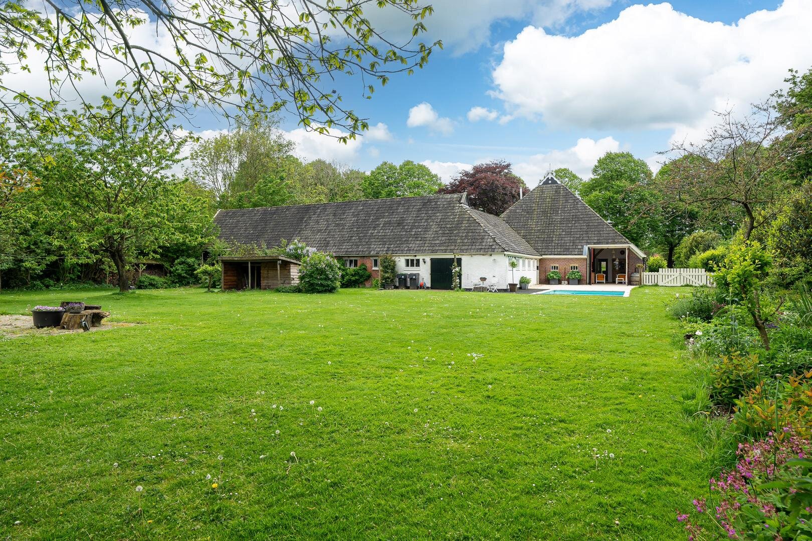 Wat een pareltje deze voormalige kop-hals-rompboerderij! Het geheel is omgebouwd tot woonboerderij en biedt vele mogelijkheden. Met 3706 m³ is aan ruimte absoluut geen gebrek! Op grond daarvan is de woning ook geschikt om er verschillende appartementen in te maken. De woning beschikt over zeven slaapkamers, twee woonkamers, twee badkamers, kantoorruimte, door een warmtepomp verwarmd zwembad én voldoende overige ruimtes die o.a. geschikt zijn als atelier, klusruimte of andere aan huis gebonden bedrijvigheid.