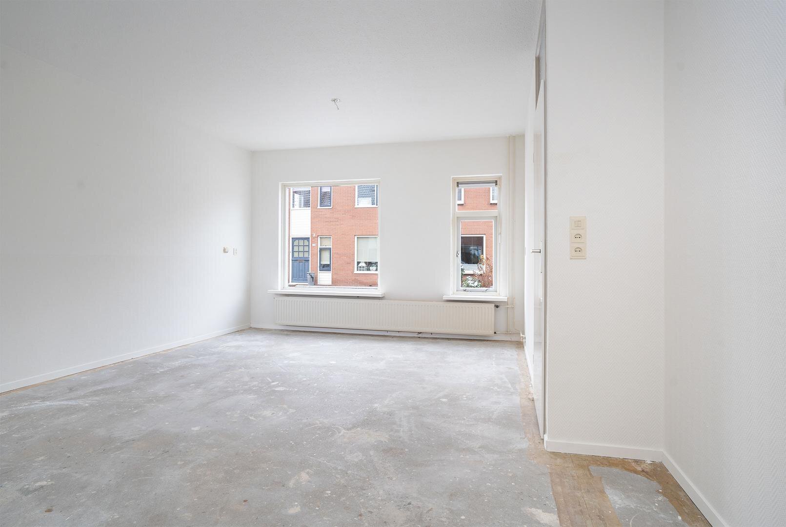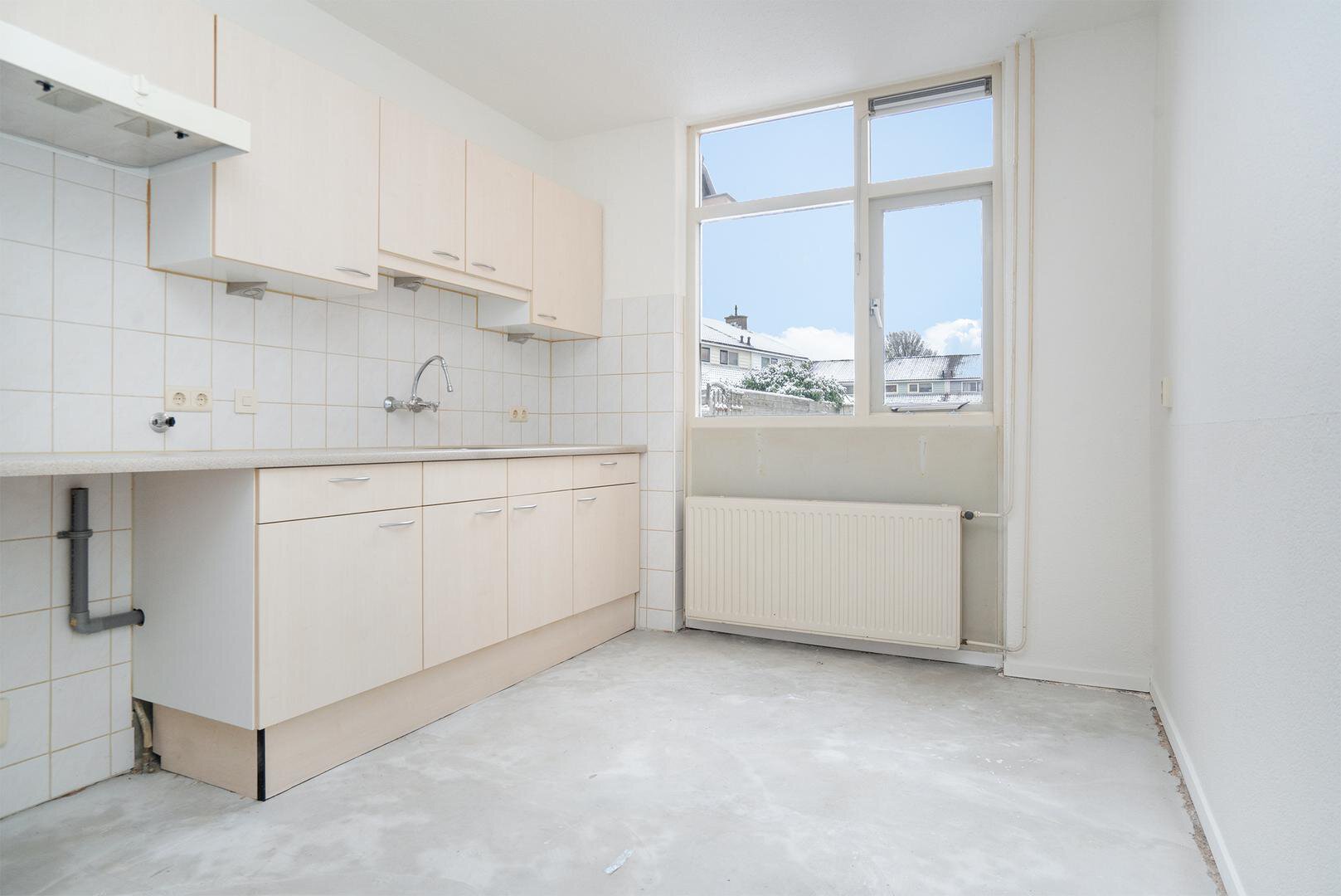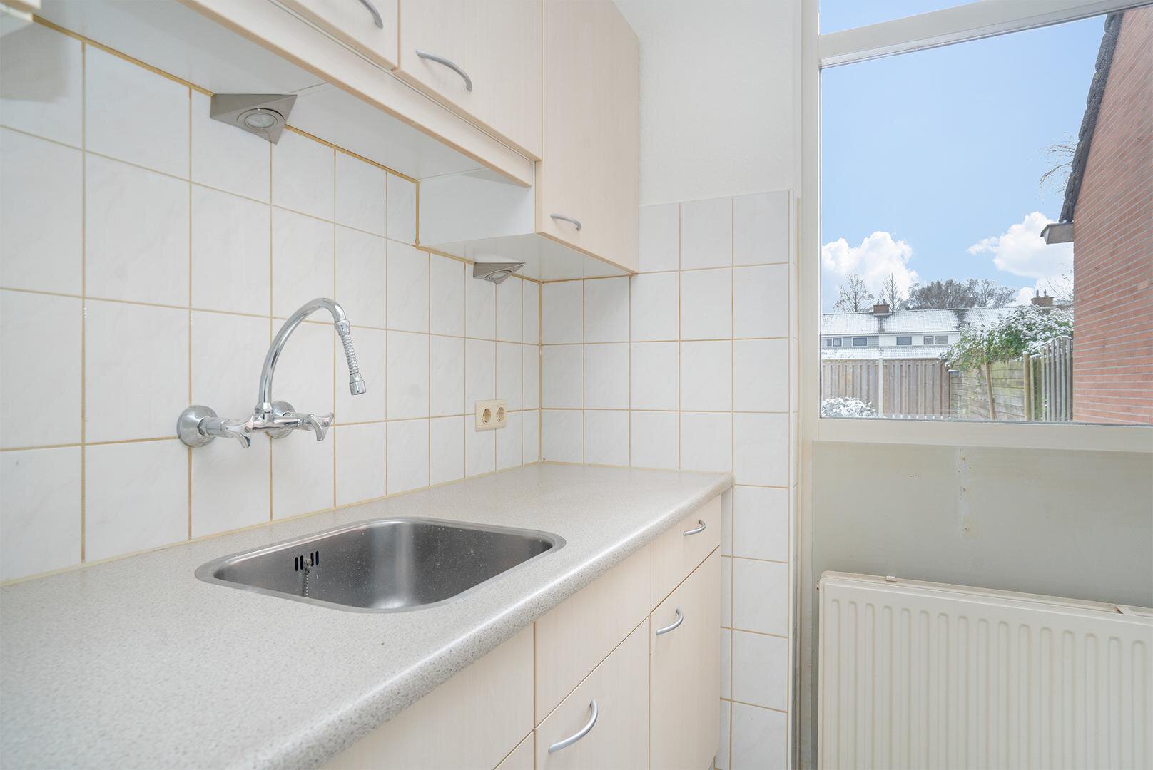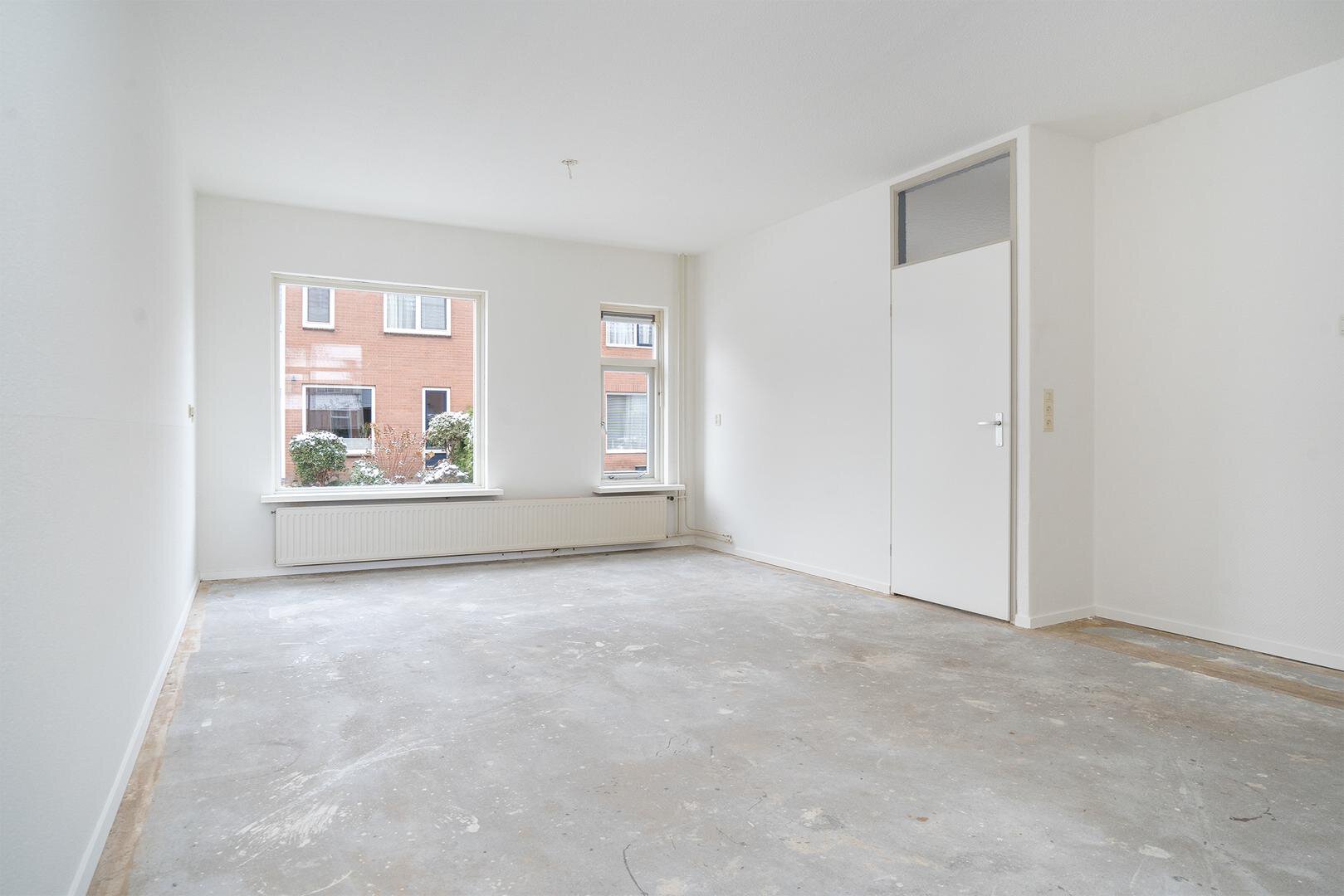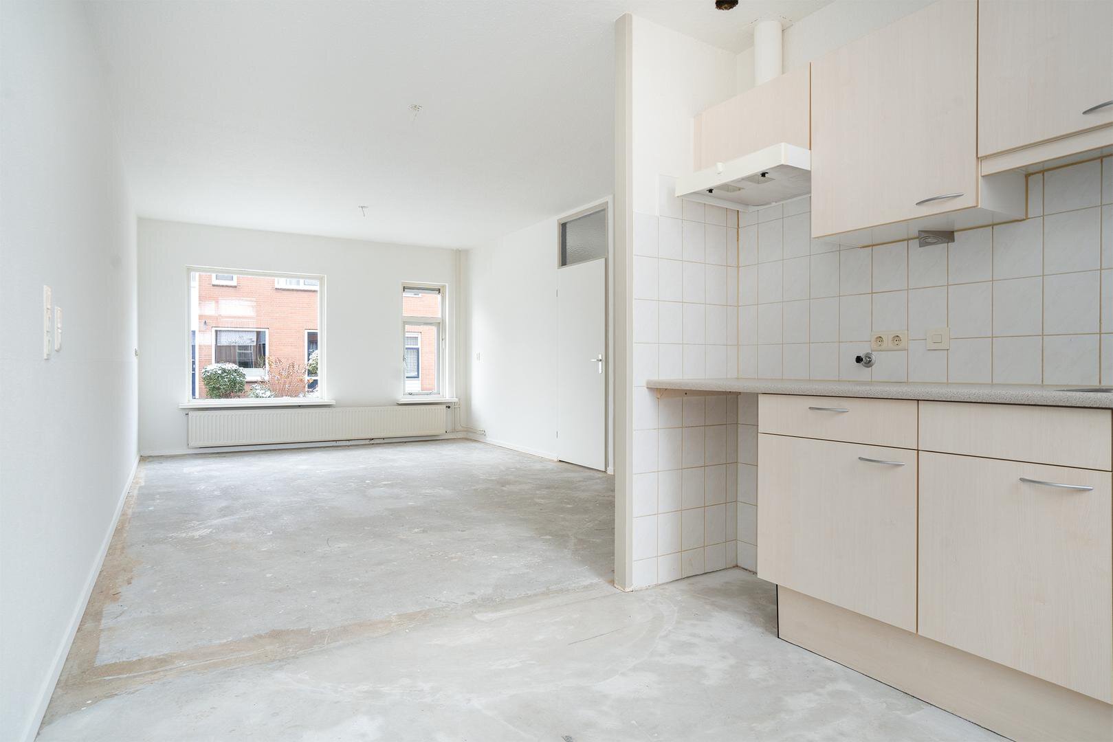 De entree aan de voorzijde geeft toegang tot de ruime hal met trapopgang en meterkast. De royale woonkamer aan de voorzijde is door de grote raampartijen een licht geheel. De open keuken aan de achterzijde beschikt over een eenvoudig keukenblok, hier zou je eventueel openslaande deuren kunnen plaatsen zodat je vanuit de keuken de tuin in kan lopen. Er is in het midden van de woning nog een hal waar zich de toiletruimte en doorgang naar de bijkeuken/berging bevindt. In de bijkeuken zit nog een vlizotrap naar de bergzolder.