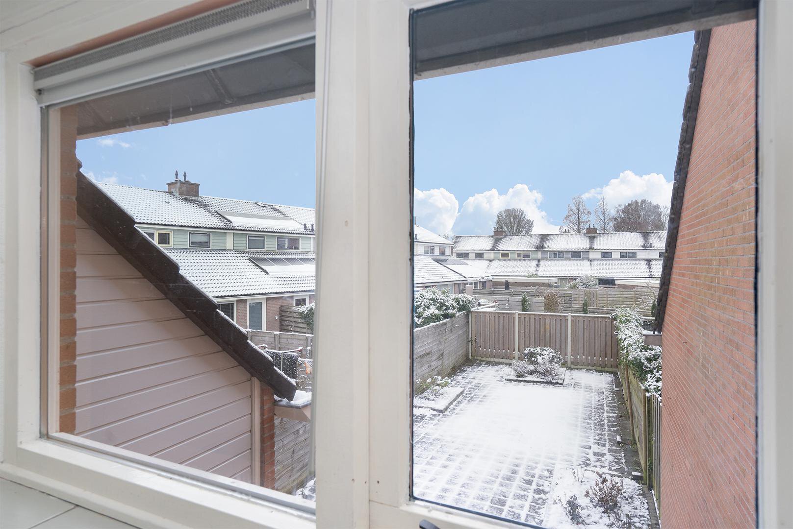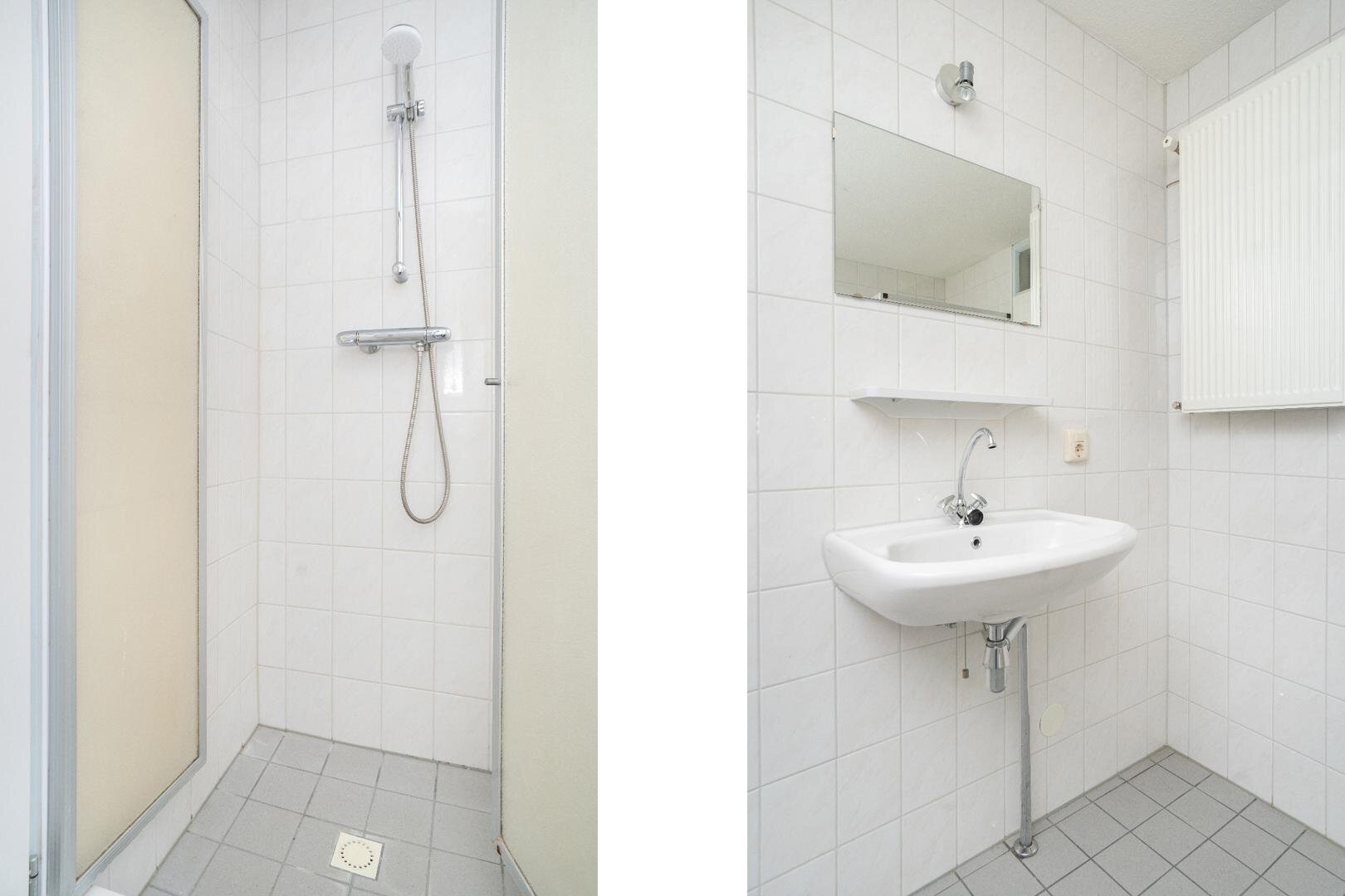 De overloop leidt naar drie slaapkamers. Doordat de gootlijn op de tweede verdieping begint hebben alle drie de slaapkamer een mooi formaat. De badkamer is voorzien van een douche, toilet en wastafel.