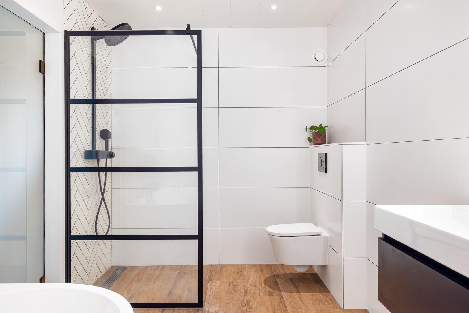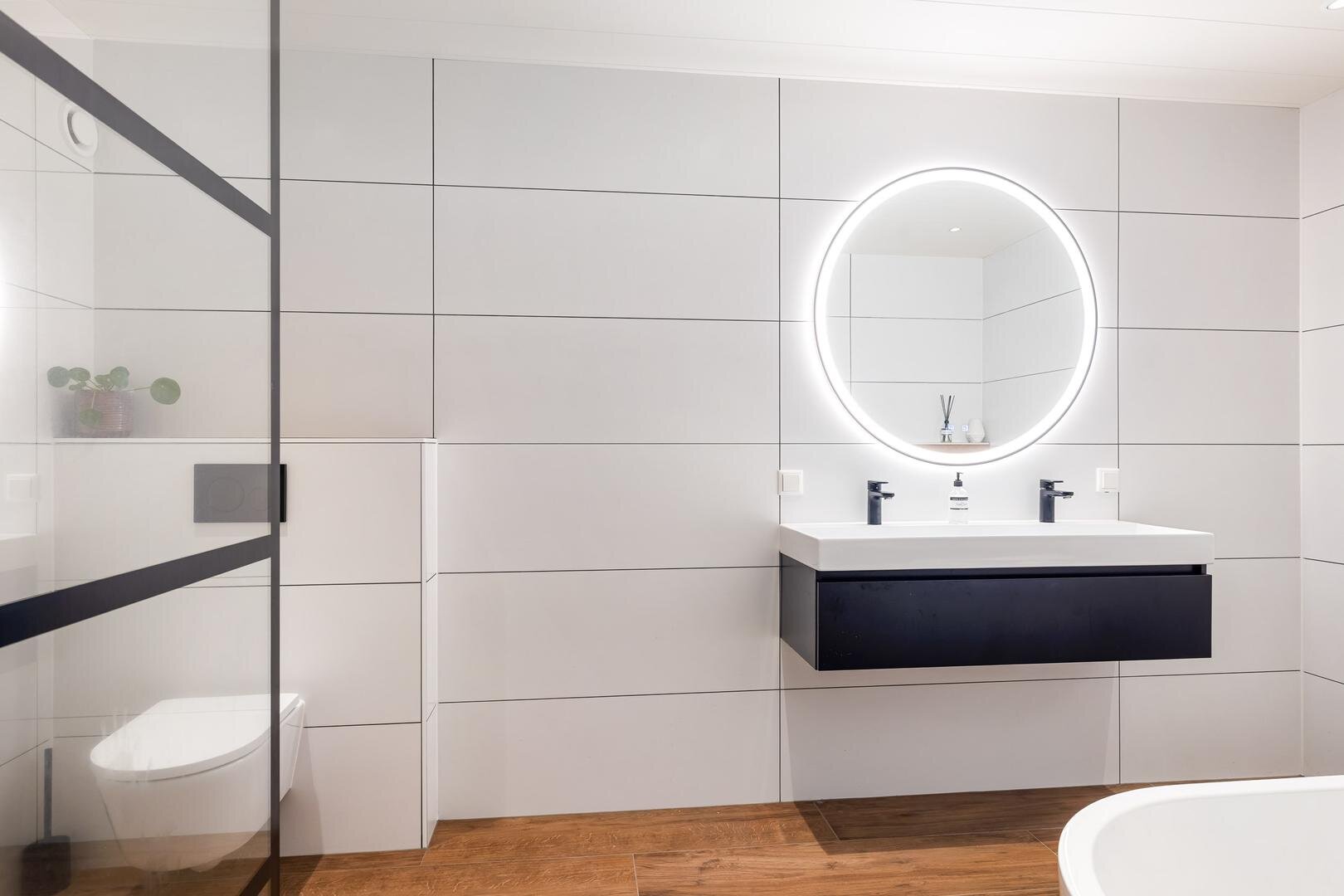 In de hal is elektrische vloerverwarming aanwezig en het toilet is uitgevoerd met een hangend closet. De meterkast is uitgebreid naar 3 fasen en voorbereid op onder andere de sauna.
