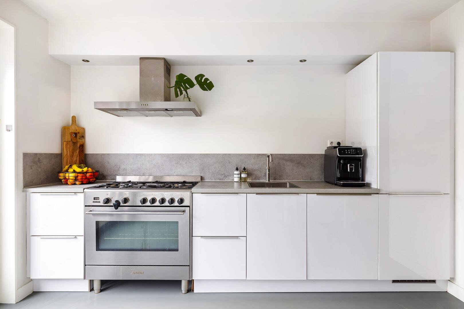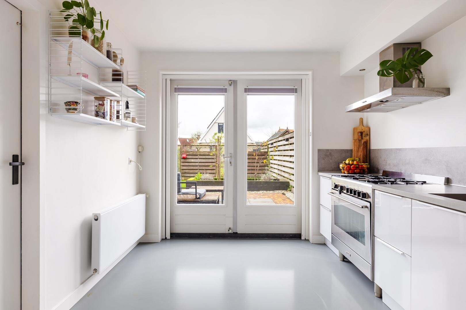 In 2016 is tevens de keuken geplaatst, voorzien van diverse apparatuur zoals een grote Smeg-koelkast, een gasfornuis, een nieuwe vaatwasser (2024) en een Quooker (2024). Vanuit de keuken openen dubbele tuindeuren naar de tuin; de elektrische zonwering (3 meter diep) zorgt hier voor extra comfort. In de gehele woning zijn horren aanwezig.