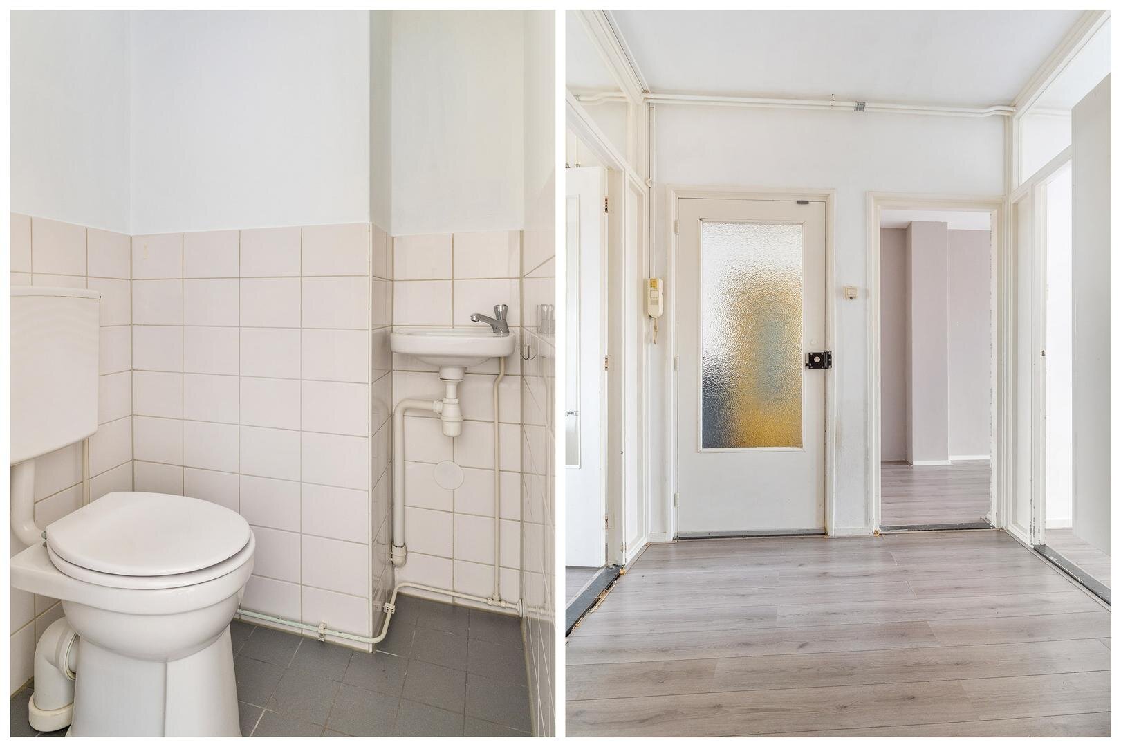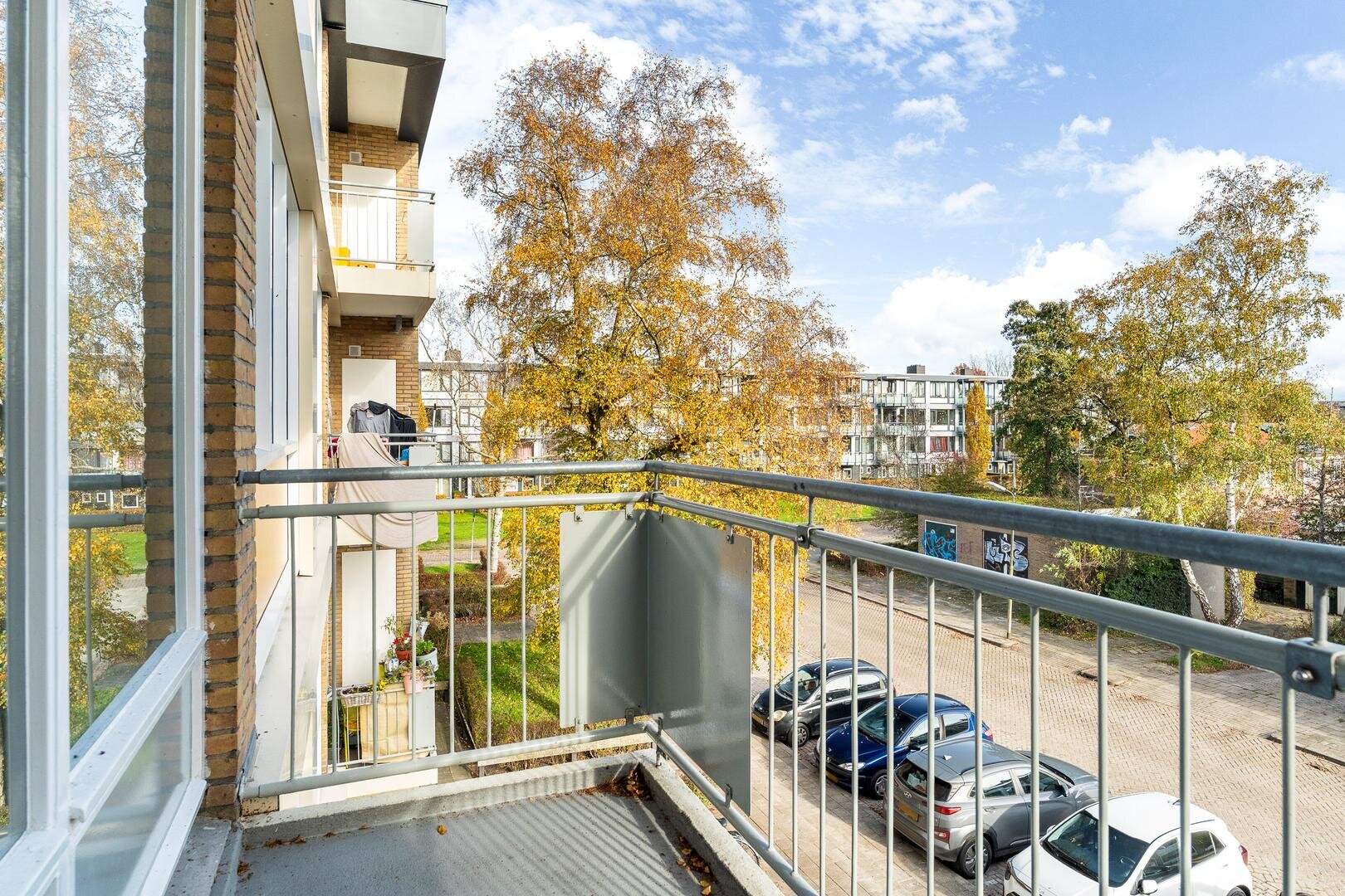 Afgesloten portiek met trappenhal en intercomsysteem. Entree, hal met vaste kast en meterkast. Toilet met fontein. Ruime woonkamer met vrij uitzicht en vaste kast. Drie slaapkamers. Badkamer met douche en wastafel. Dichte keuken met eenvoudig maar keurig keukenblok. Twee balkons, waarvan één royaal, gelegen op het westen en een kleiner balkon op het oosten.
