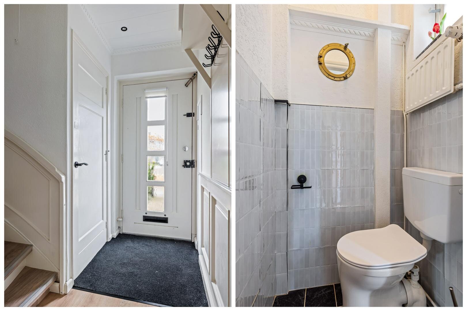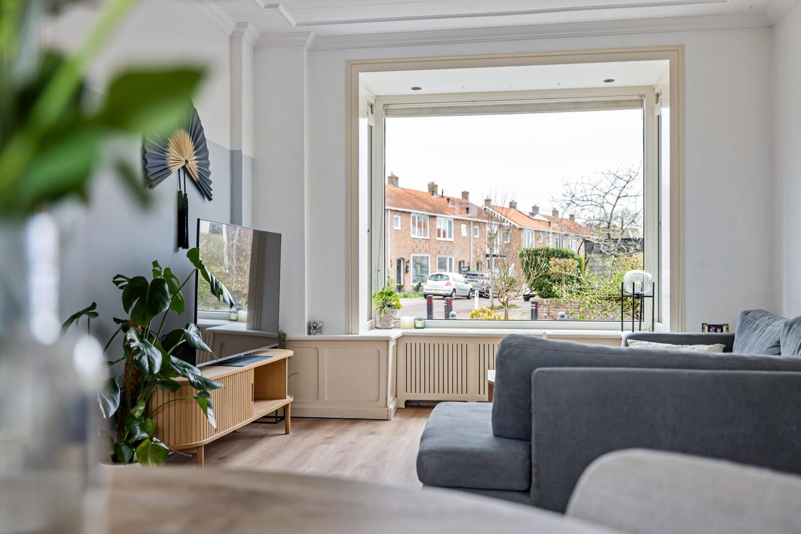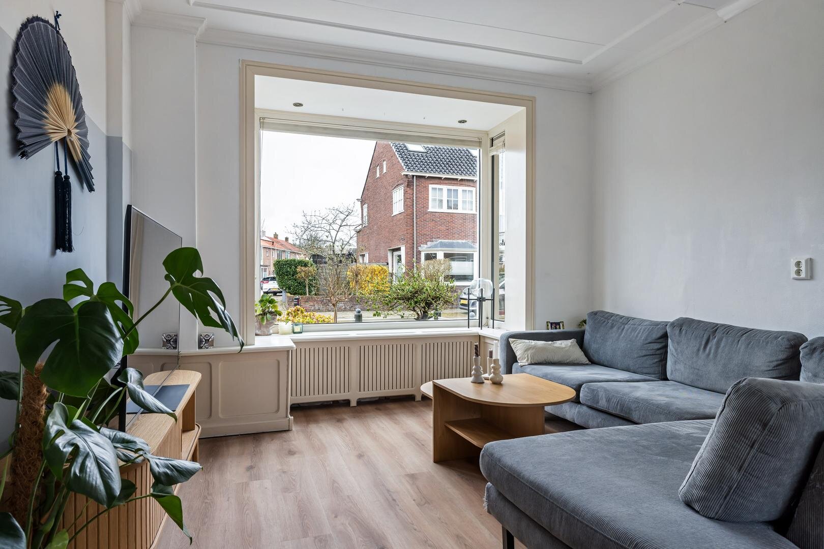 Via de entree kom je in de hal met meterkast, trapopgang en toegang tot het toilet. Vanuit hier betreed je de lichte woonkamer aan de voorzijde van de woning. Dankzij de hoekligging en de grote raampartijen geniet je hier van een prettige hoeveelheid daglicht en een open gevoel.