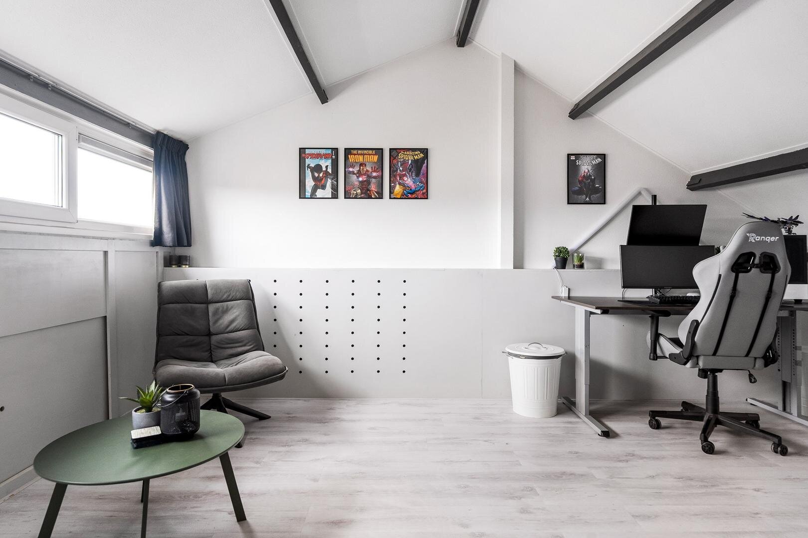Op de tweede verdieping kom je via de vaste trap op de overloop met de cv-ketel netjes weggewerkt. Hier bevindt zich ook een royale vierde slaapkamer, ideaal voor gasten, kantoor of als creatieve hobbyruimte.