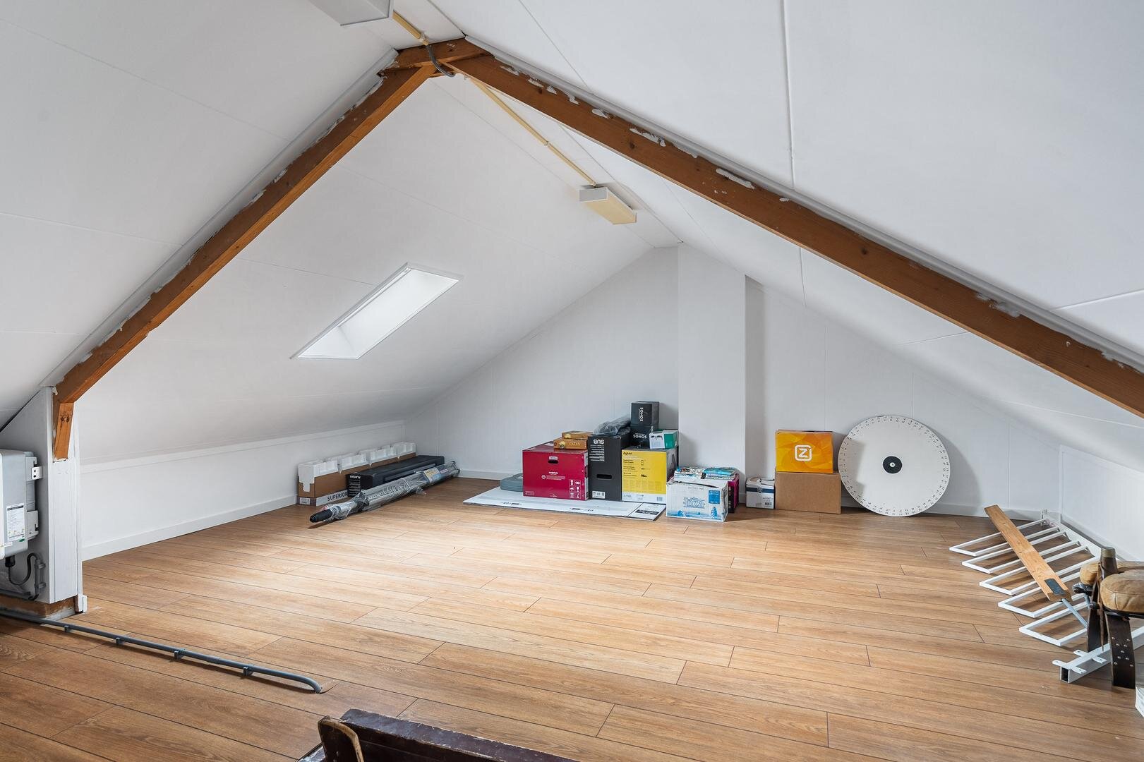 Via de vlizotrap bereik je de zolder: volledig geïsoleerd en voorzien van een nette vloer en nieuw dakraam, ideaal voor extra opslag of hobbyruimte. Met het plaatsen van een vaste trap kan je hier gemakkelijk een 4e slaapkamer realiseren. De cv-ketel is een Intergas uit 2008.