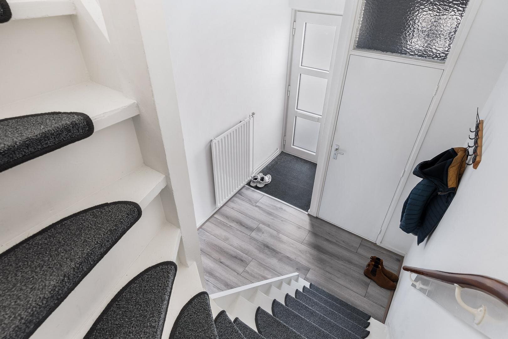 Bij binnenkomst valt meteen de nette hal op, met vernieuwde meterkast, trapkast en modern hangend toilet én waterontharder. De woonkamer is heerlijk licht dankzij de kunststof schuifpui (2018) richting de zonnige tuin op het zuiden perfect voor wie graag veel daglicht en een fijne buitenruimte wil.