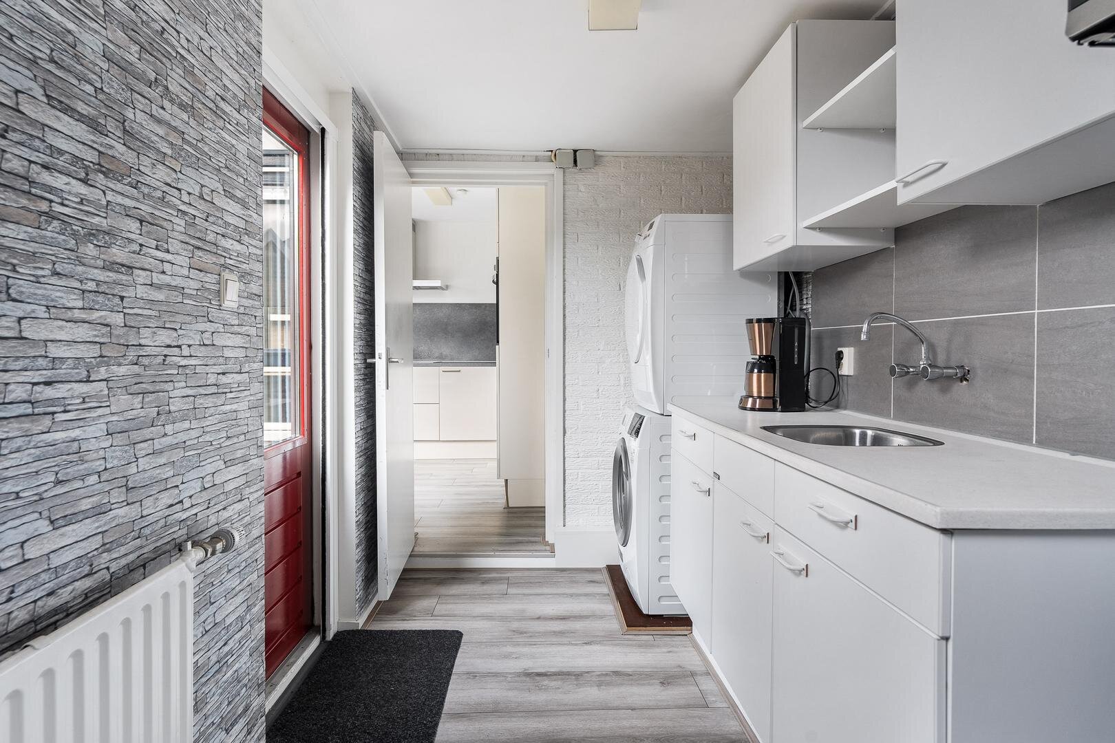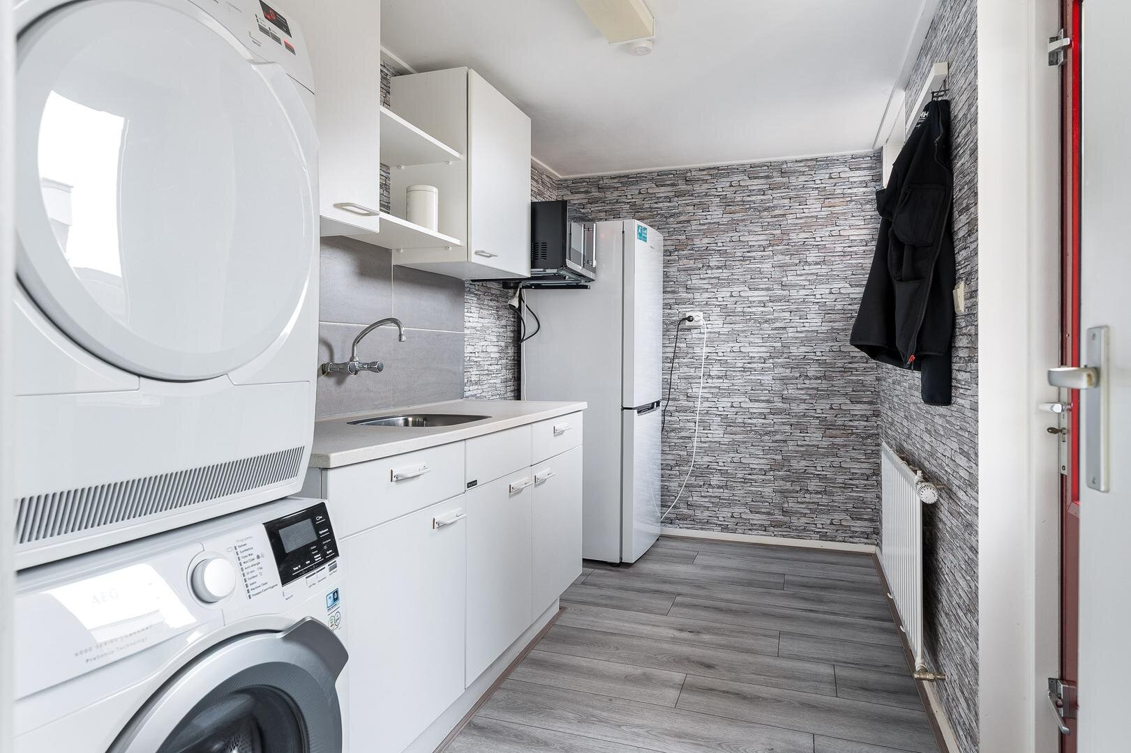 De keuken is in 2018 volledig vernieuwd en voorzien van alle gemakken: inductiekookplaat, koelkast, vaatwasser en oven. Aansluitend vind je de geïsoleerde bijkeuken (muren en dak), met een nieuw plat dak en aansluitingen voor witgoed. Ook is hier voldoende plek voor het opbergen van spullen en een extra wasbak. Vanuit hier loop je zo de tuin op het zuiden in. Deze is onderhoudsarm en er is een achterom aanwezig. Extra praktisch: het vrijstaande schuurtje met elektra voor het opbergen van tuingereedschap en fietsen.