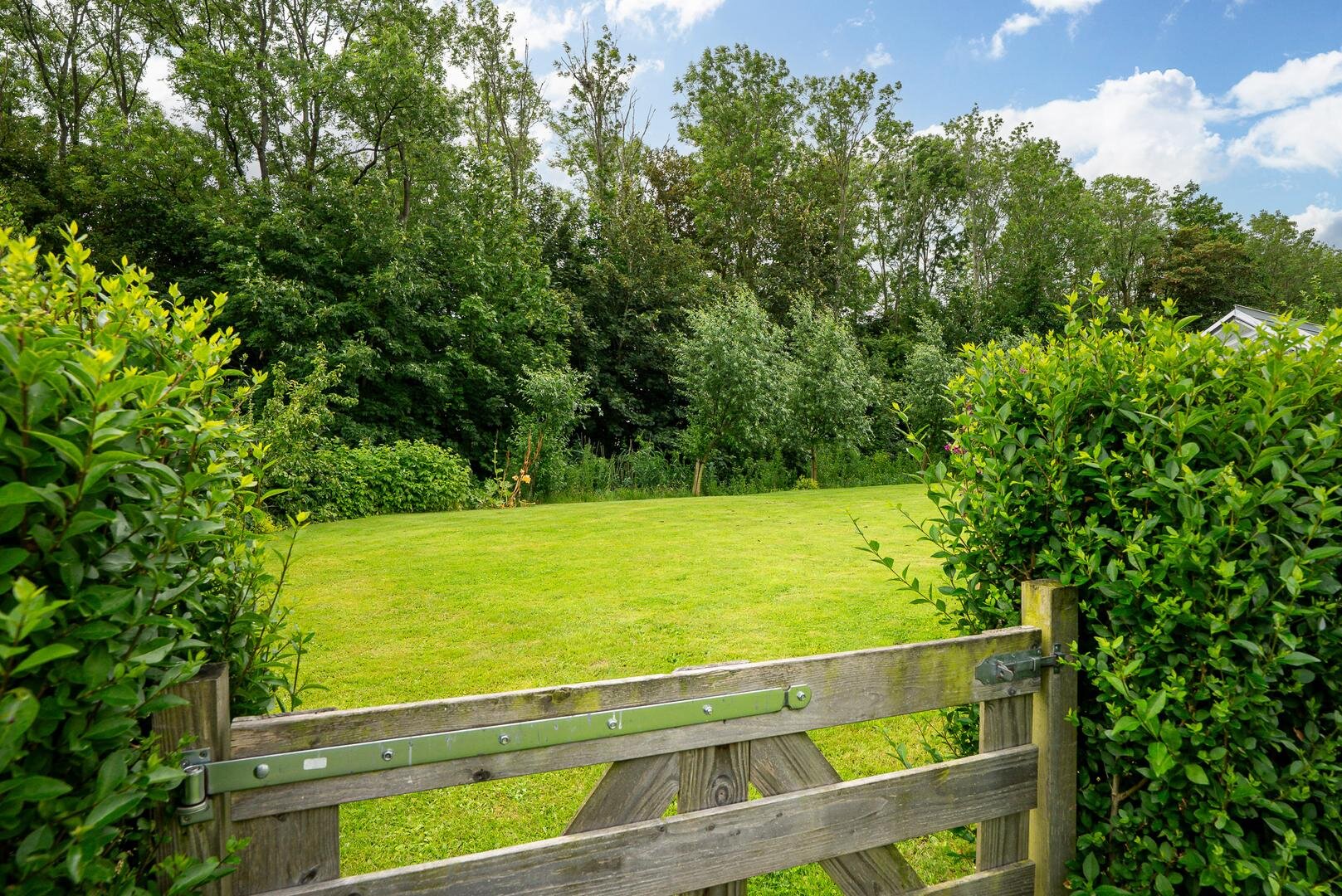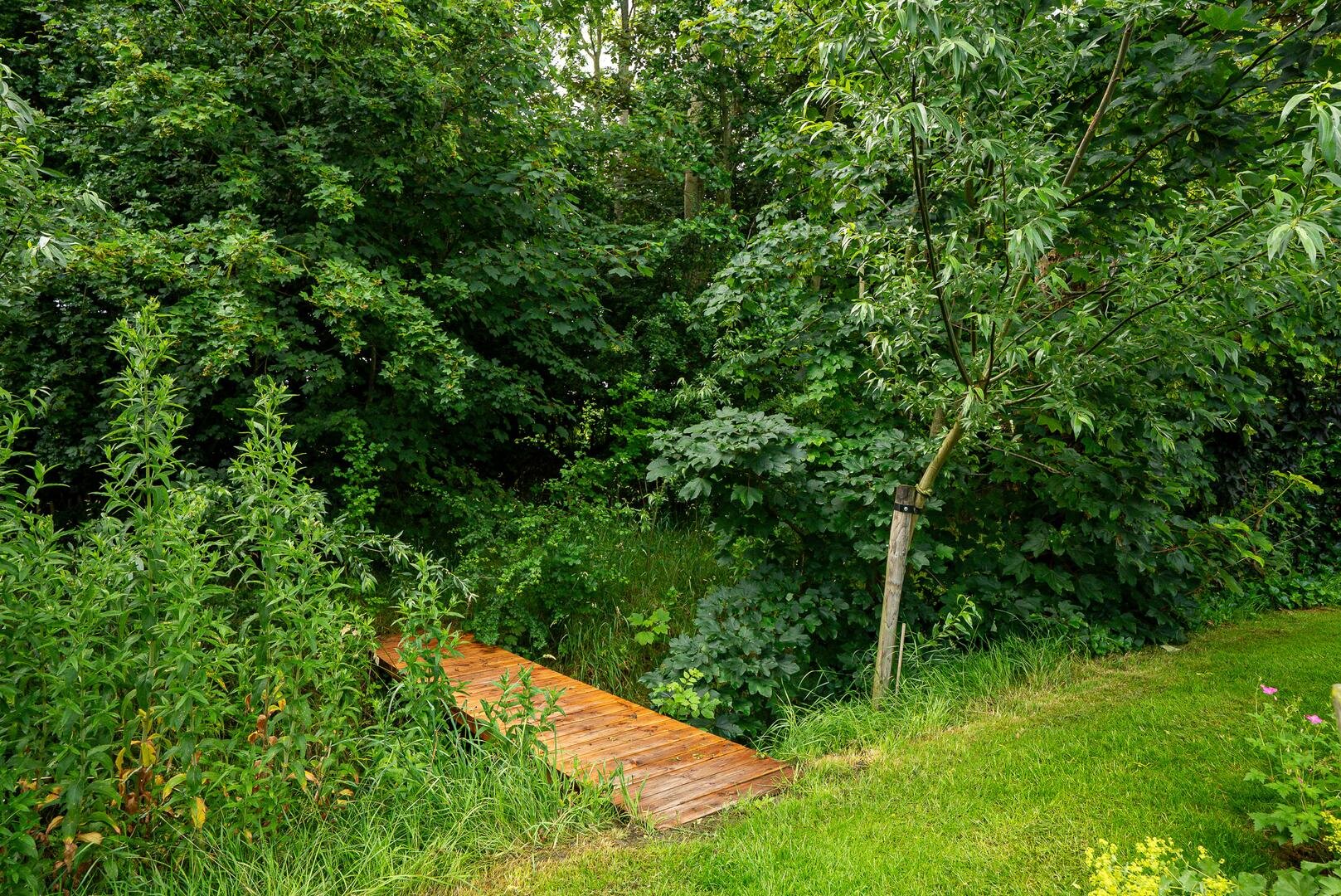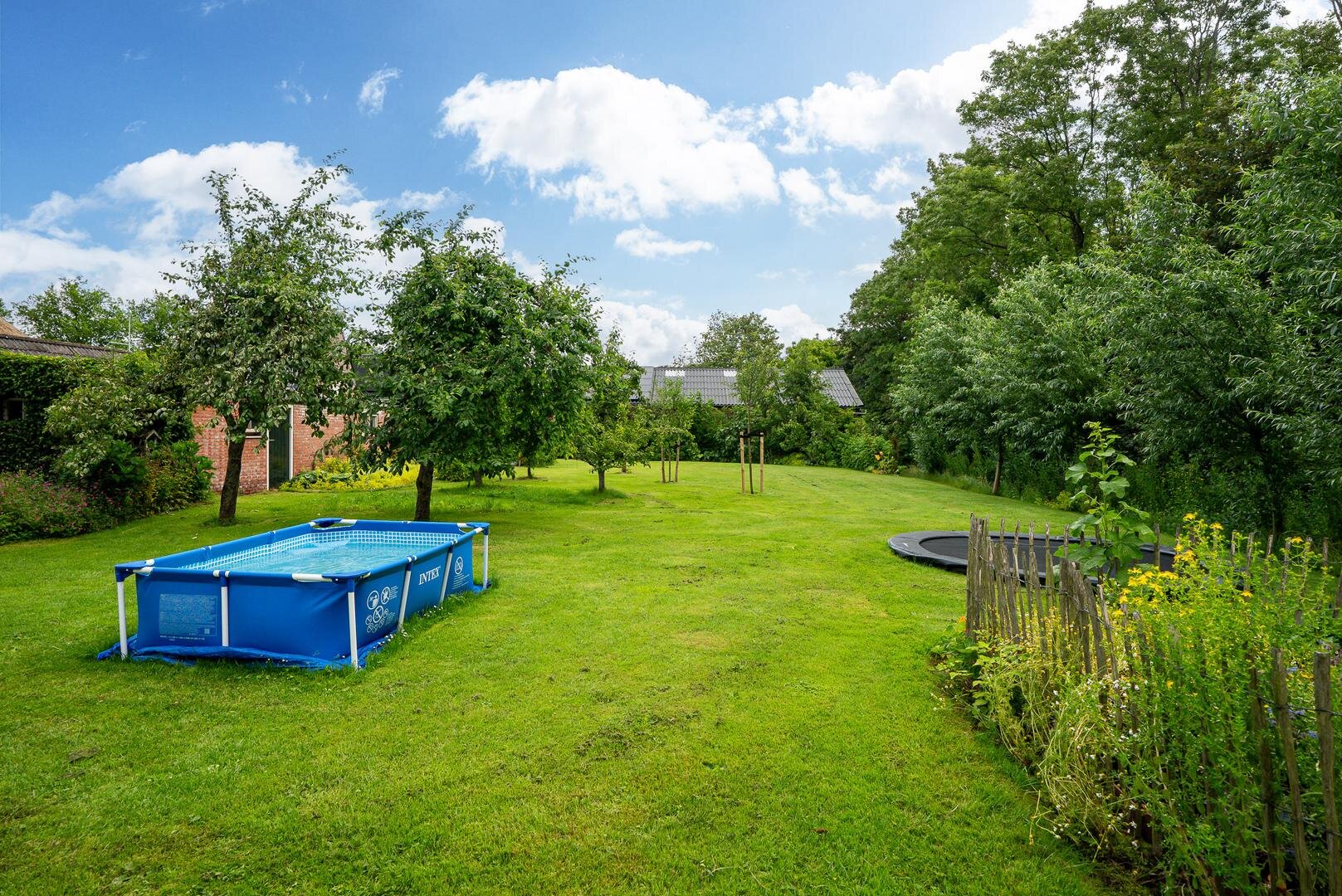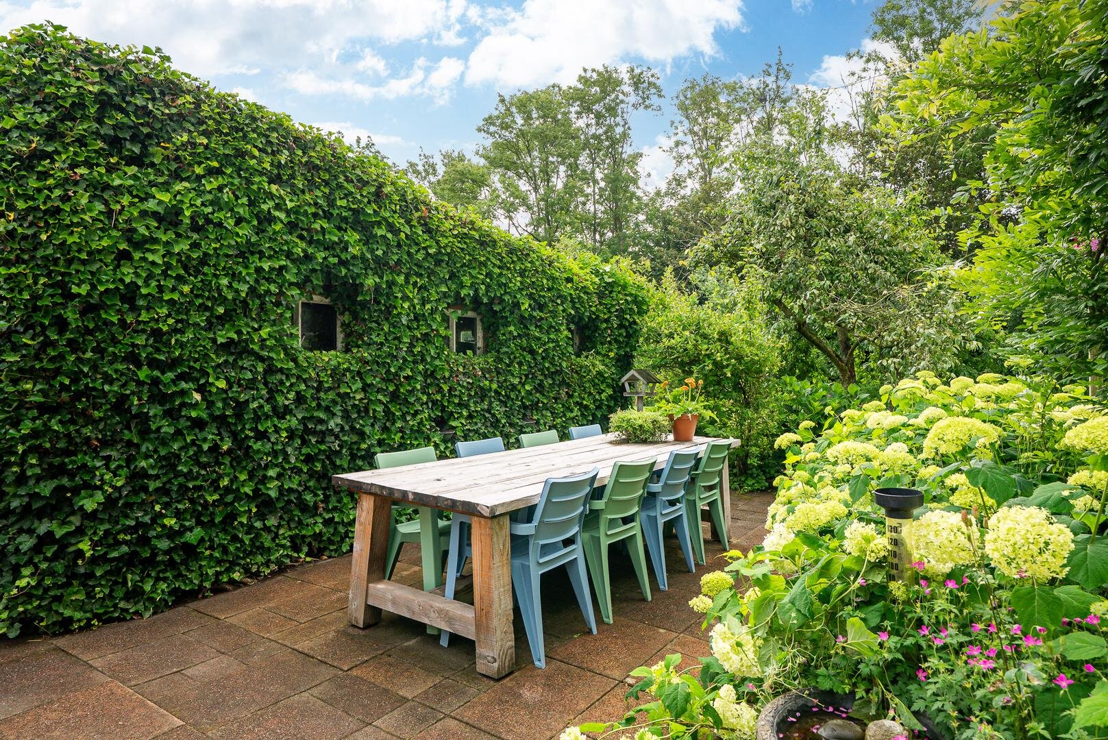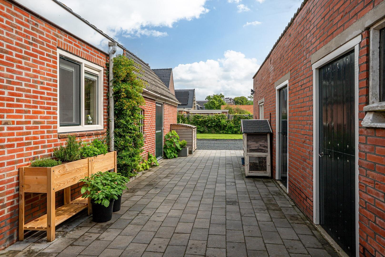 Het erf rondom de woning biedt volop ruimte om van het buitenleven te genieten. De tuin bestaat uit een ruim gazon met een kas, een moestuin en diverse fruitbomen. Ideaal voor wie graag verse producten uit eigen tuin oogst!