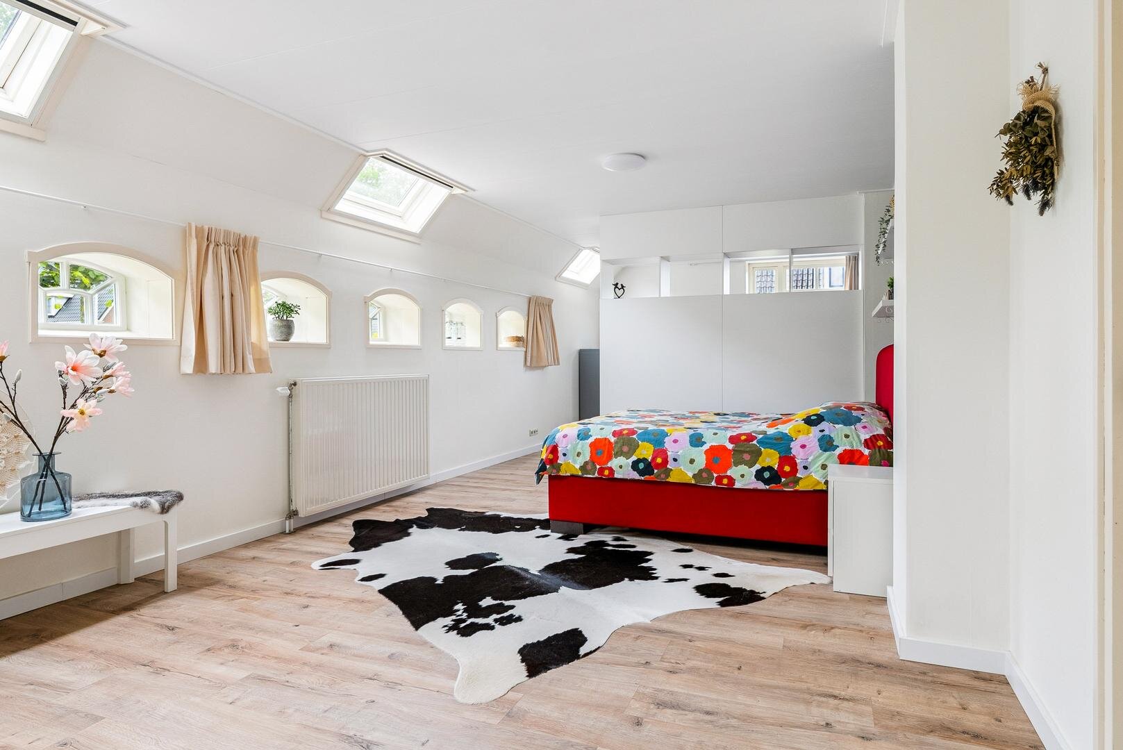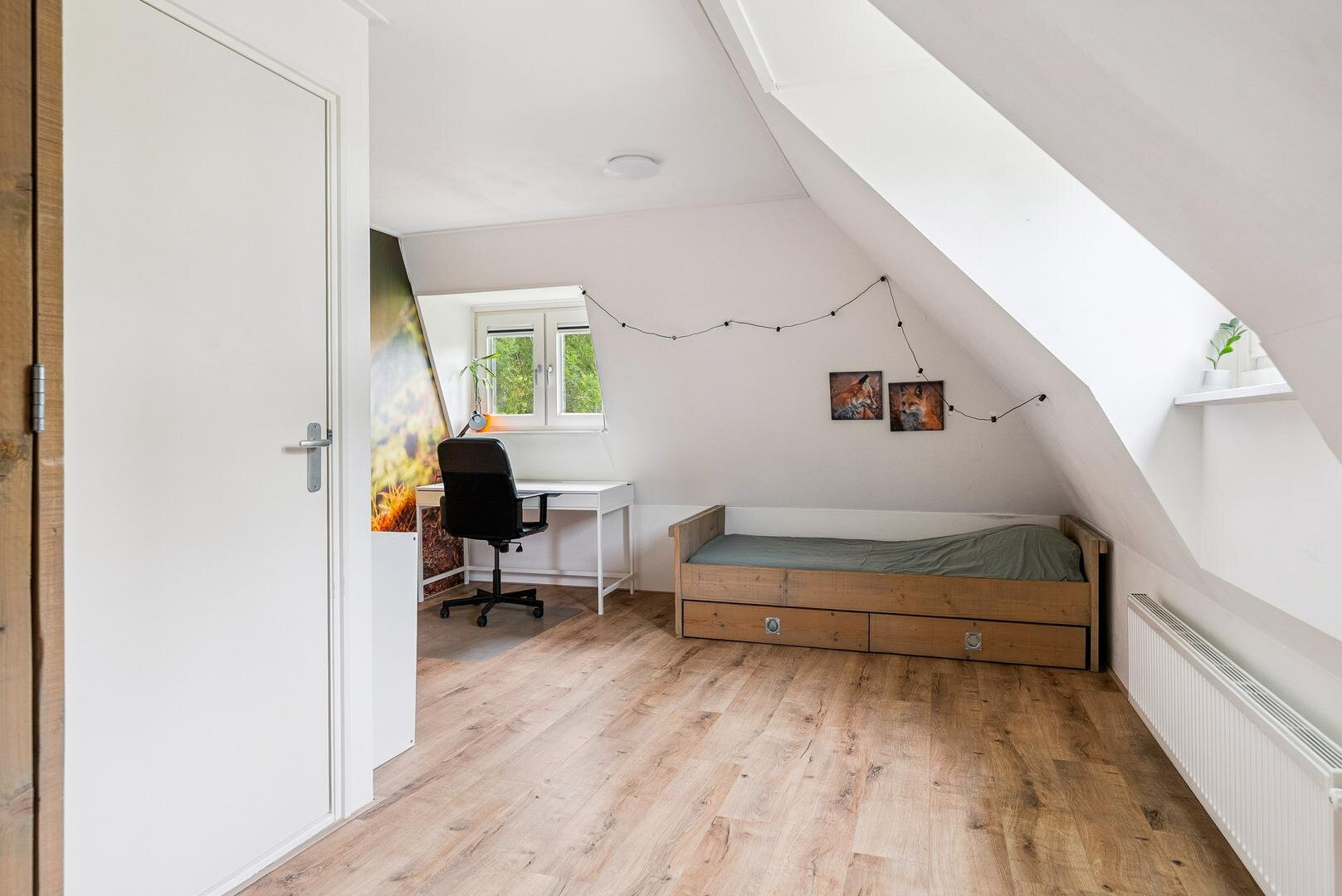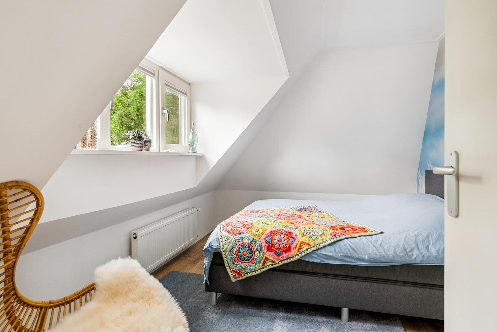De overloop geeft toegang tot twee ruime slaapkamers, beide voorzien van verwarming en nieuwe dakkapellen waardoor veel licht binnenvalt. Via een vlizotrap is de praktische bergzolder bereikbaar, ideaal voor koffers, kerstspullen of kampeerspullen.