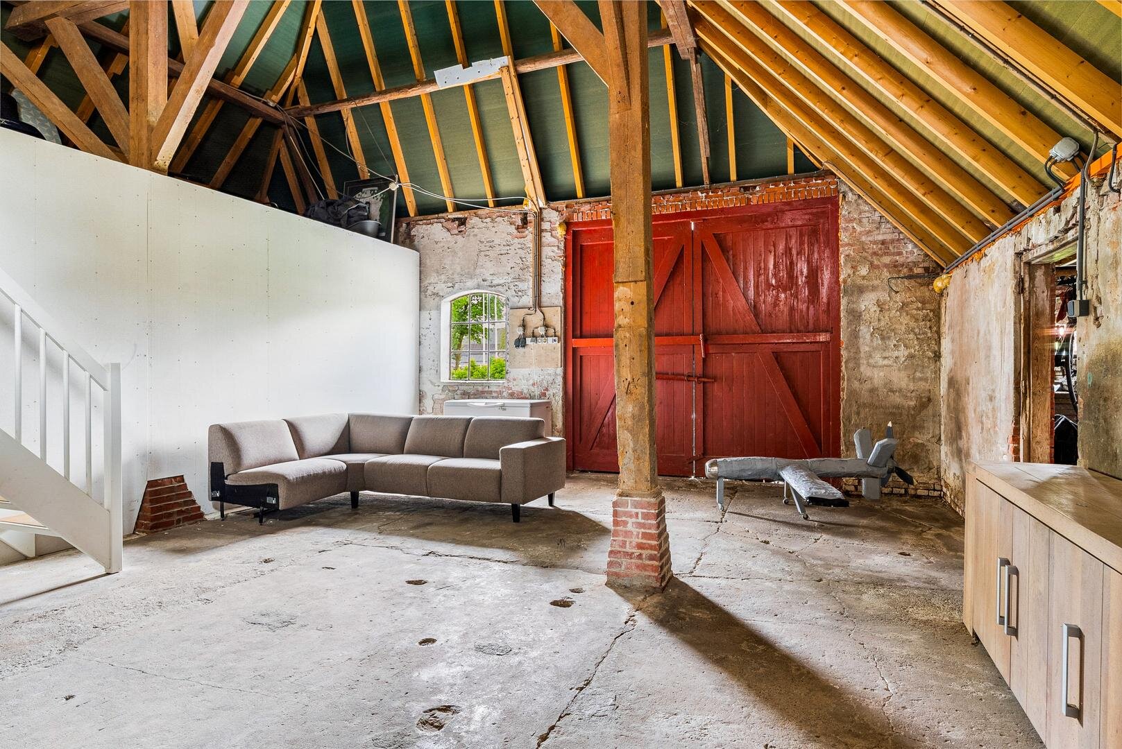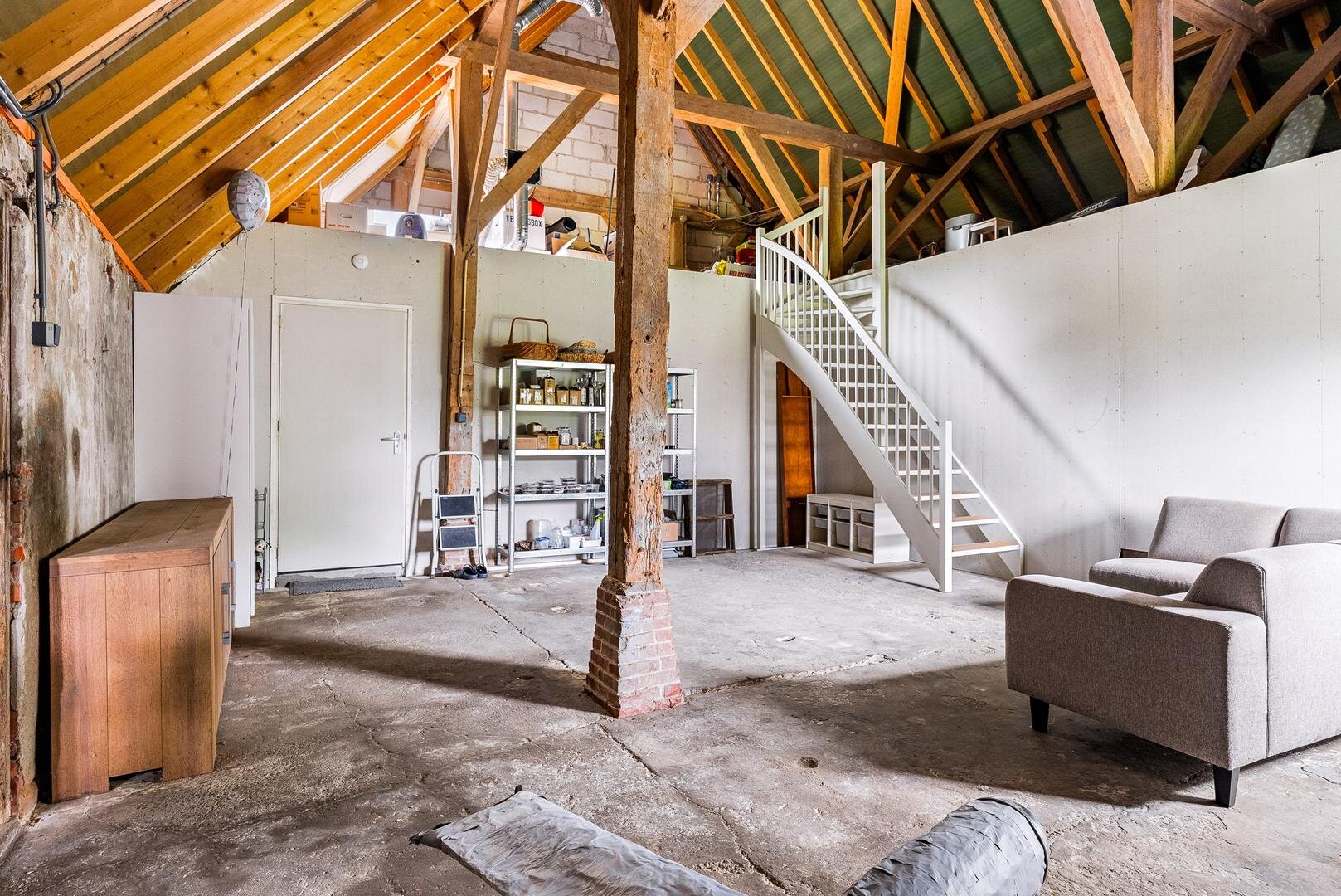 - Schuur met vaste trap naar zolder en extra kleinveestal