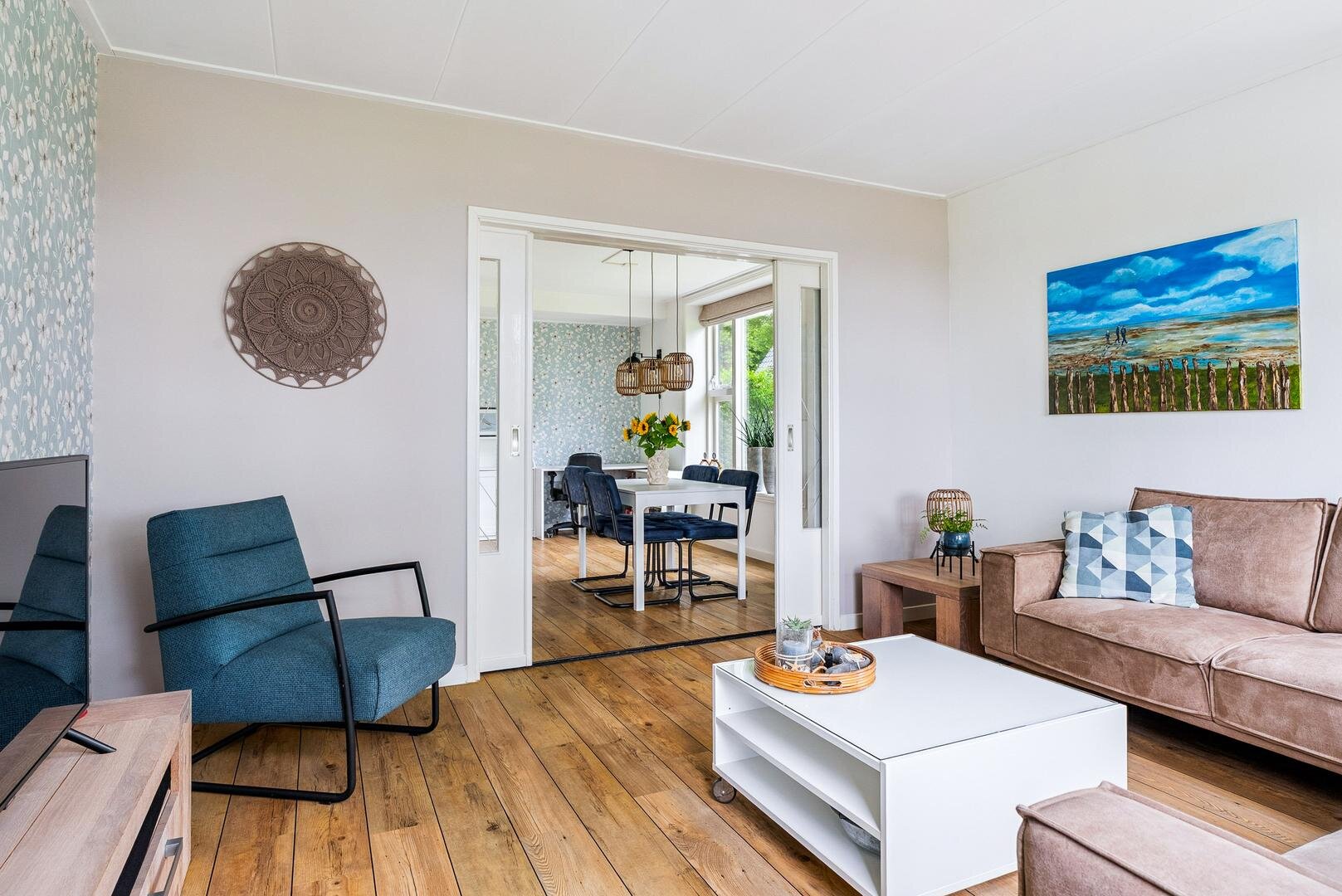 - PVC-vloer in de woonkamer, eetkamer en hal
