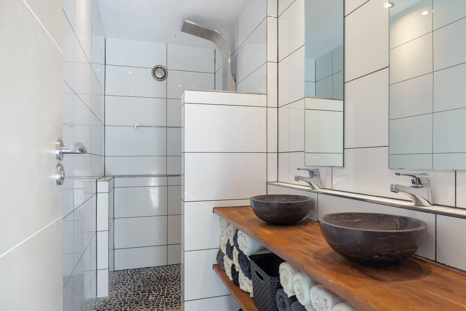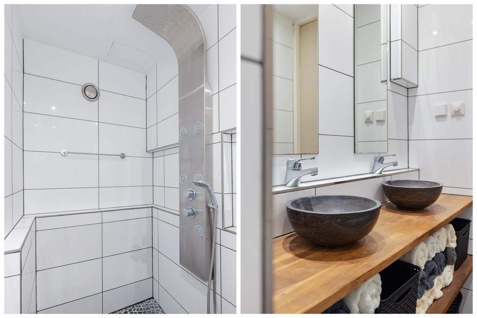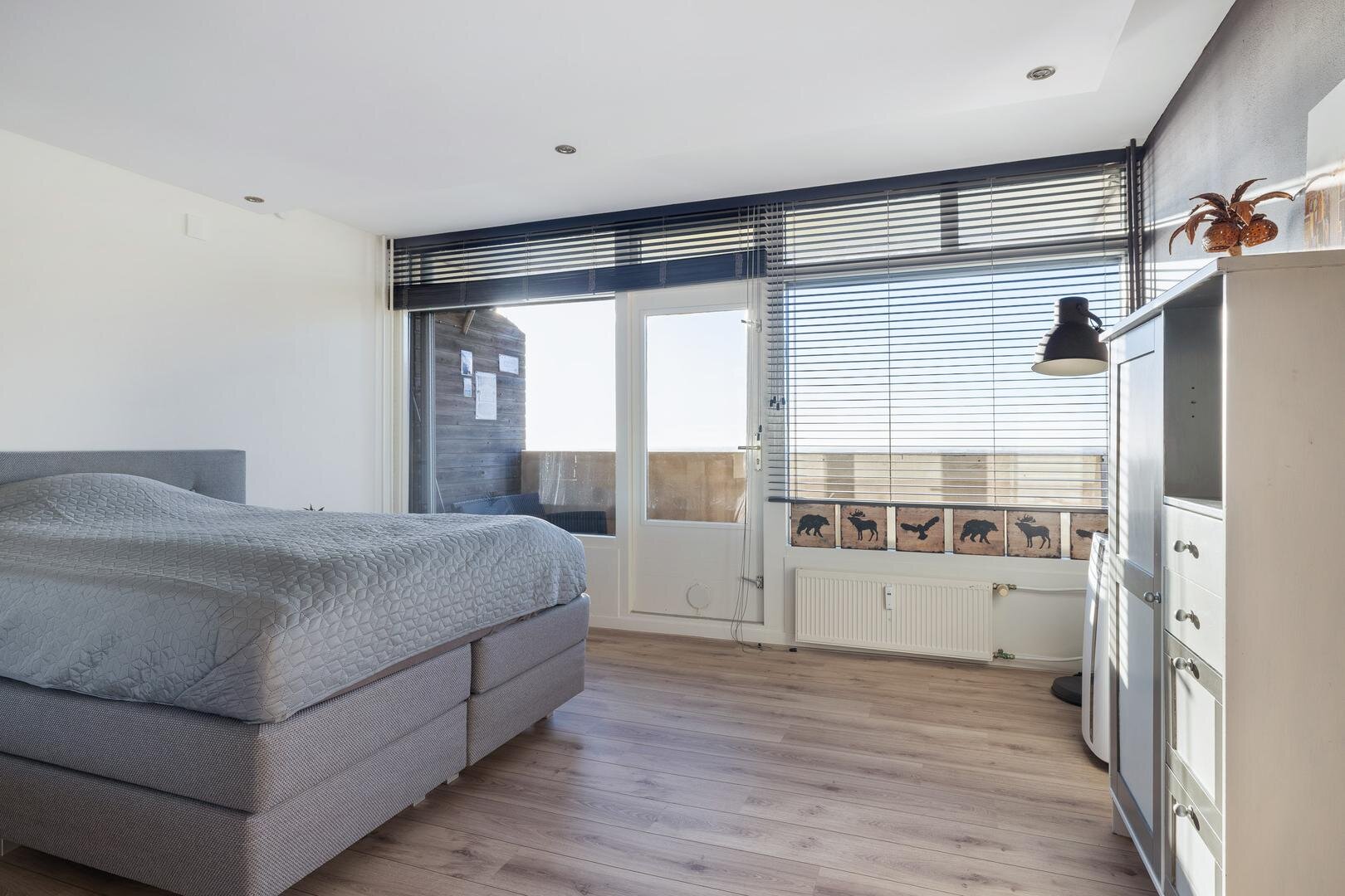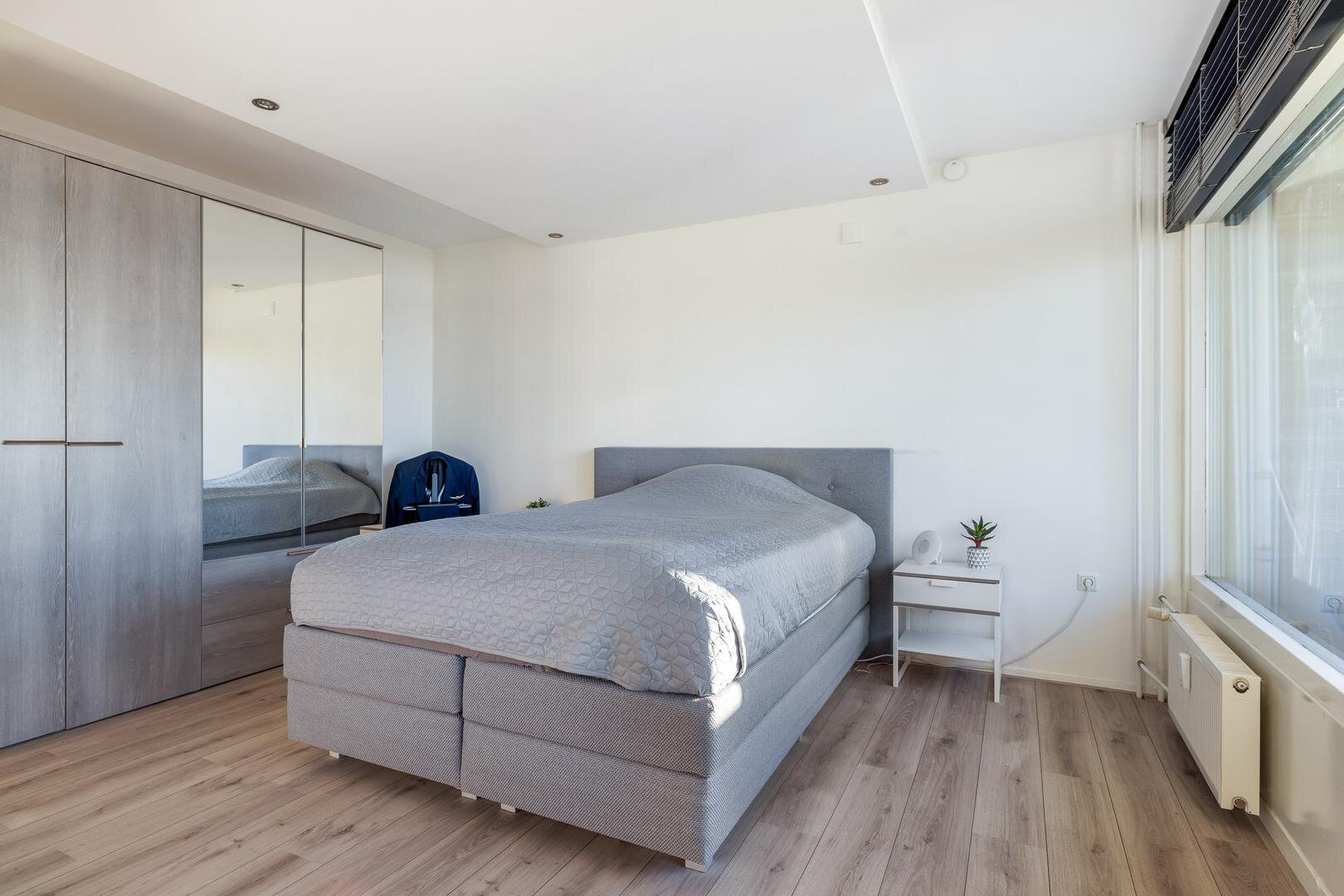 Het appartement beschikt over twee ruime tweepersoonsslaapkamers met laminaatvloer. Oorspronkelijk waren dit drie slaapkamers; twee kleinere kamers zijn samengevoegd tot één grote slaapkamer. De luxe badkamer is voorzien van een inloopdouche en een dubbele wastafel.