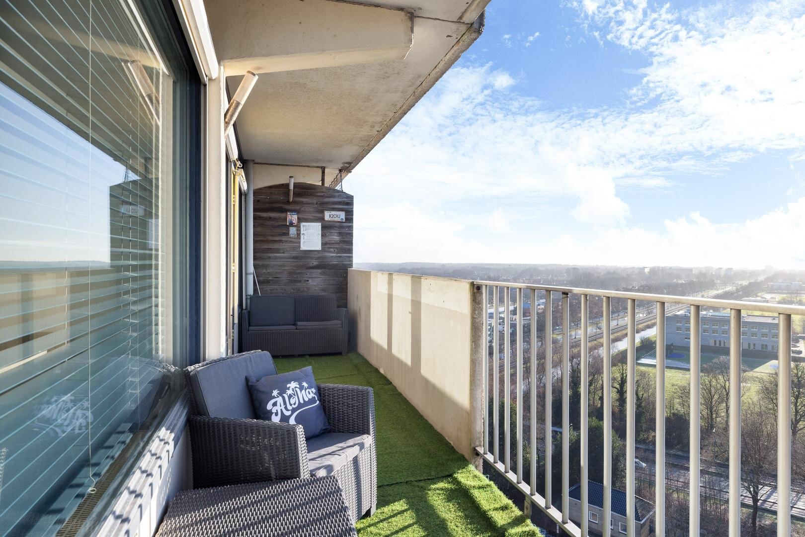 Wonen op hoogte met indrukwekkend uitzicht over Heerenveen: vanuit dit modern ingerichte appartement met 2 slaapkamers op de dertiende woonlaag van het bekende complex “Romsicht” kijk je vrij uit over Heerenveen en haar groene omgeving. Van zonsopkomst tot zonsondergang verandert het uitzicht continu en biedt het iedere dag een nieuw panorama.