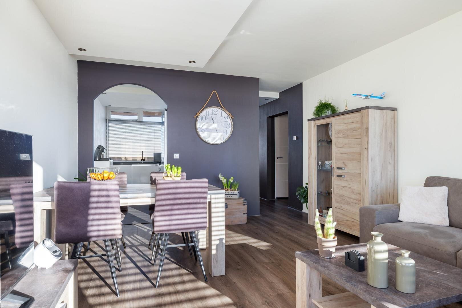Via de hal/entree met garderoberuimte bereik je de berging, het toilet en de woonkamer. De lichte woonkamer van ca. 22 m² is voorzien van een laminaatvloer en heeft een loopdeur naar het zonnige balkon op het zuiden met vlonderterras.