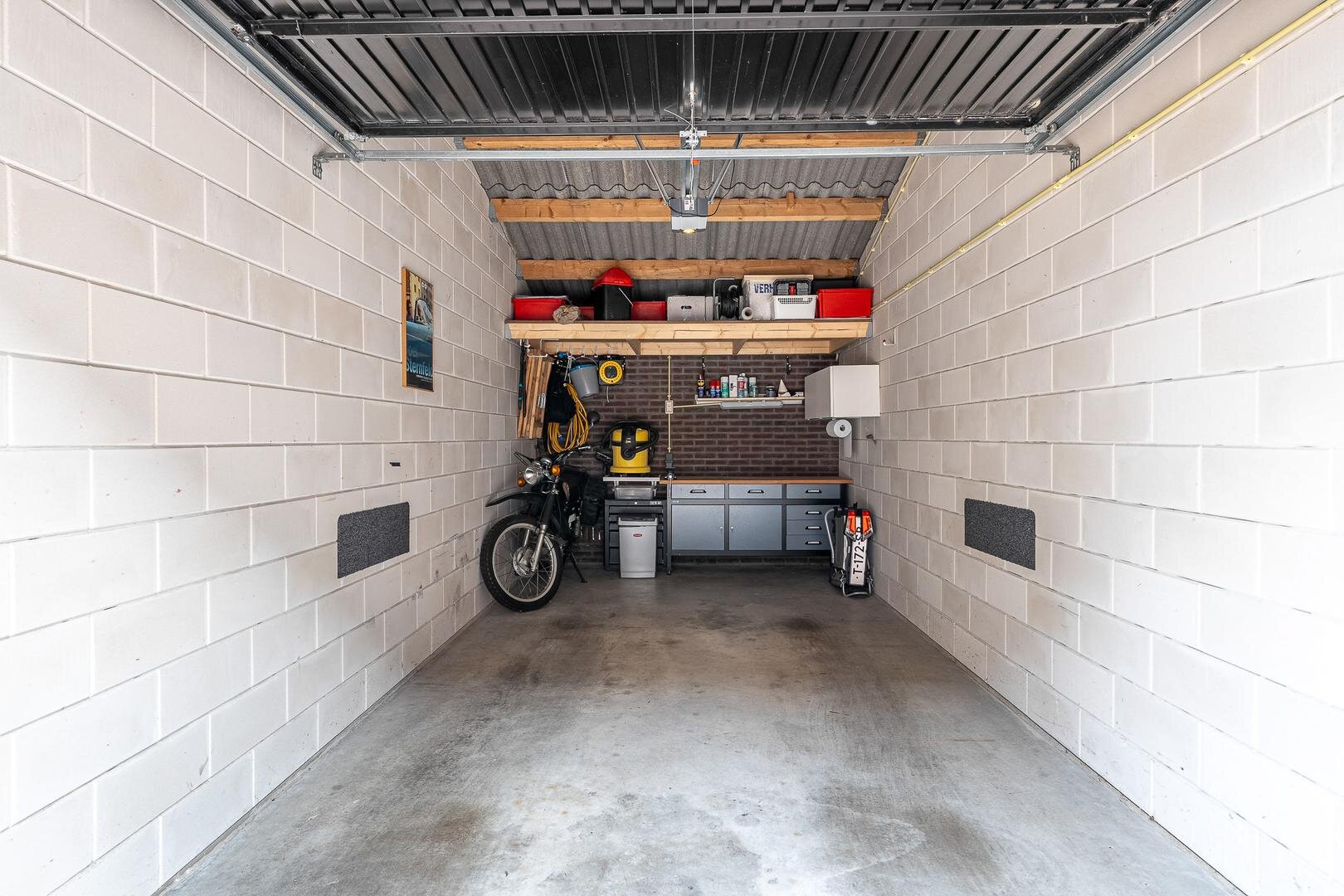 - Eigen garage (ca. 20 m²) met elektra en elektrische deur