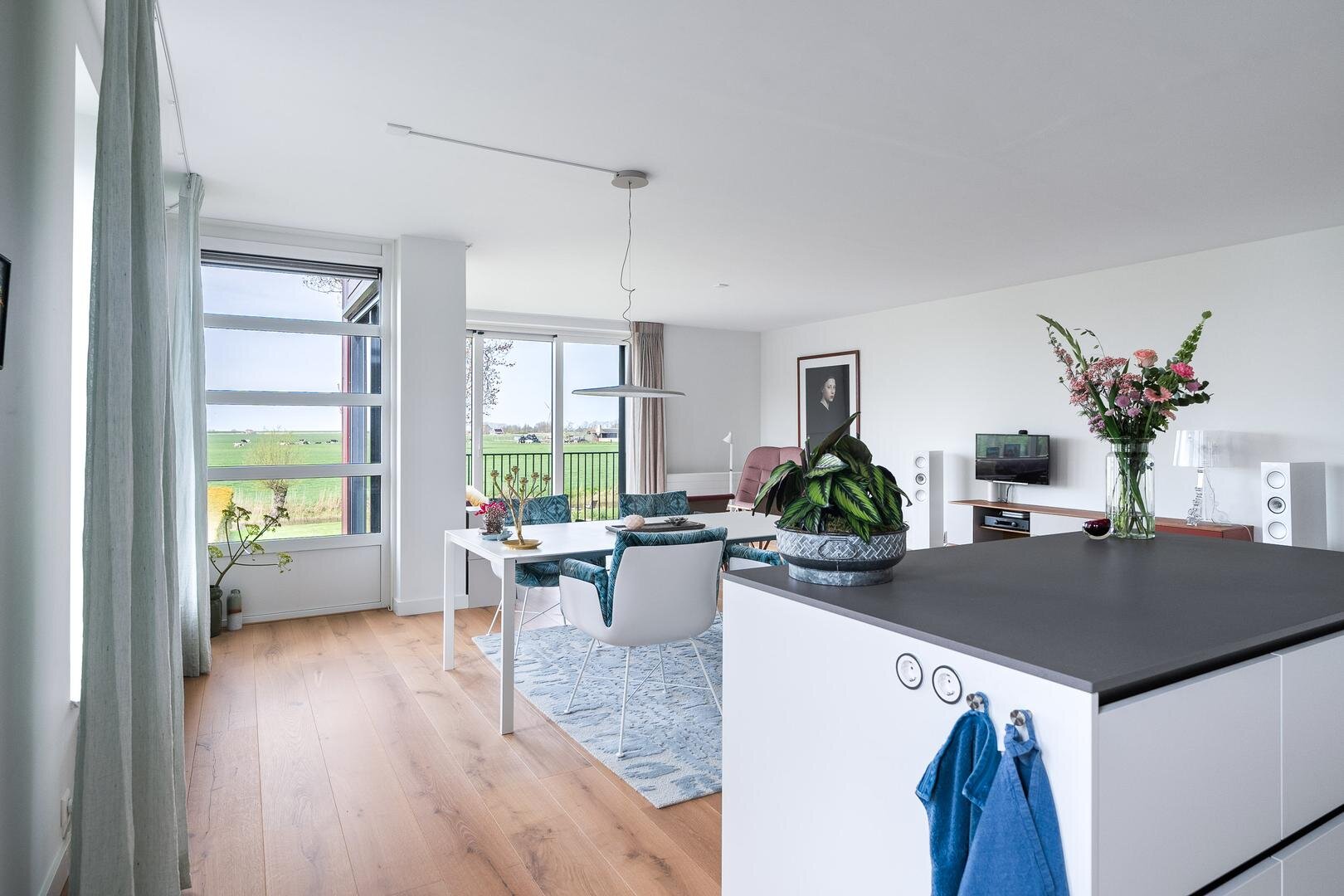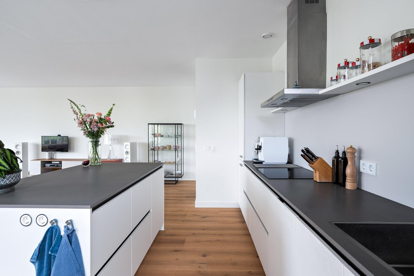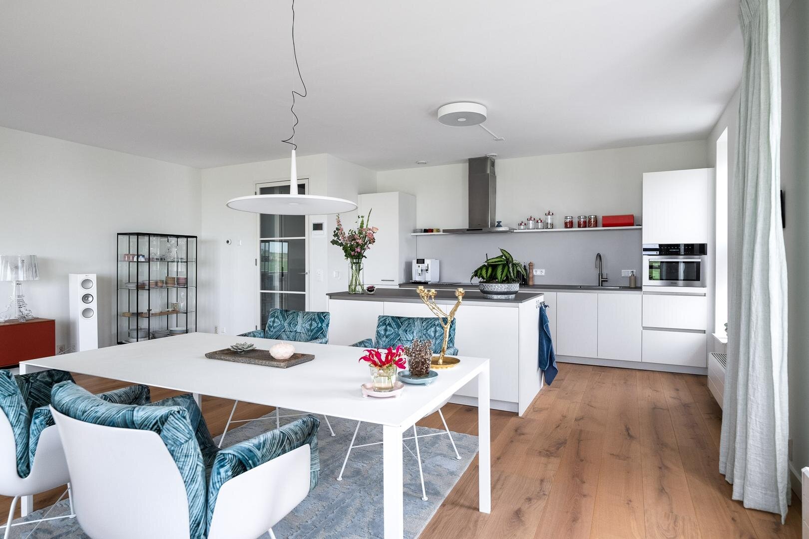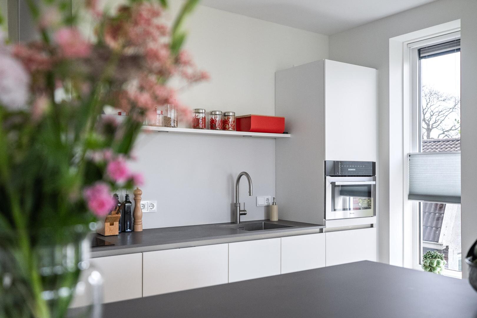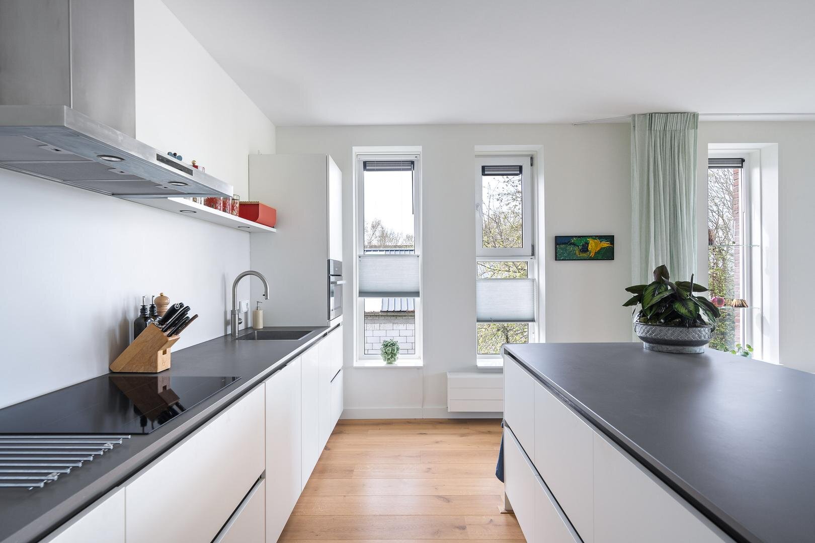 Het appartement is de afgelopen jaren volledig gemoderniseerd en hoogwaardig afgewerkt, waardoor u hier direct zorgeloos kunt wonen. De ruime hal biedt toegang tot alle vertrekken en beschikt over een praktische inpandige berging met aansluitingen voor witgoed, een cv-ruimte en een modern toilet (recent vernieuwd). De lichte woonkamer vormt het hart van de woning en kenmerkt zich door grote raampartijen en een Frans balkon met een fenomenaal uitzicht. De moderne open keuken is vernieuwd en voorzien van diverse inbouwapparatuur. Daarnaast is er een op maat gemaakt keukenmeubel gerealiseerd, wat zorgt voor extra luxe en functionaliteit.