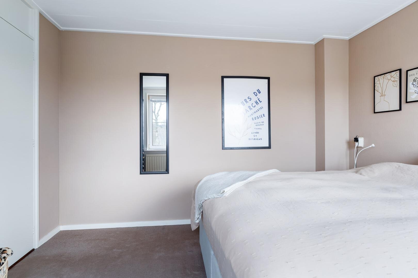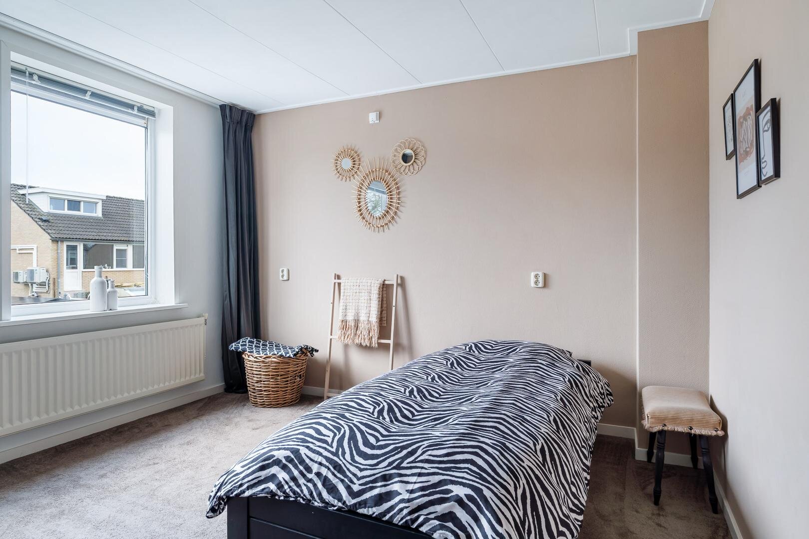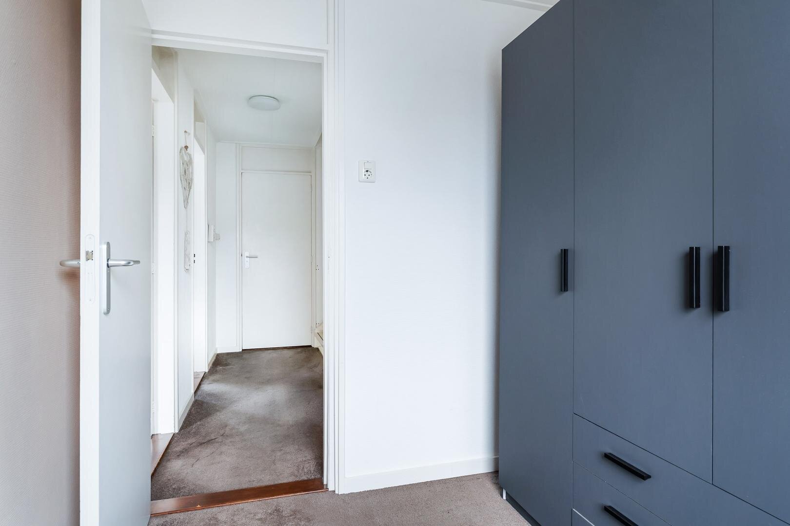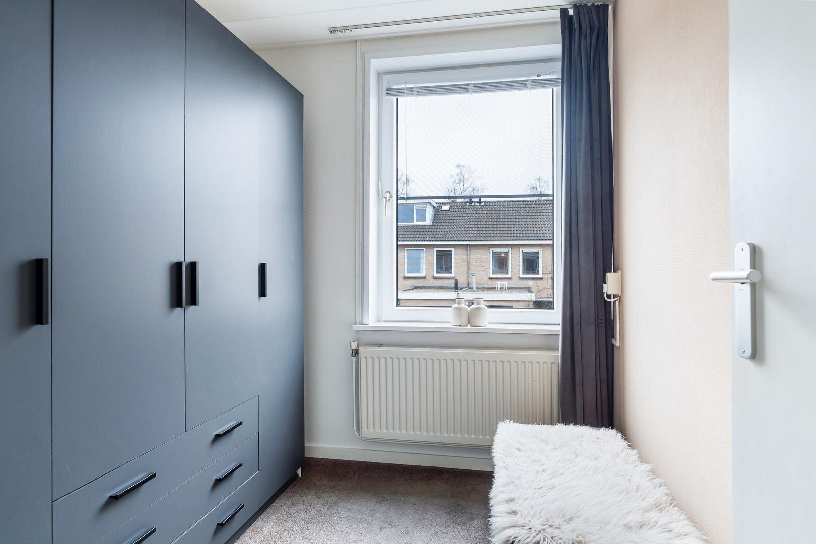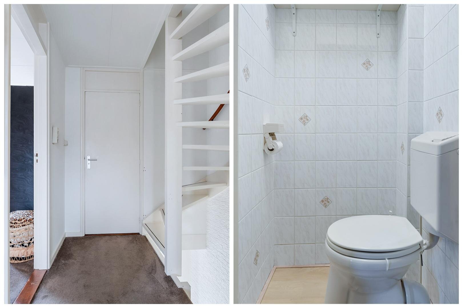 Op de eerste verdieping vind je een overloop met een separaat tweede toilet, drie slaapkamers (waarvan twee ruim van formaat) en de badkamer. Alle slaapkamers zijn voorzien van kunststof kozijnen met horren en strak afgewerkte wanden en plafonds.