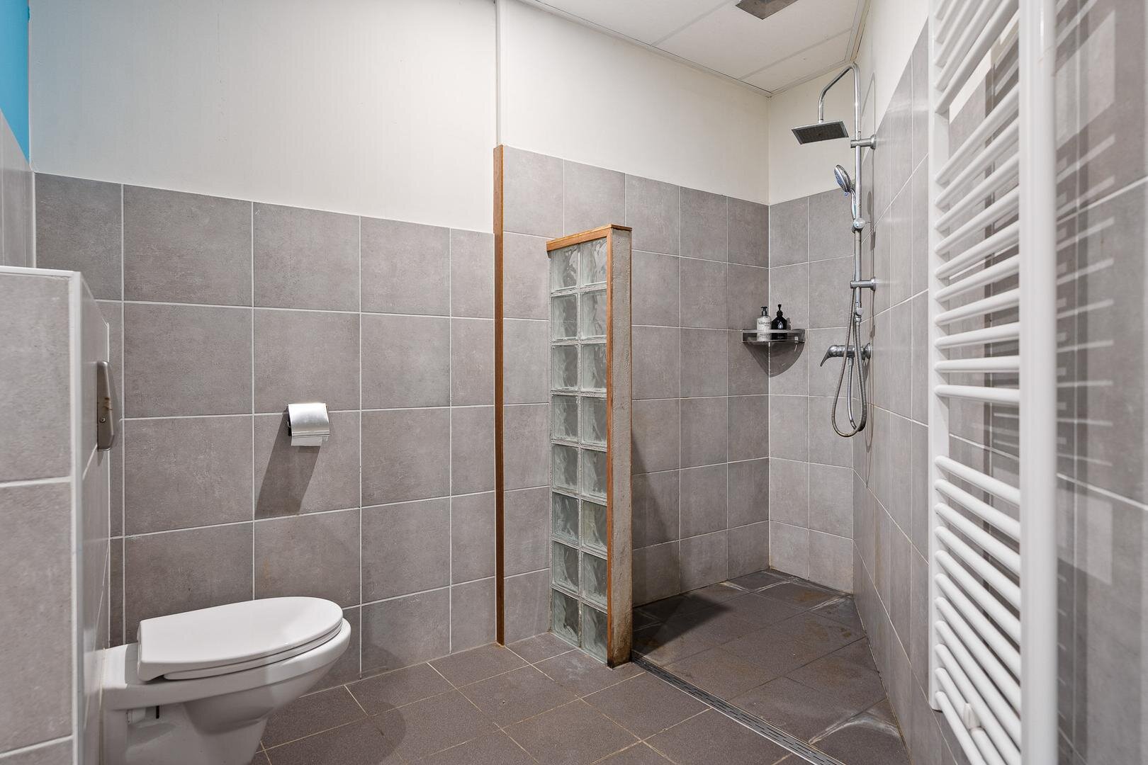 Terug in de hal bereik je het gastentoilet en daarnaast de volledig betegelde badkamer, voorzien van een hangend closet, inloopdouche, wastafelmeubel en aansluiting voor de wasmachine. Aan de achterzijde van het appartement bevindt zich de tweede, royale slaapkamer met aansluitend de praktische berging met de opstelling van de cv-ketel.