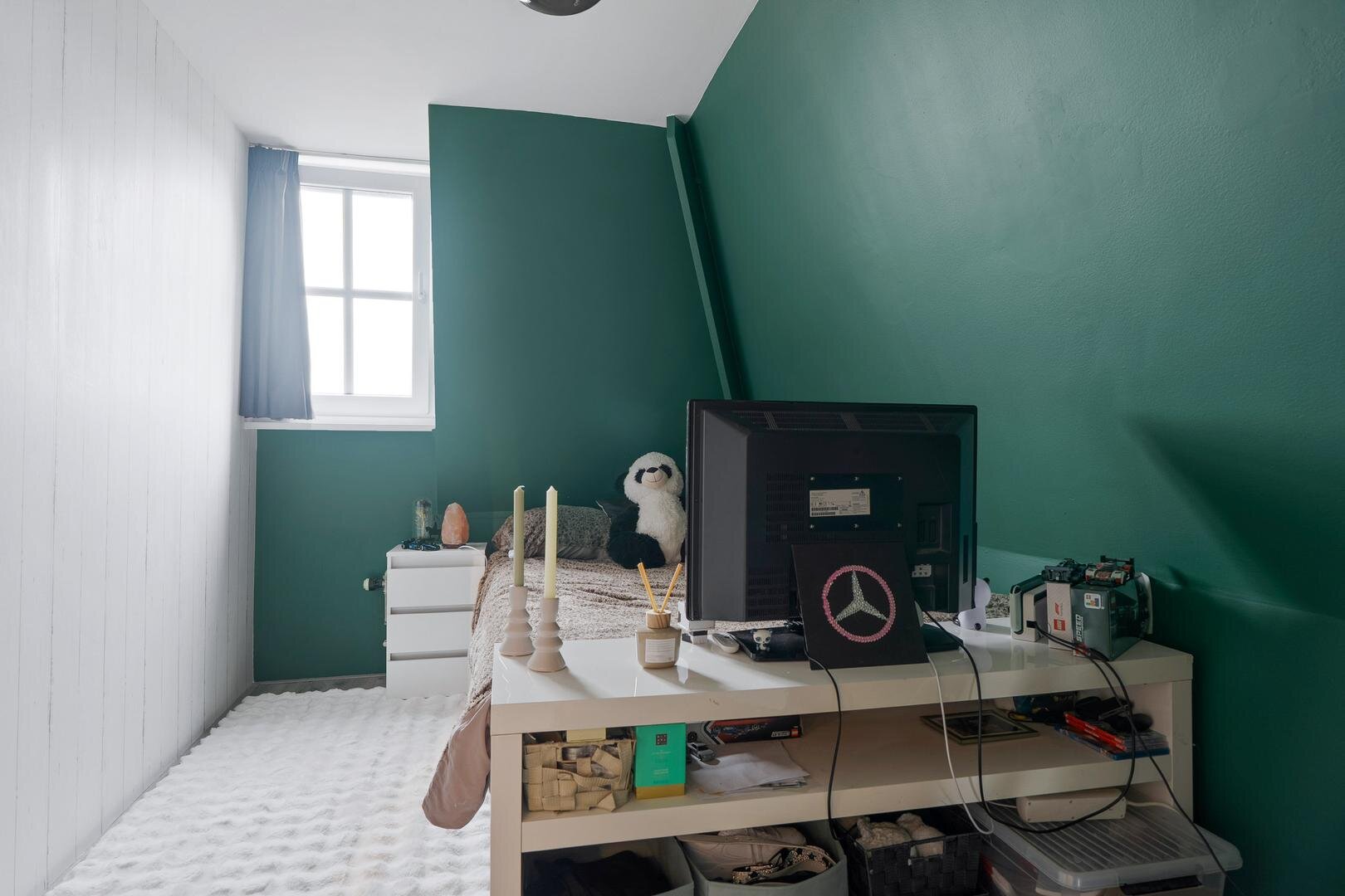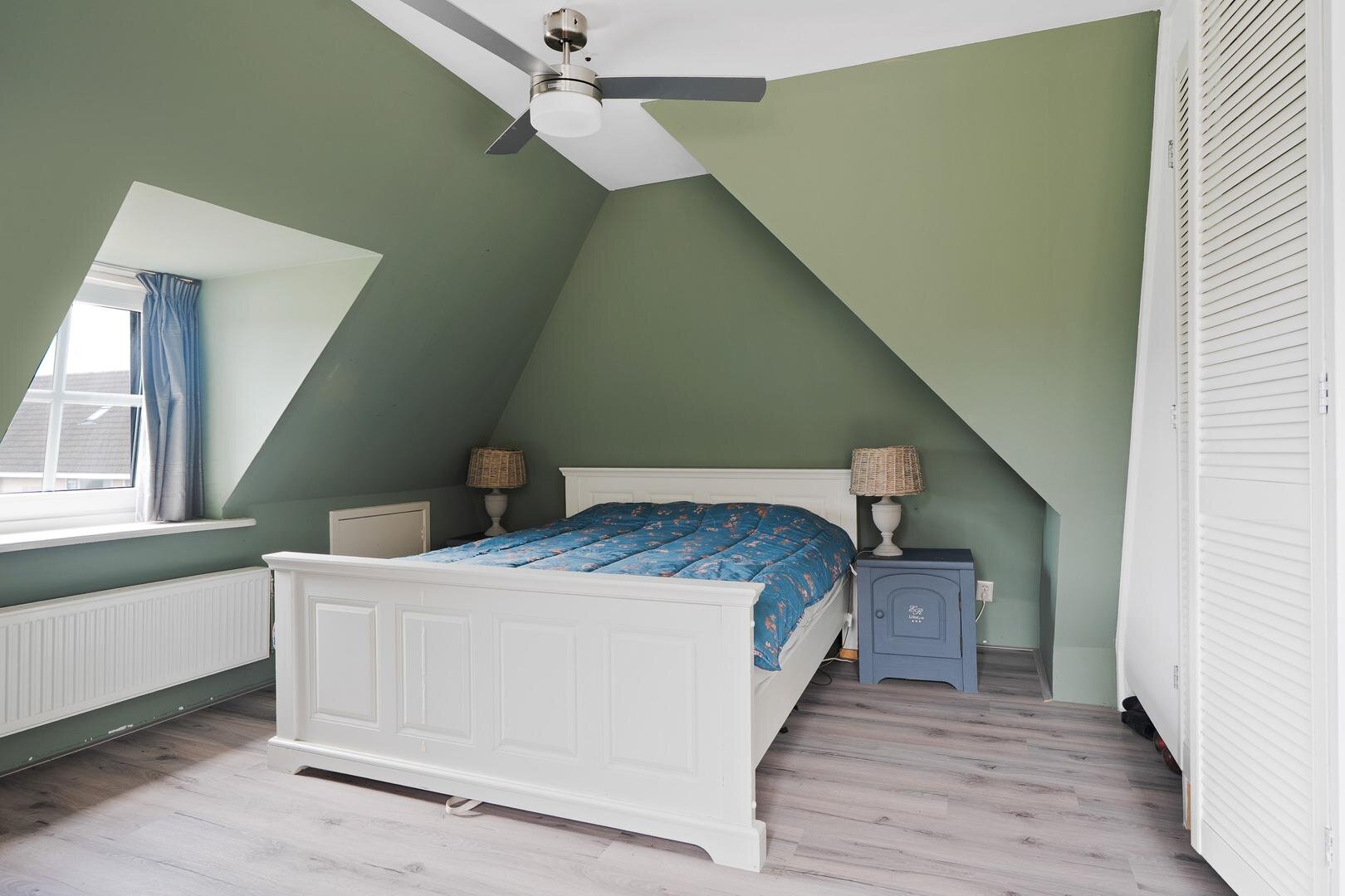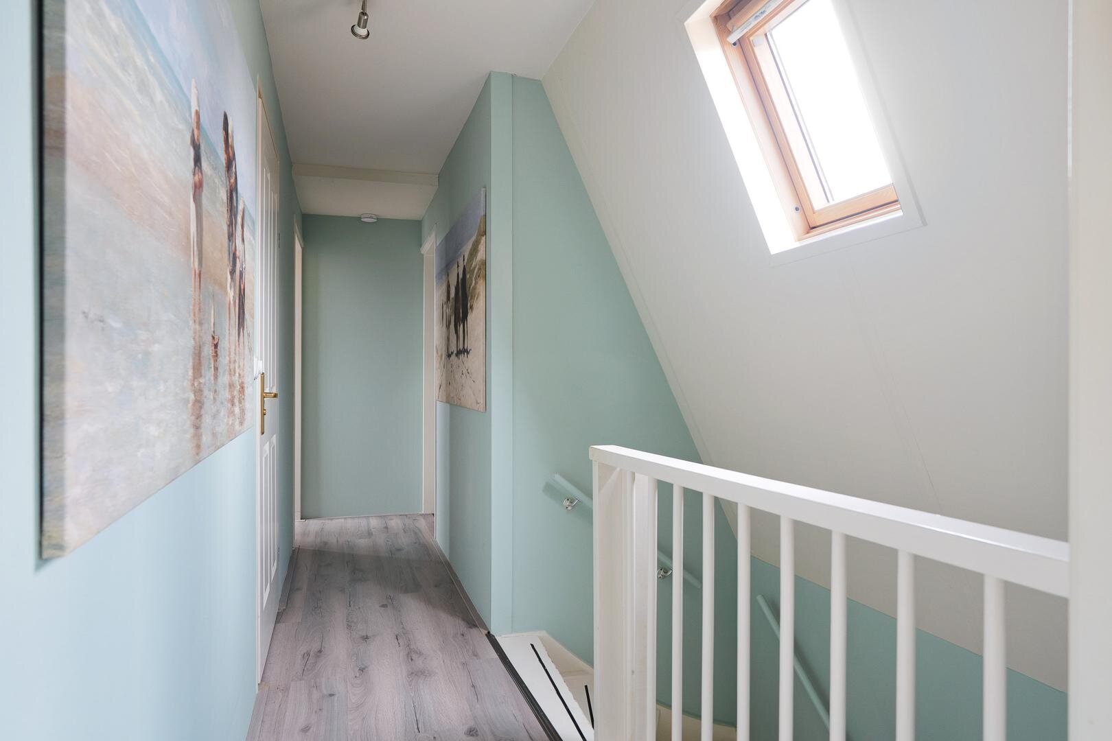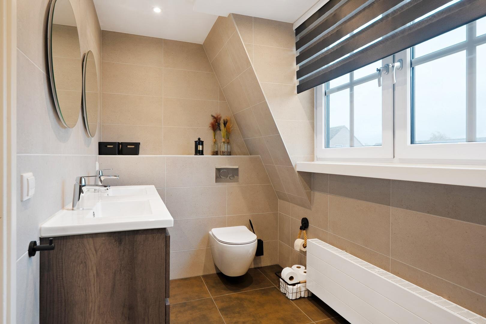 Op de verdieping vind je drie slaapkamers van mooi formaat en een moderne badkamer met toilet, dubbele wastafel en inloopdouche. Hierdoor is deze verdieping prettig in balans.