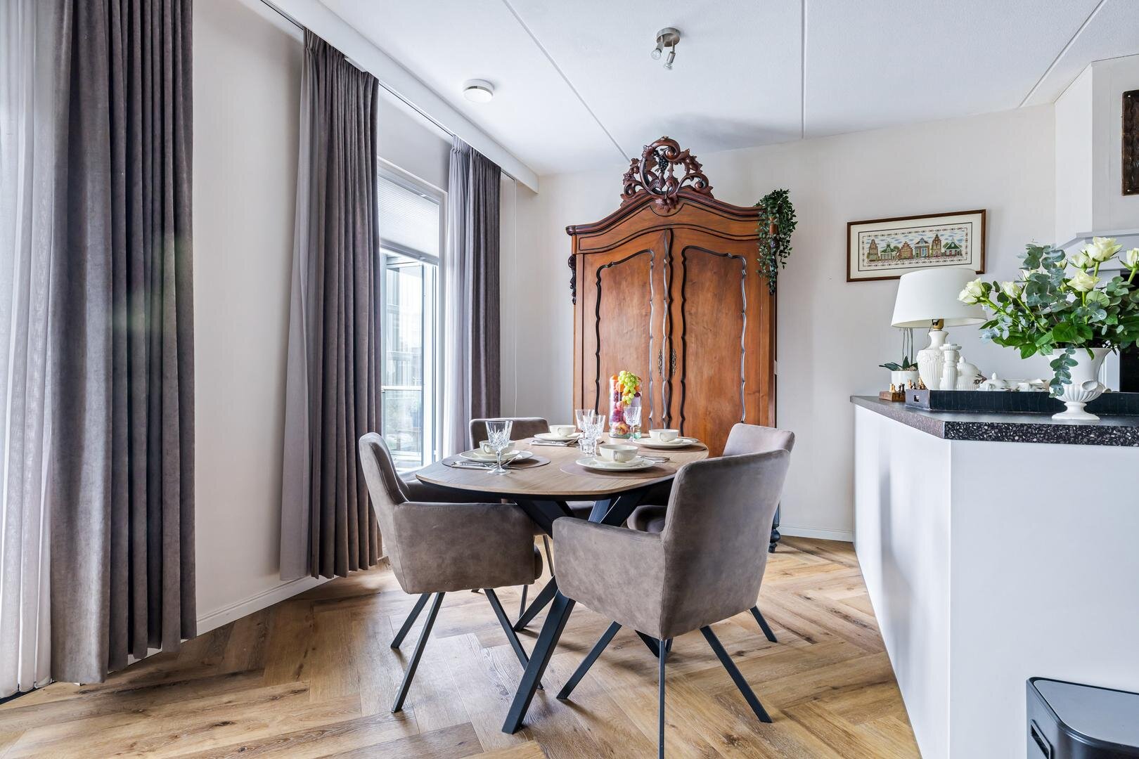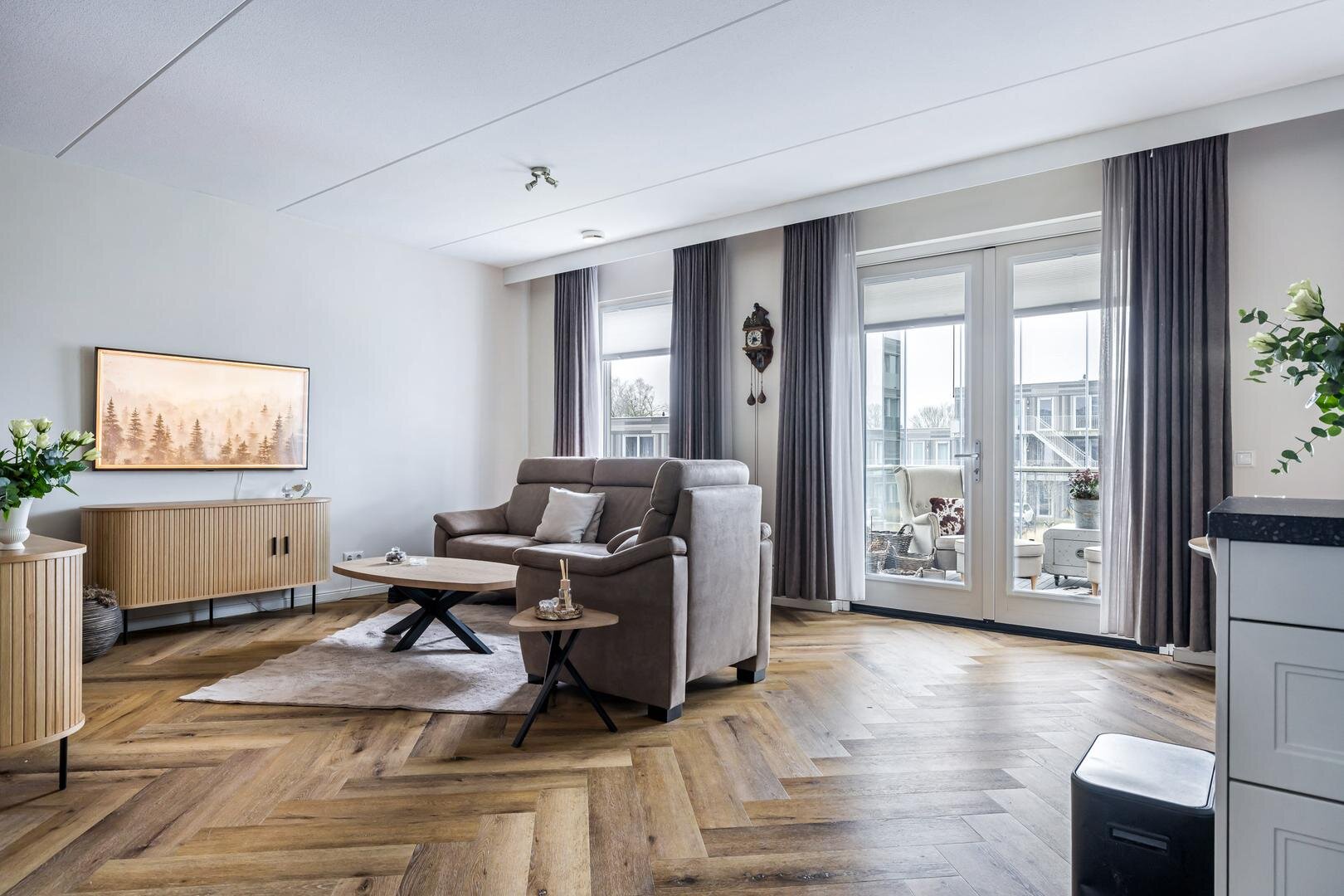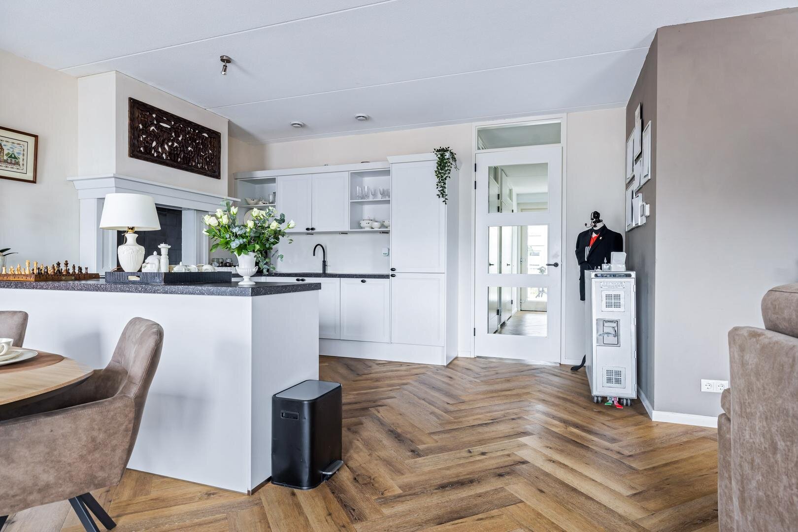 Het appartement zelf ligt op de eerste verdieping van het gebouw en straalt klasse en comfort uit. Denk aan een fraaie licht eiken pvc-vloer in visgraatmotief, een hoogwaardige afwerking en een luxe keuken waar koken een waar genot wordt. Bovendien is de woning voorzien van vloerverwarming én vloerkoeling, wat zorgt voor optimaal wooncomfort in ieder seizoen.