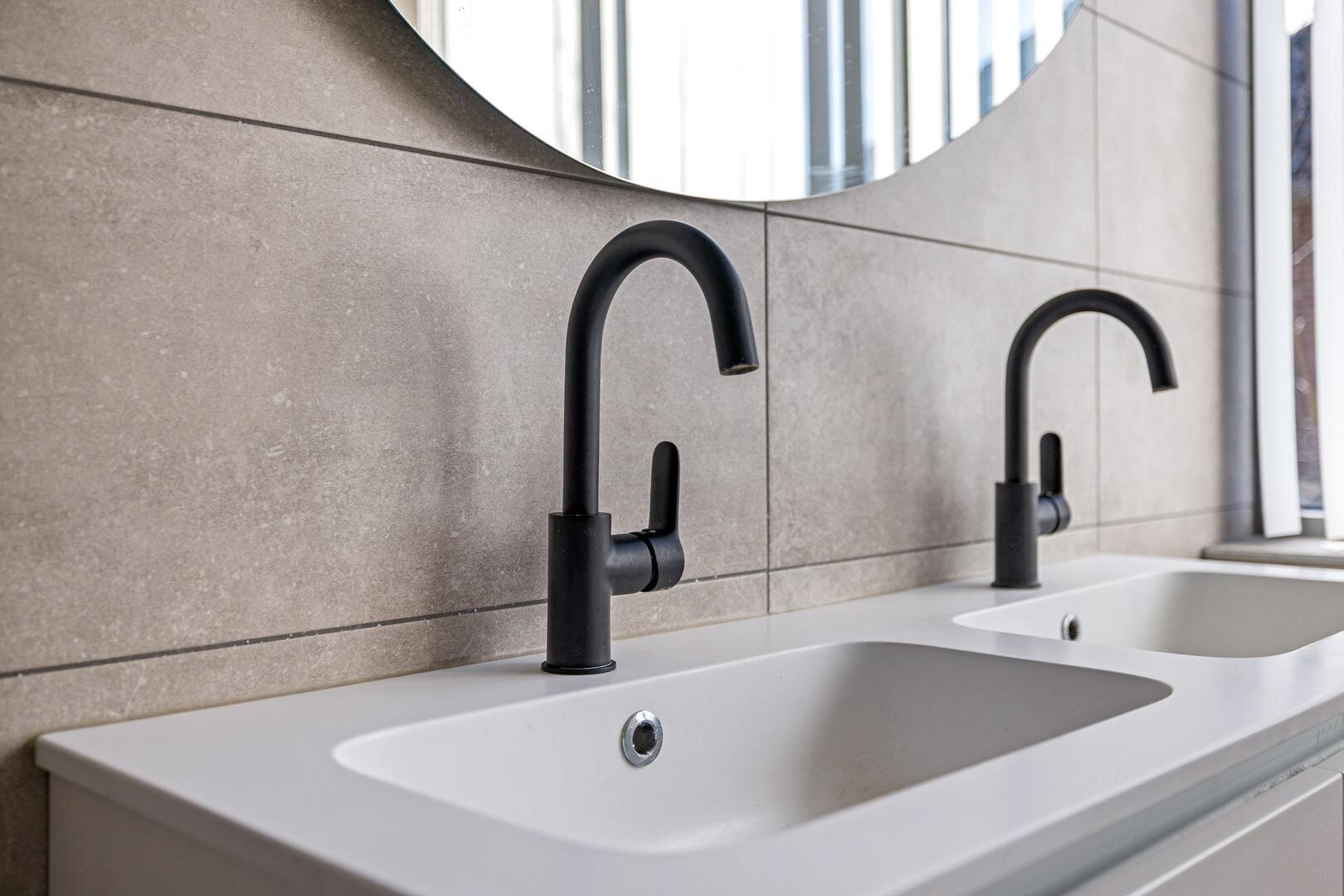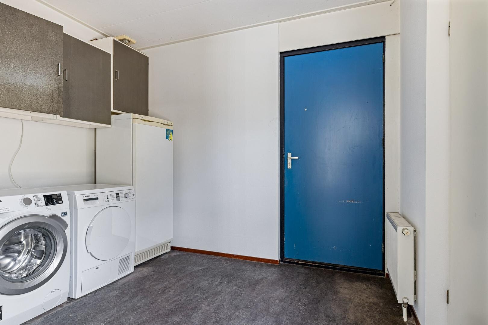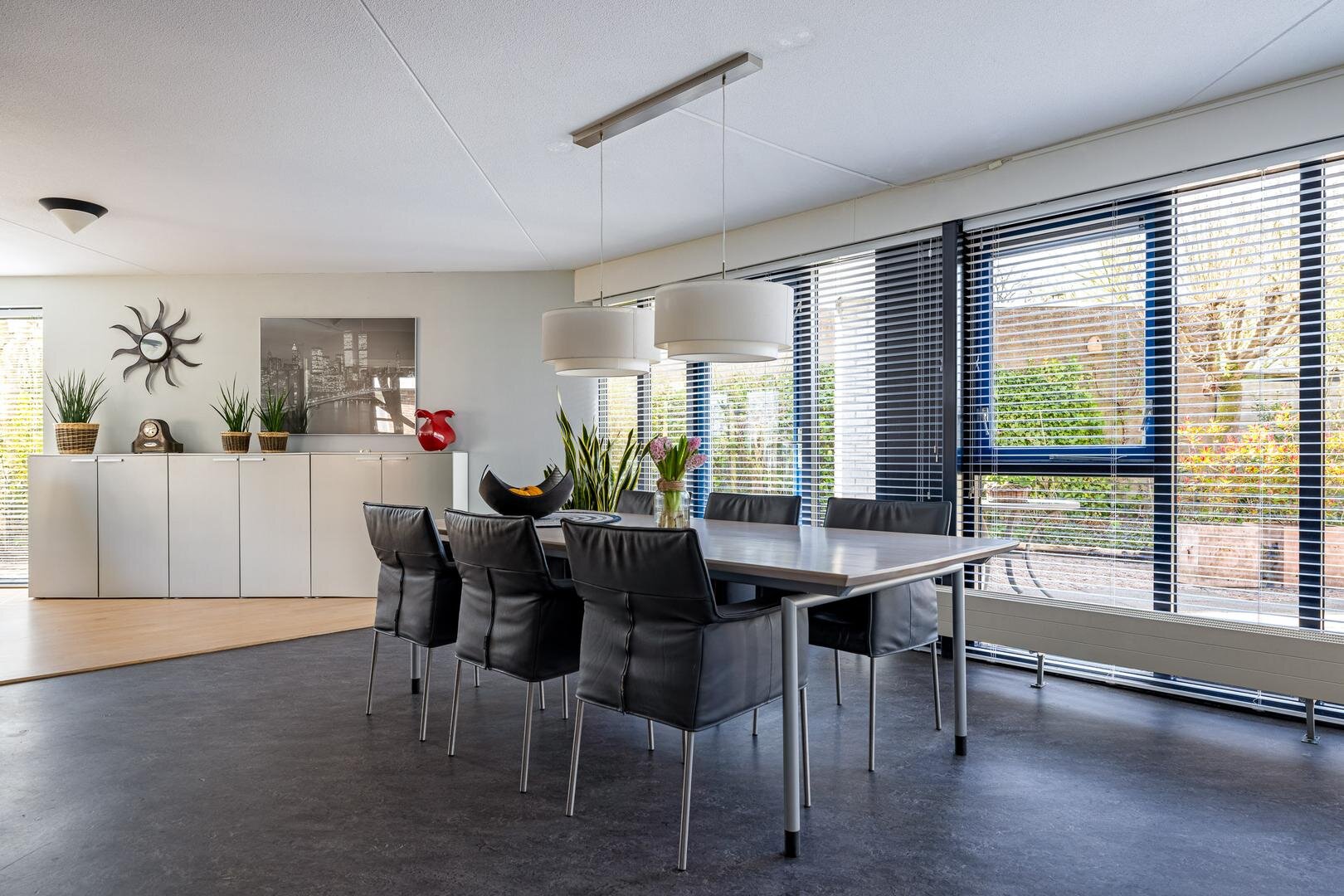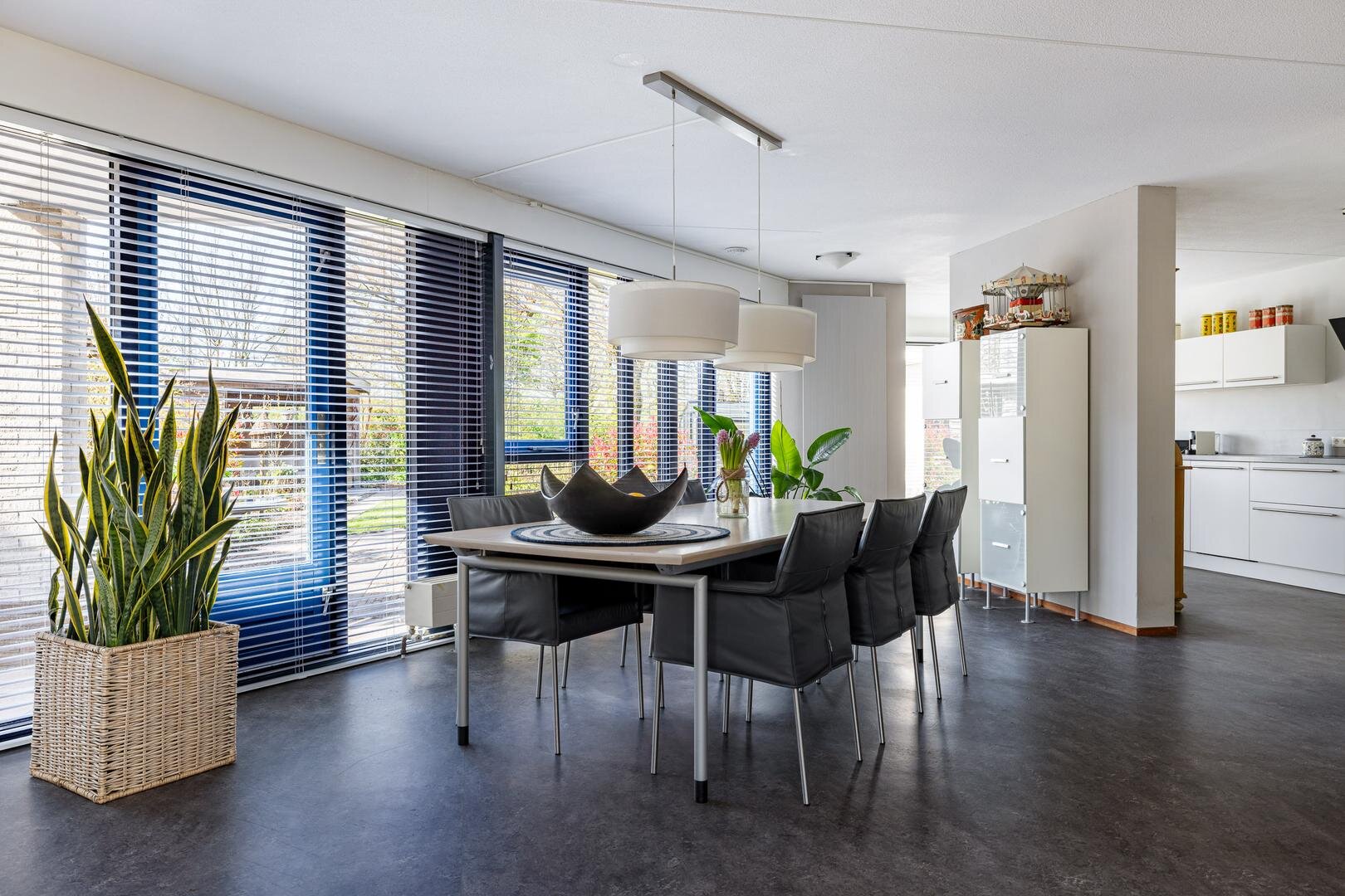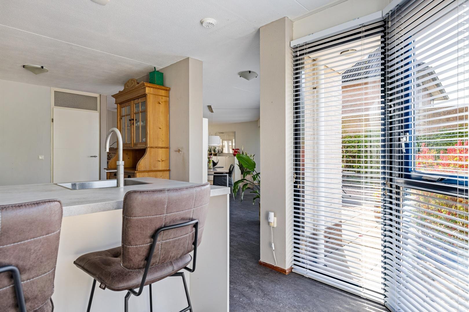 De keuken is uitgevoerd in een praktische L-opstelling en voorzien van diverse inbouwapparatuur, waaronder een koelkast, inductiekookplaat, combioven, Quooker en vaatwasser. Aansluitend bevindt zich de bijkeuken met pantry en opstelling voor het witgoed. Vanuit hier bereik je de multifunctionele kamer aan de achterzijde, momenteel in gebruik als kantoor.