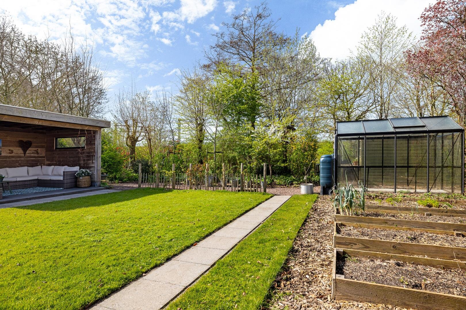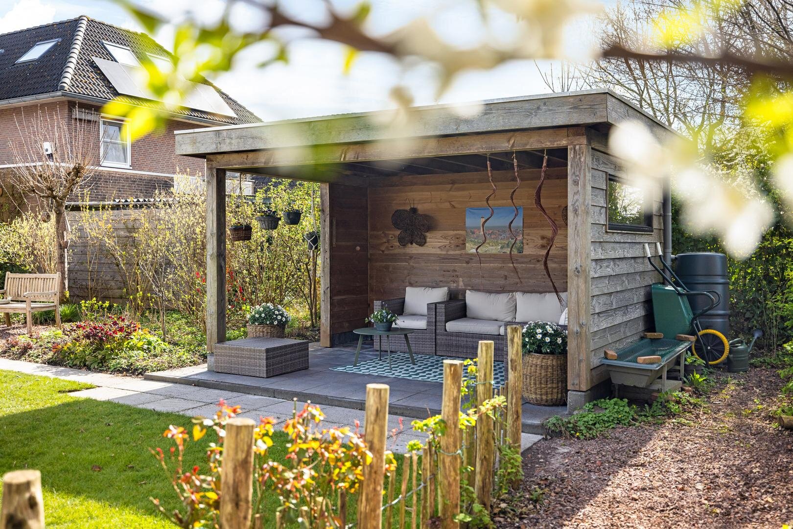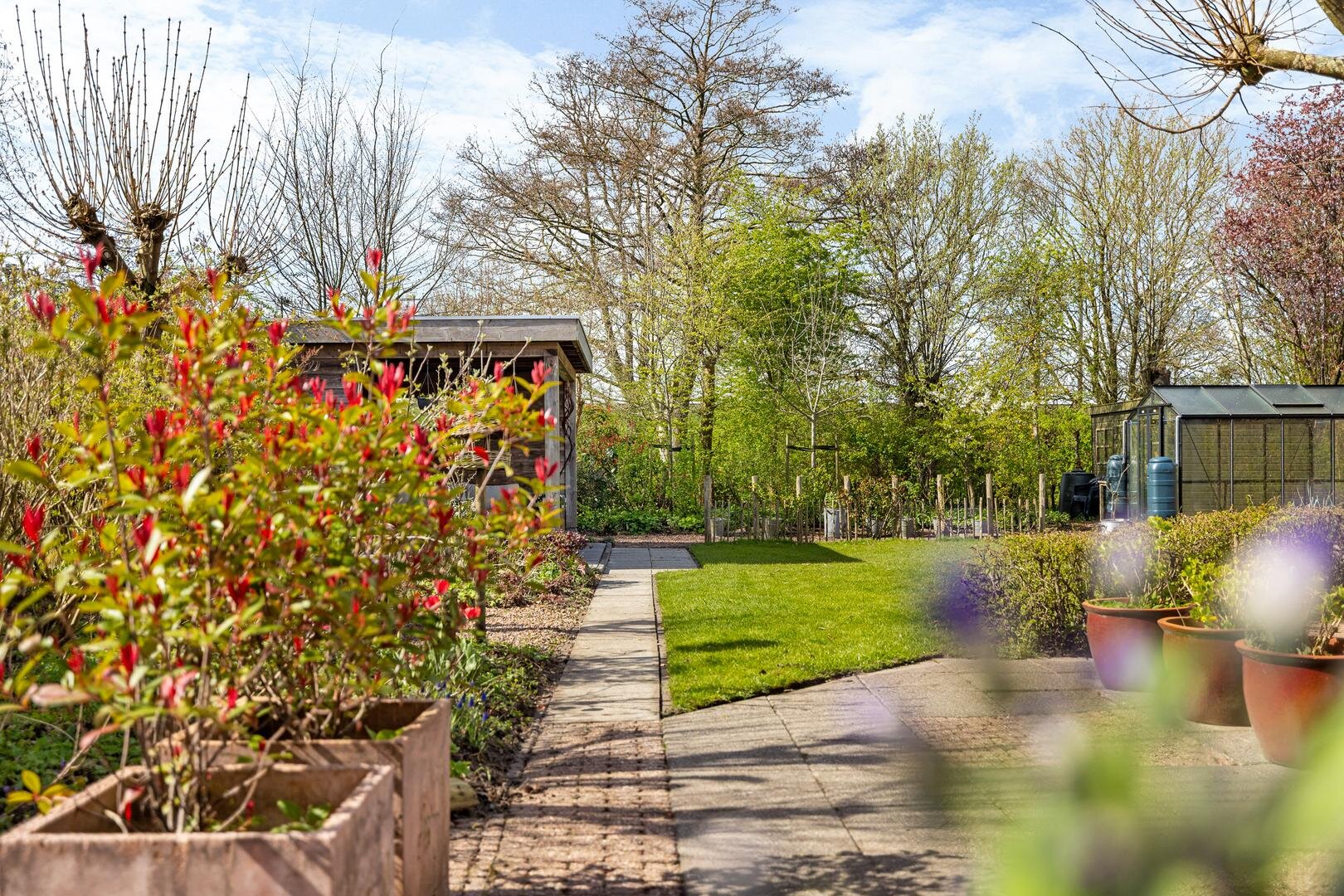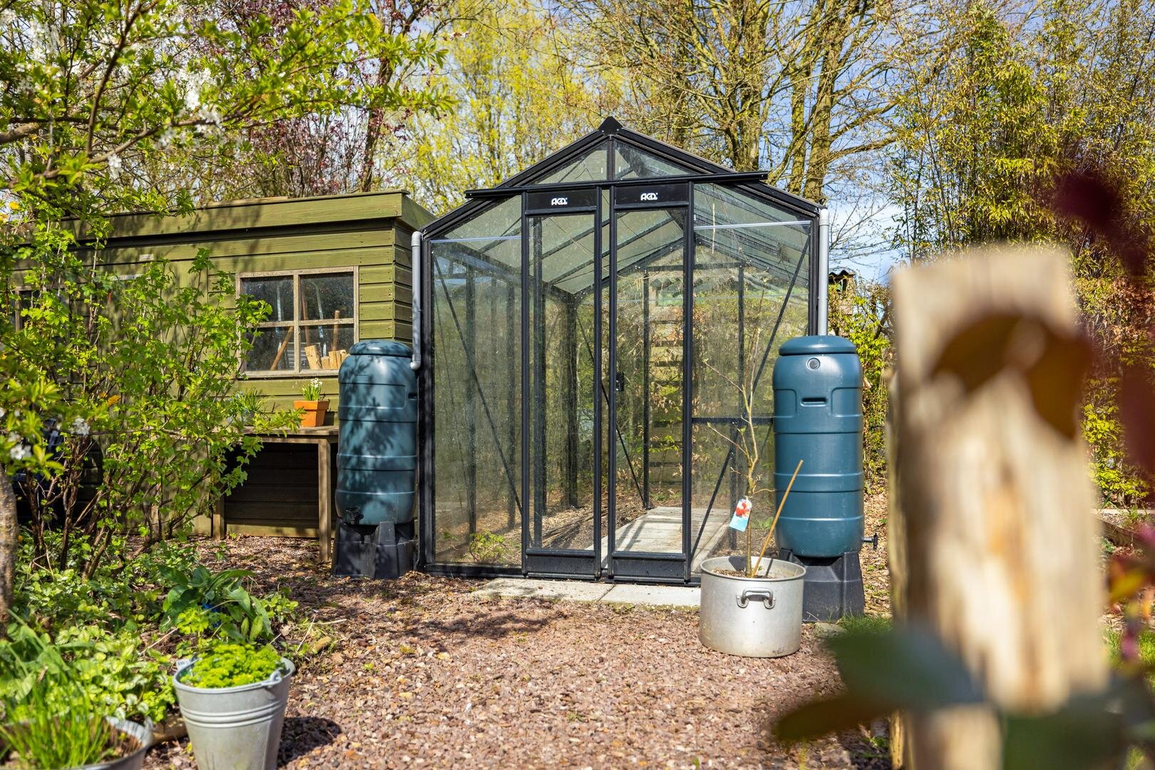 Buitenruimte: Het is heerlijk vertoeven in de royale tuin, waar je vrijwel de gehele dag kunt genieten van de zon. Het terras direct achter de woning nodigt uit tot lange avonden buiten, terwijl de moestuin en kas perfect zijn voor wie graag zelf kweekt. Achterin de tuin wacht een sfeervolle overkapping, een plek waar je het hele seizoen door kunt genieten.