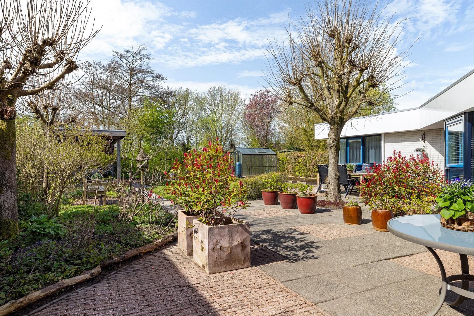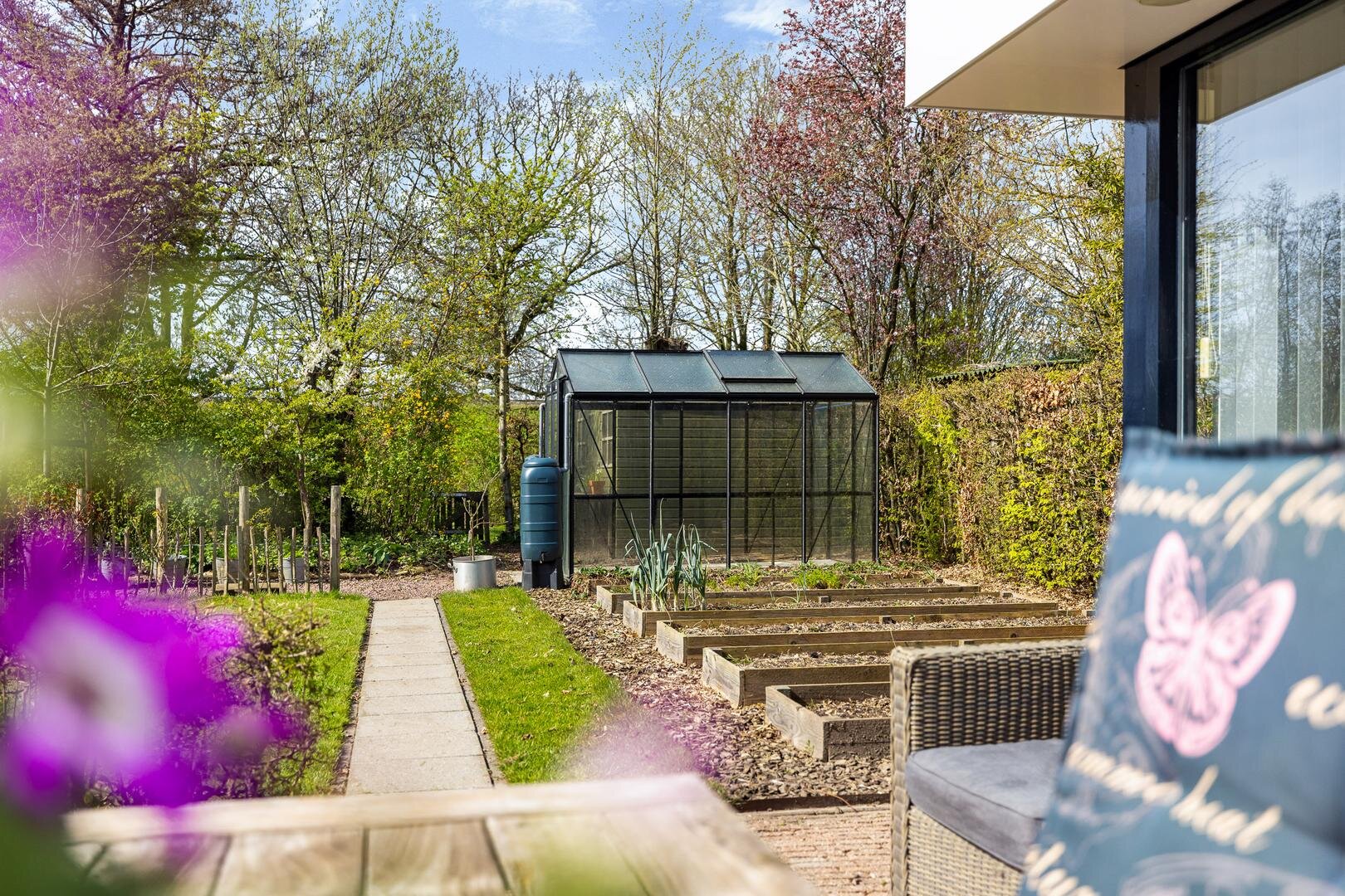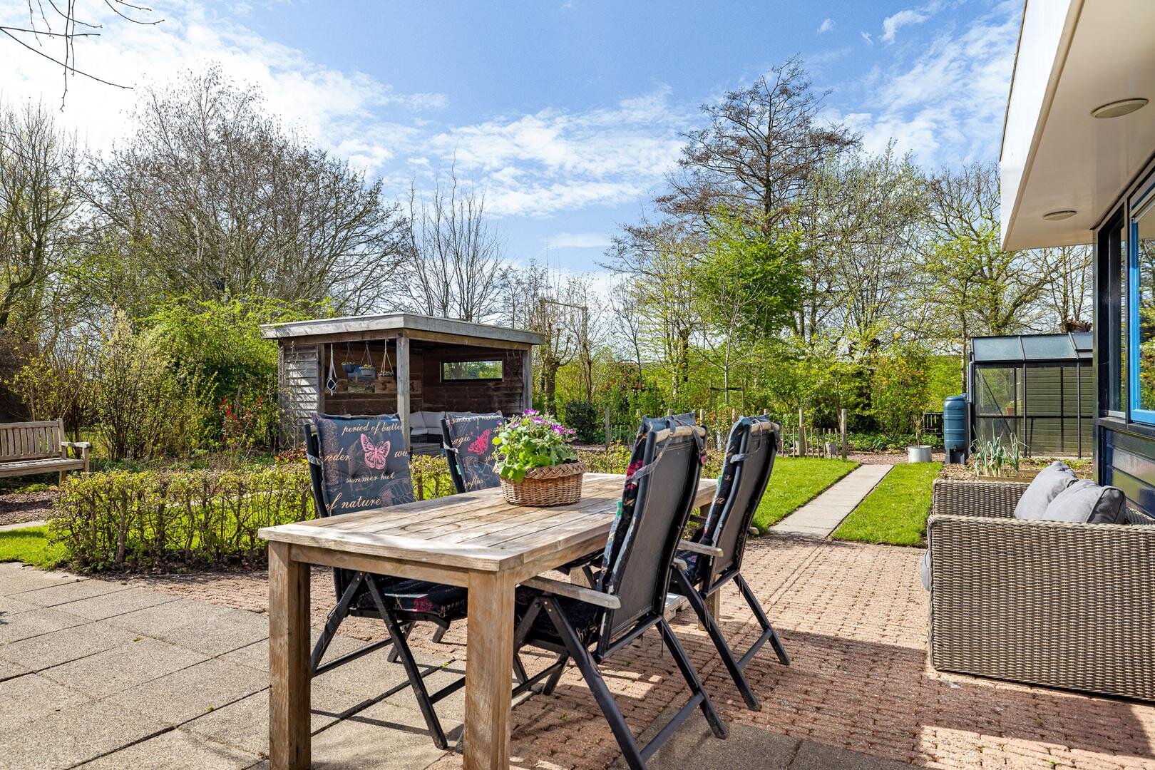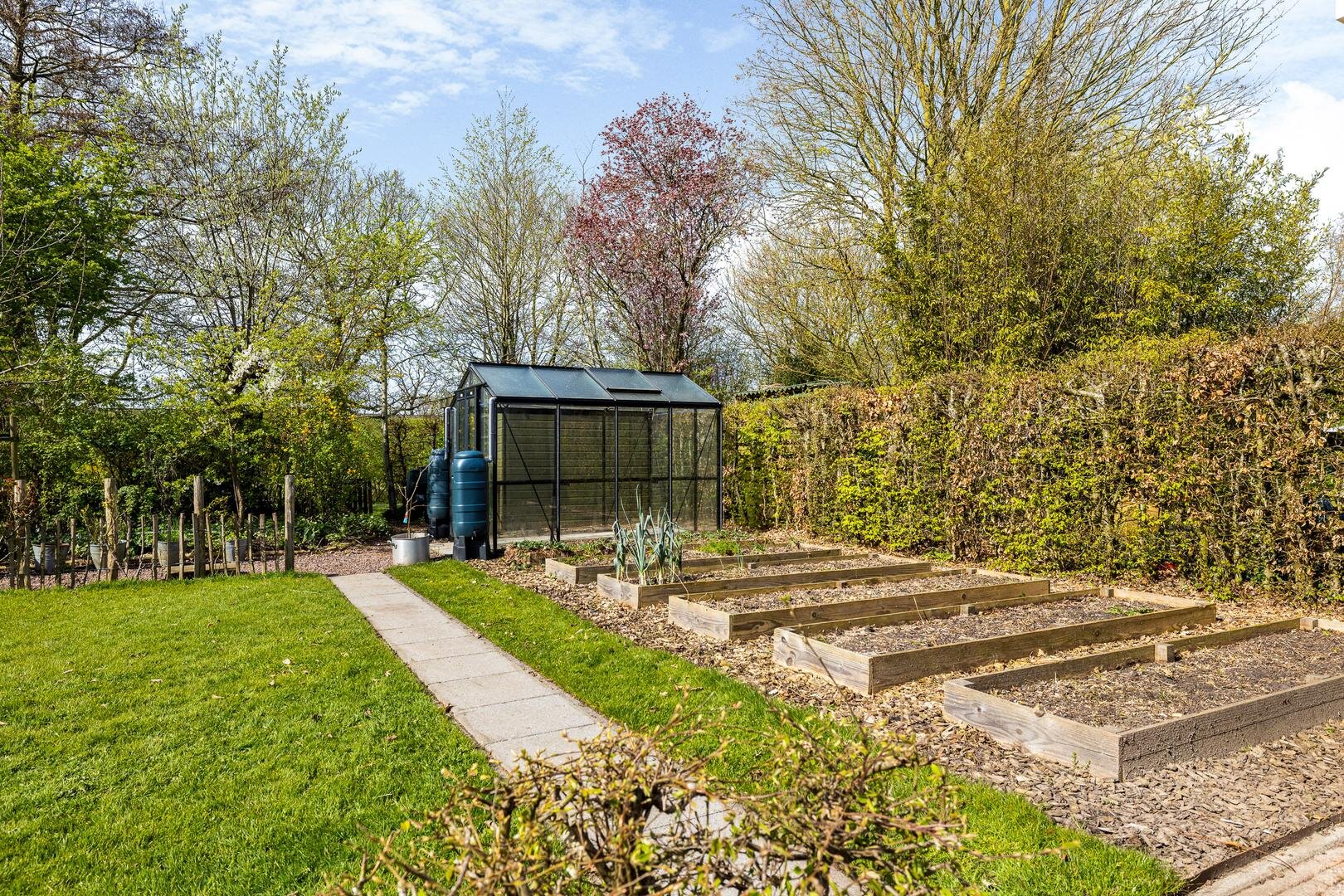 Buitenruimte: Het is heerlijk vertoeven in de royale tuin, waar je vrijwel de gehele dag kunt genieten van de zon. Het terras direct achter de woning nodigt uit tot lange avonden buiten, terwijl de moestuin en kas perfect zijn voor wie graag zelf kweekt. Achterin de tuin wacht een sfeervolle overkapping, een plek waar je het hele seizoen door kunt genieten.