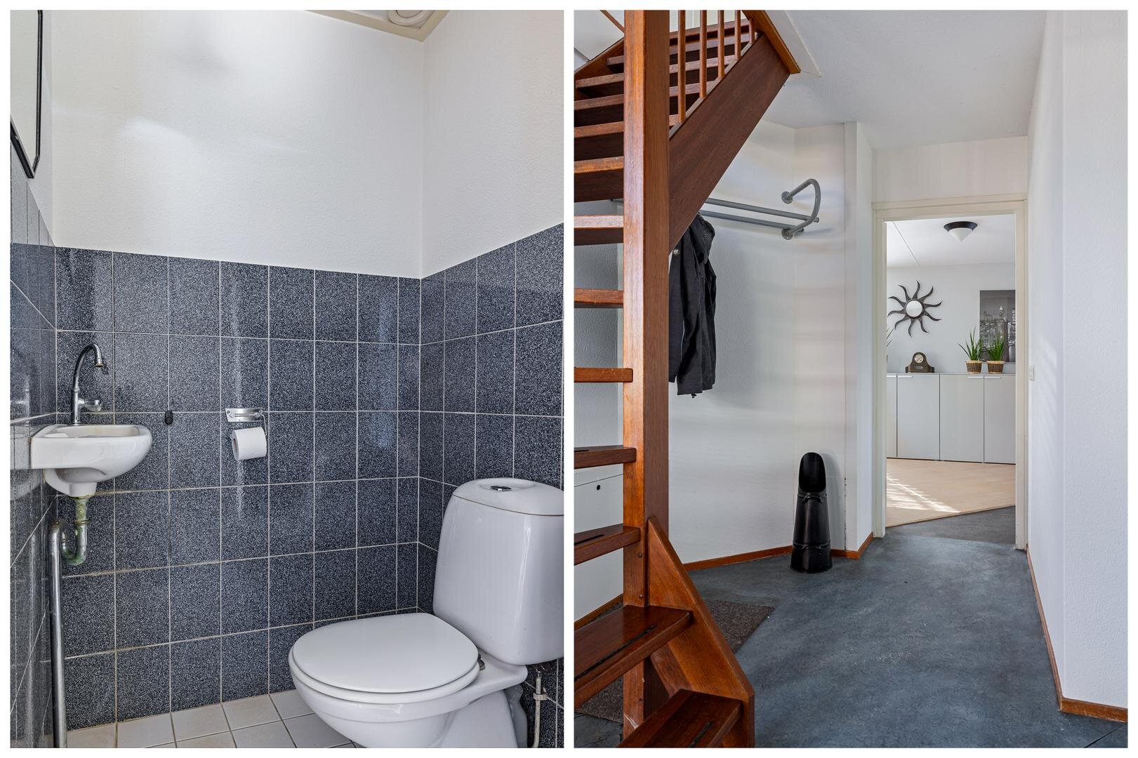 Begane grond: Ruime hal met trapopgang, meterkast en separaat toilet. De royale woonkamer biedt volop ruimte voor een comfortabele zithoek en staat in verbinding met de eetkamer, waar je via de deur direct toegang hebt tot de tuin.