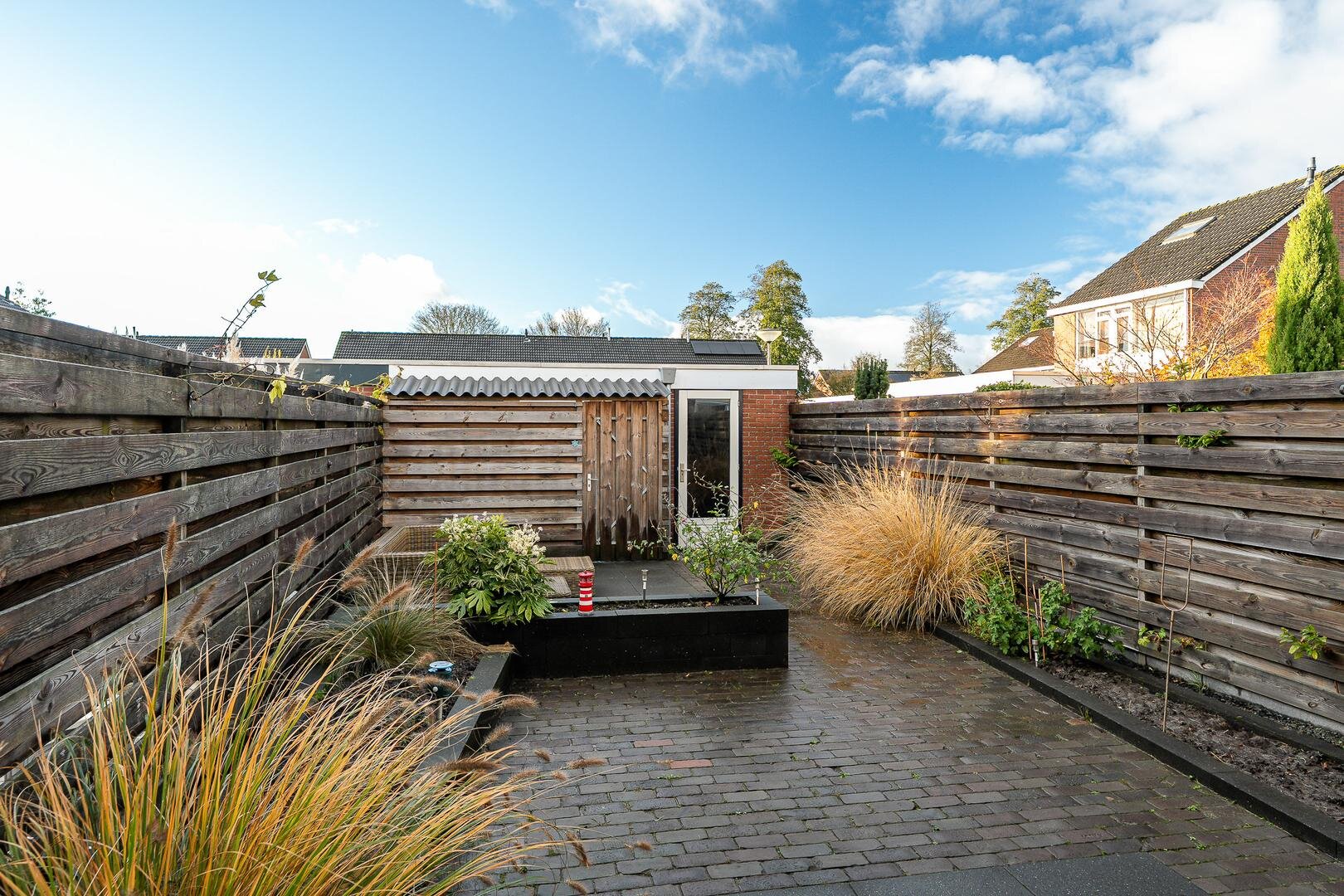 De woning beschikt over een nette, onderhoudsvrije achtertuin met achterom, carport en stenen berging. De voortuin is eveneens verzorgd aangelegd, waardoor het geheel een verzorgde uitstraling heeft.