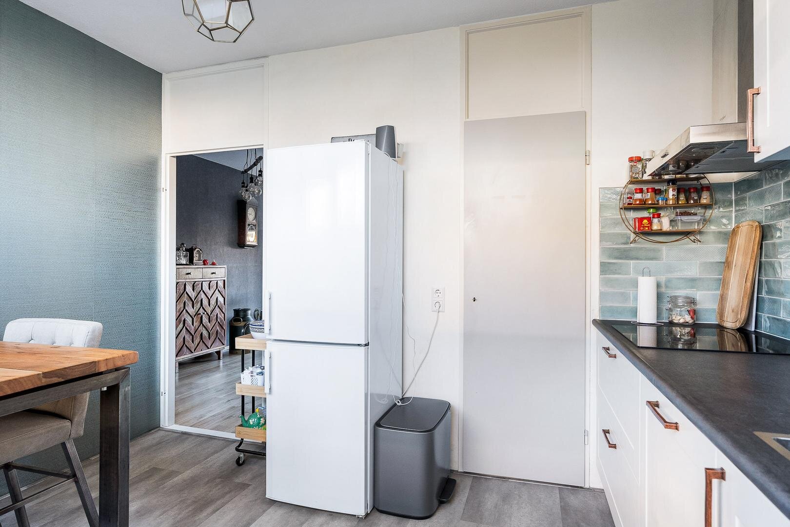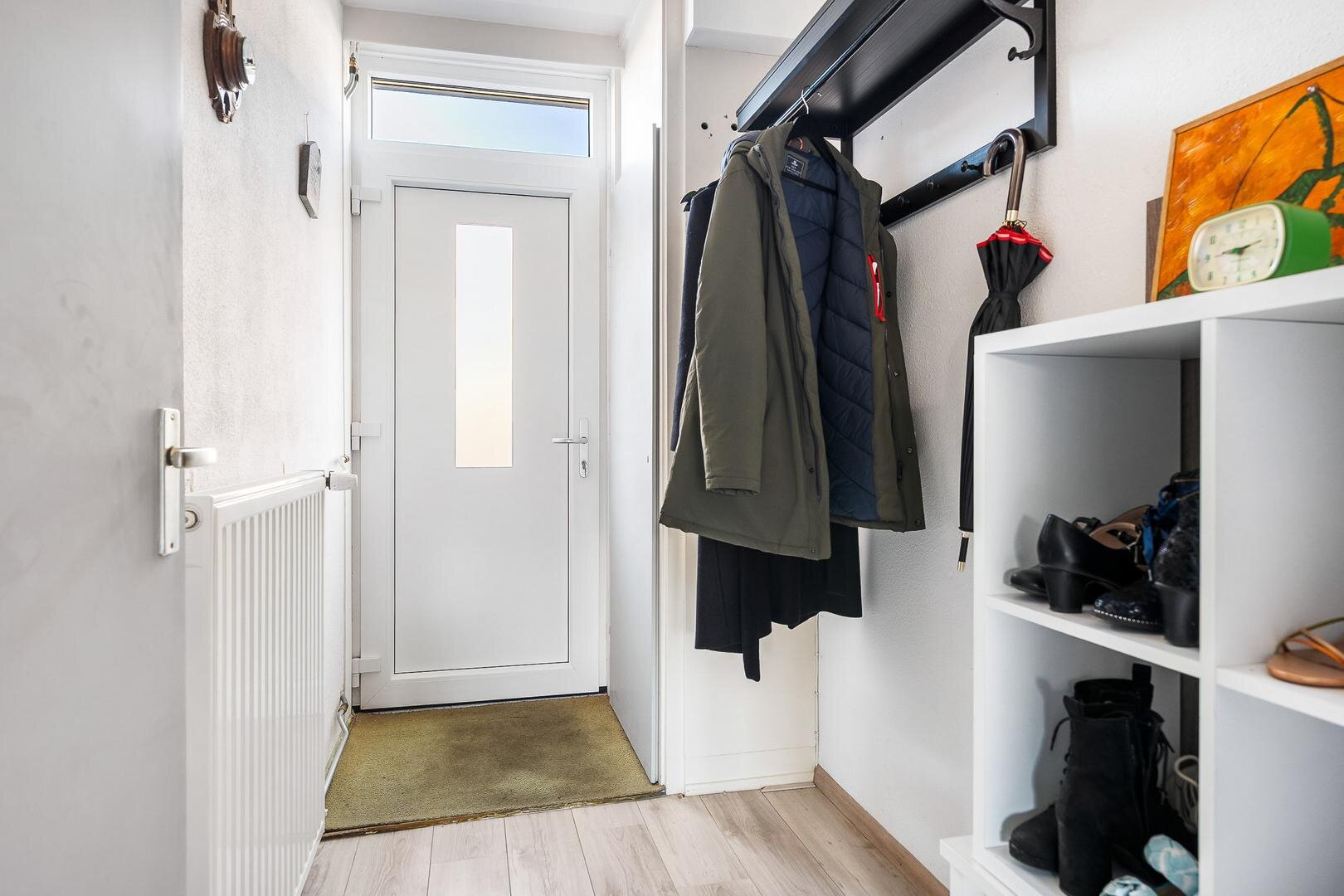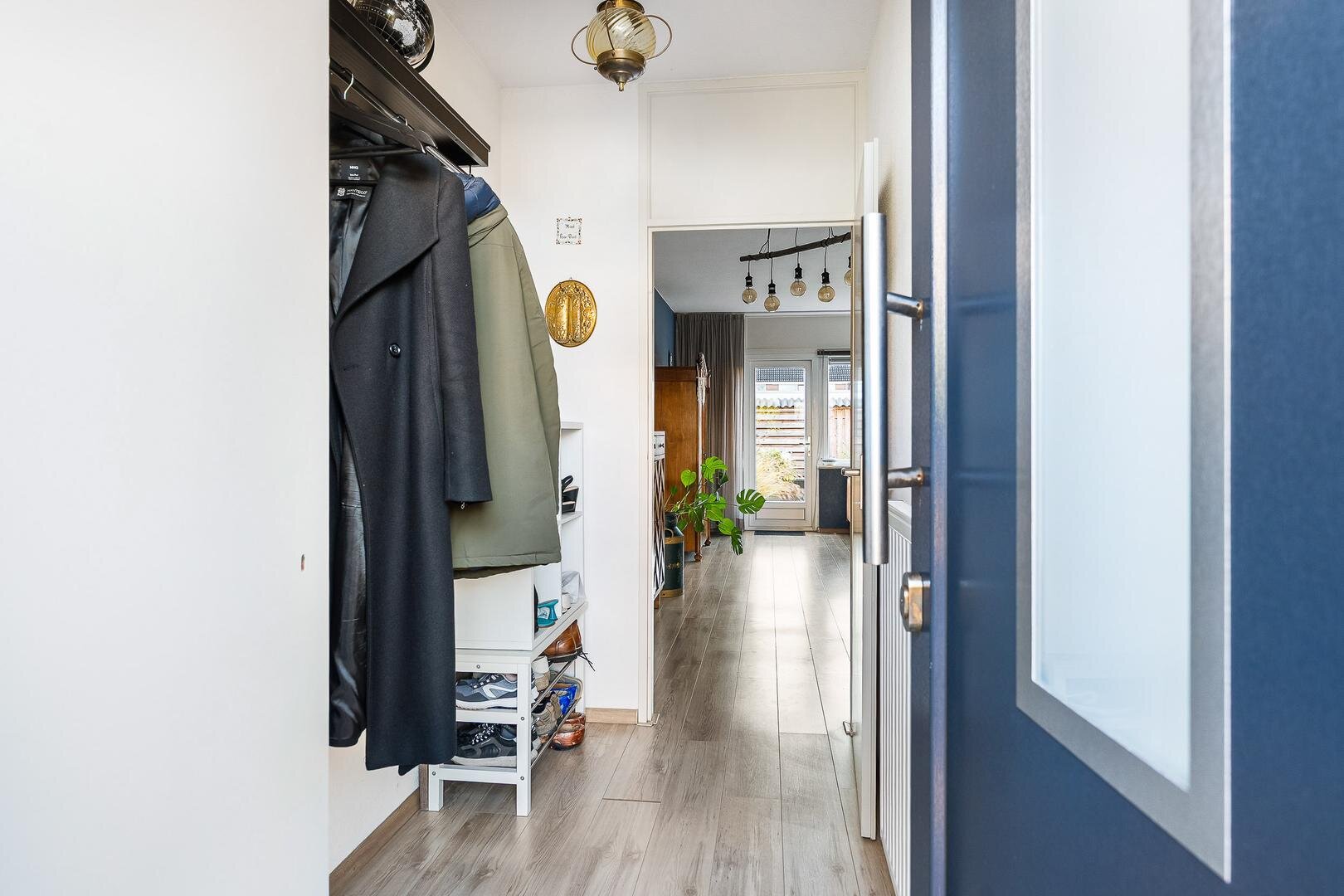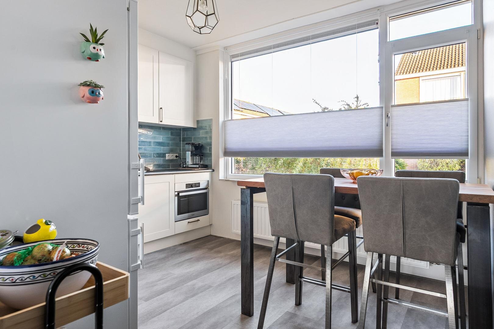 Via de hal met meterkast komt u binnen in de woning. Aan de voorzijde bevindt zich de lichte woonkeuken, voorzien van inbouwapparatuur zoals een vaatwasser, oven en inductiekookplaat. De woonkamer ligt aan de achterzijde, met fijn zicht op de tuin en een prettige lichtinval. De achtertuin is onderhoudsvrij aangelegd en biedt voldoende ruimte voor een lounge-set. Via de achterzijde bereikt u de carport en de stenen berging, ideaal voor fietsen en tuingereedschap.