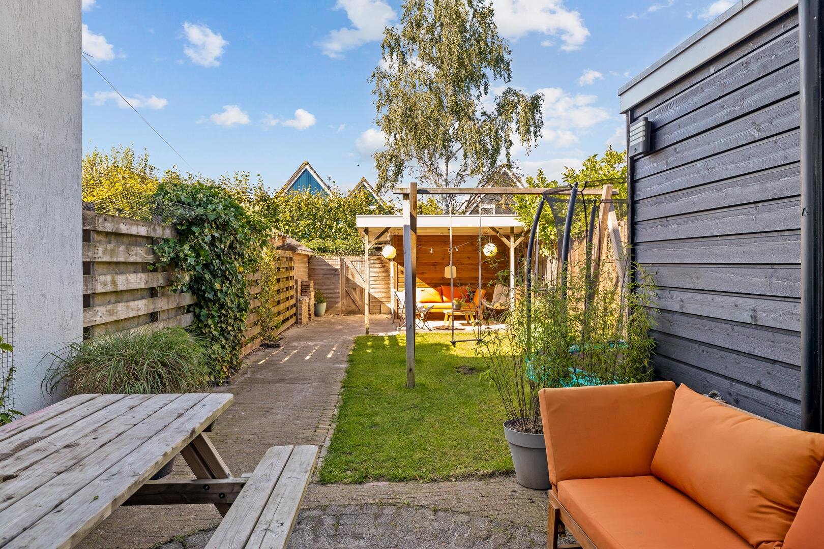 We nemen je mee door de woning. Bij aankomst valt meteen de prettige ligging op. Er is veel groen in de gezellige straat en je parkeert je auto voor de woning. De ruime hal met garderobe en toilet geeft toegang tot de woonkamer, een prachtige lichte ruimte met een speelse indeling. De strakke open keuken (2023) en de mooie openslaande deuren zorgen voor heerlijk veel licht en een fijne verbinding met de tuin. Dus op een mooie zomerdag zwaai je de deur open en haal je de zon naar binnen. De tuin heeft de hele dag zon, ligt op het zuidwesten en is 14 meter diep. Wil je de avond gezellig afsluiten met vrienden of familie? De aanwezige terrassen bieden de mogelijkheid om nog tot laat gezellig buiten te zitten. Achterin de tuin staat een mooie schuur die voorzien is van elektra.