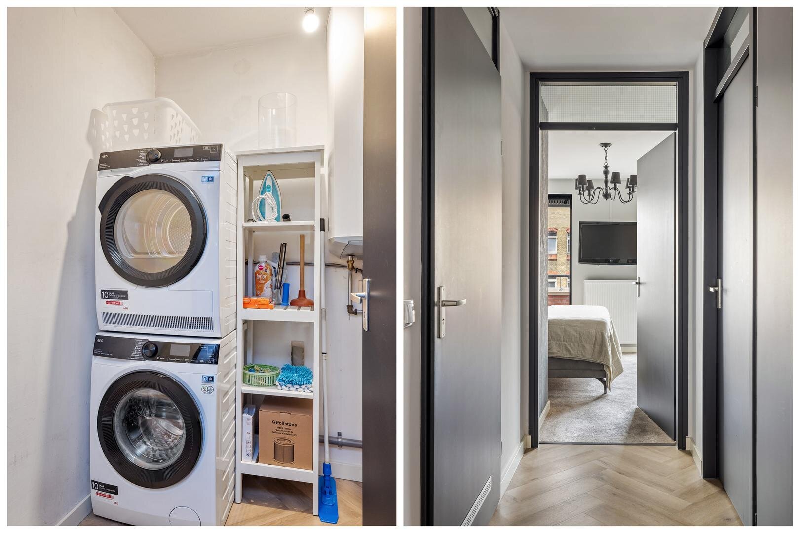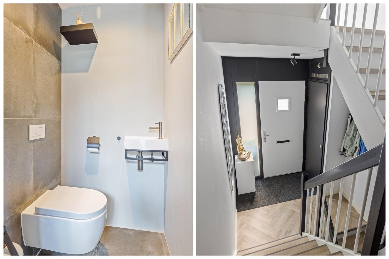 - Overloop met toilet en fonteintje, technische ruimte met CV-ketel, boiler, ventilatie-unit en witgoedaansluitingen;