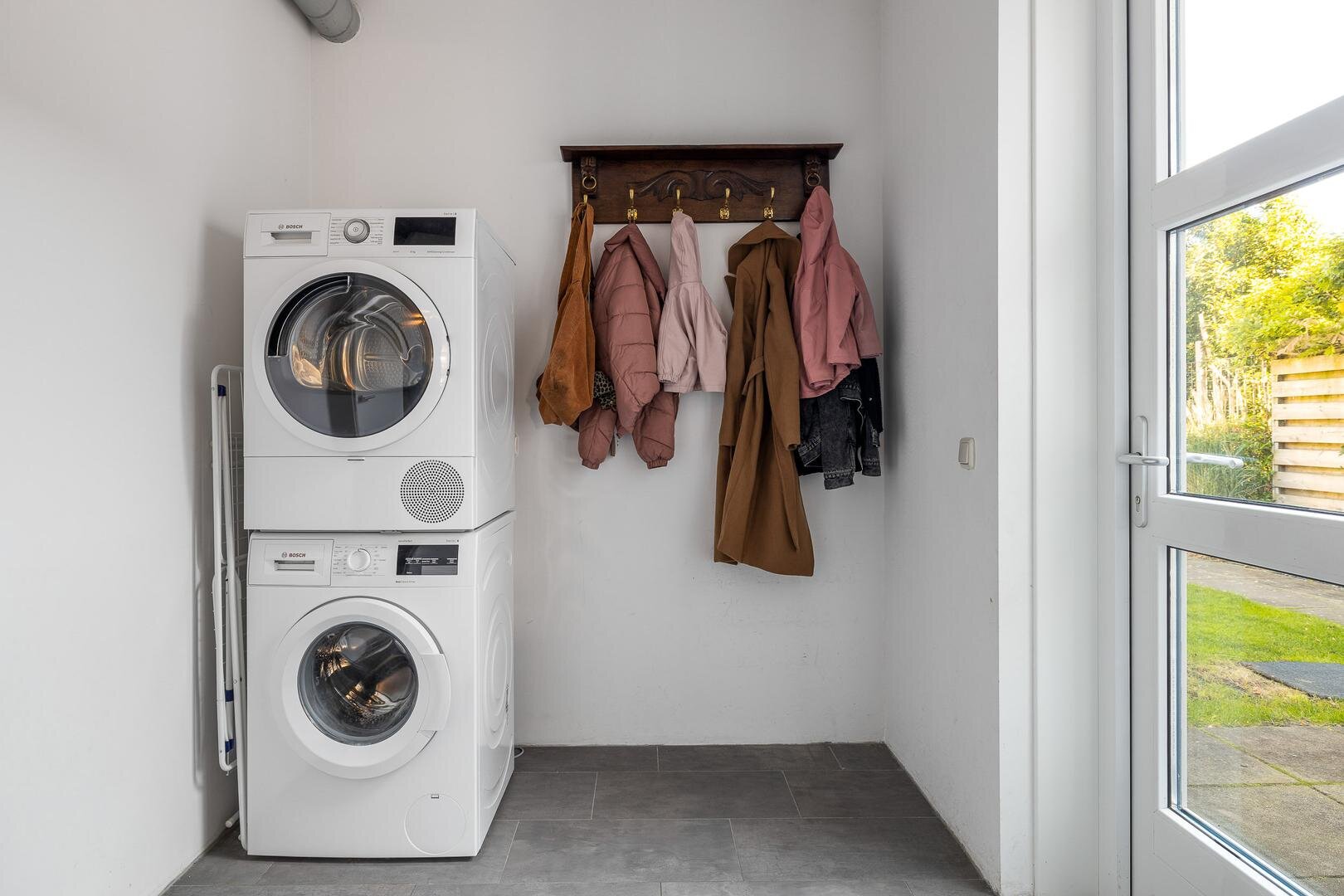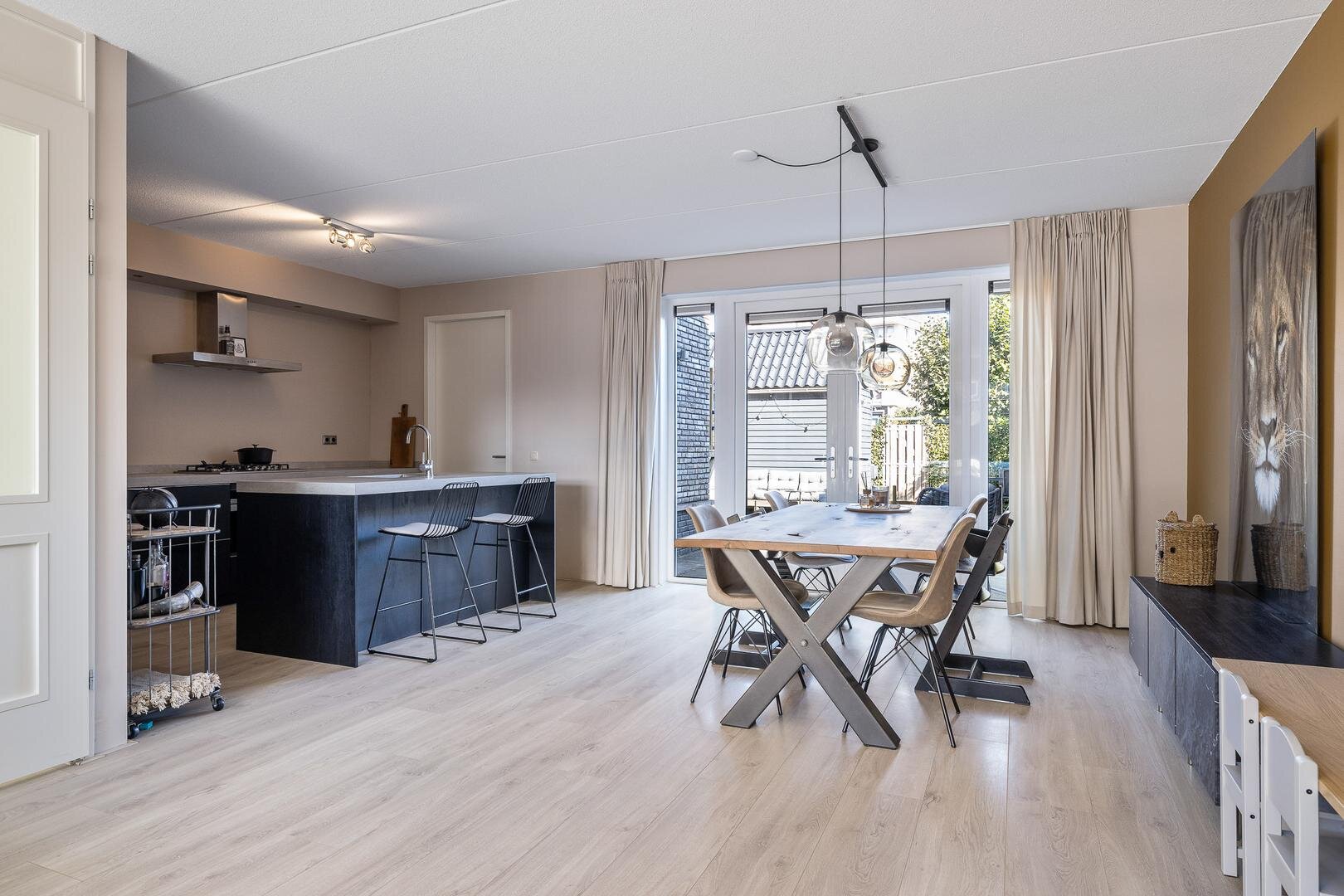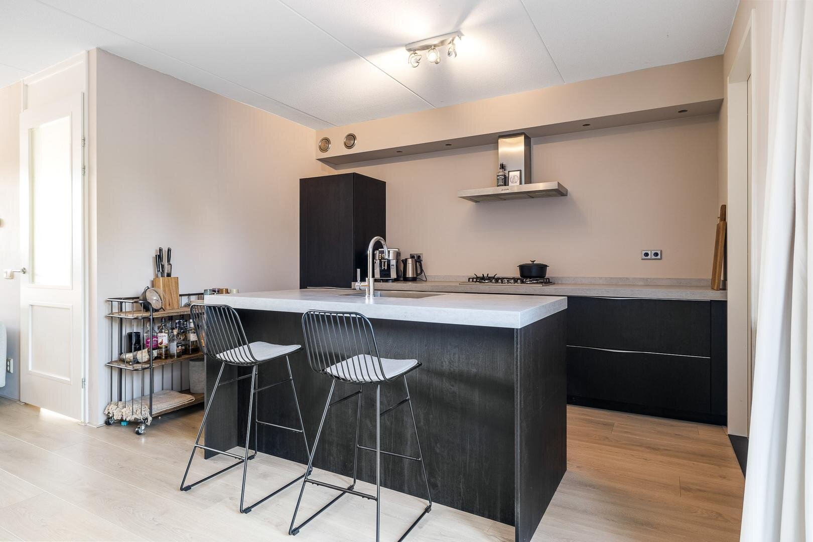 De open keuken uit 2017 is ingericht met een gezellige bar en uitgerust met diverse inbouwapparatuur, waaronder een koel-vriescombinatie, vaatwasser en koken op gas. Vanuit de keuken heb je toegang tot de bijkeuken, waar de aansluitingen voor witgoed zich bevinden.