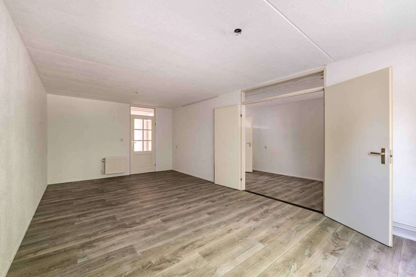 - Flexibel in te delen woonkamer met mogelijkheid tot extra leefruimte via dubbele deuren