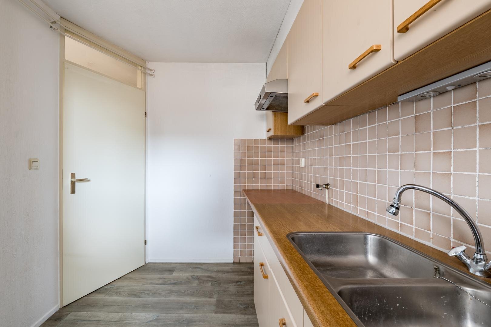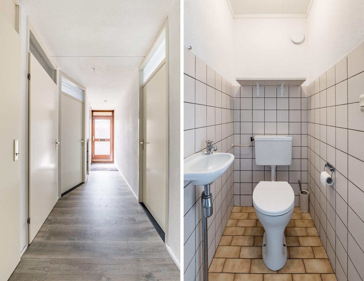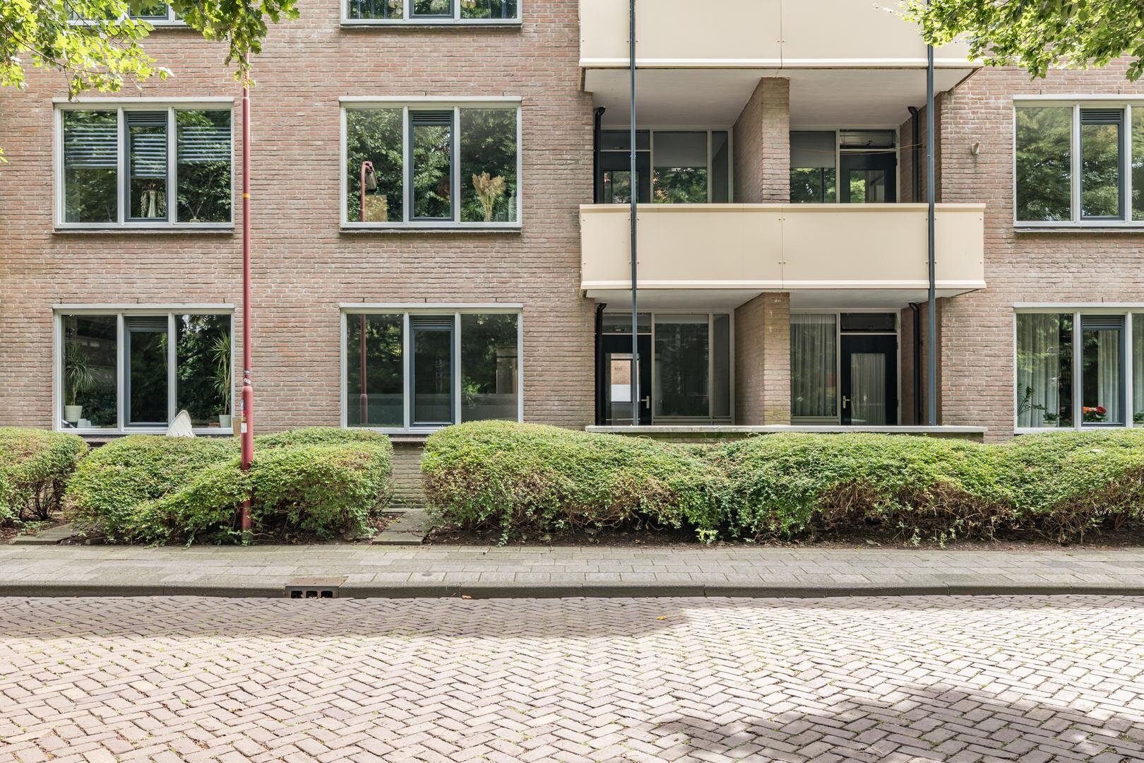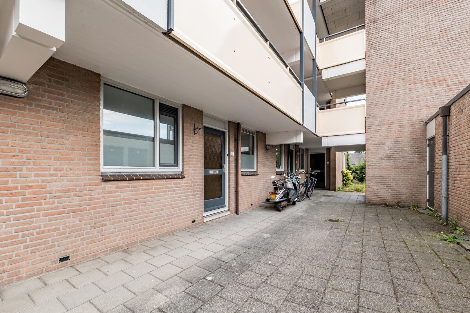 Het complex is toegankelijk via een centrale entree met intercomsysteem. De gezamenlijke hal biedt een gastvrije ontvangst. Omdat het appartement op de begane grond ligt, heb je direct toegang zonder trappen of liftgebruik, ideaal voor iedereen die gelijkvloers wil wonen. De entree van de woning komt uit in een hal die toegang geeft tot de eerste slaapkamer, de keuken, het toilet, bergruimte en de woonkamer. De woonkamer is op verschillende manieren in grootte en vorm in te delen. Naar keuze kan de aangrenzende kamer via de dubbele deuren bij de woonkamer worden betrokken, wat zorgt voor extra leefruimte of juist een aparte werk- of hobbykamer. Vanuit deze tweede kamer stap je zo het terras op het noorden op, een rustige plek waar je in de luwte geniet van de buitenlucht, een kop koffie of een goed boek. De badkamer, voorzien van een bad-douchecombinatie, wastafel en aansluitingen voor het witgoed, is bereikbaar vanuit zowel de eerste als de tweede slaapkamer.