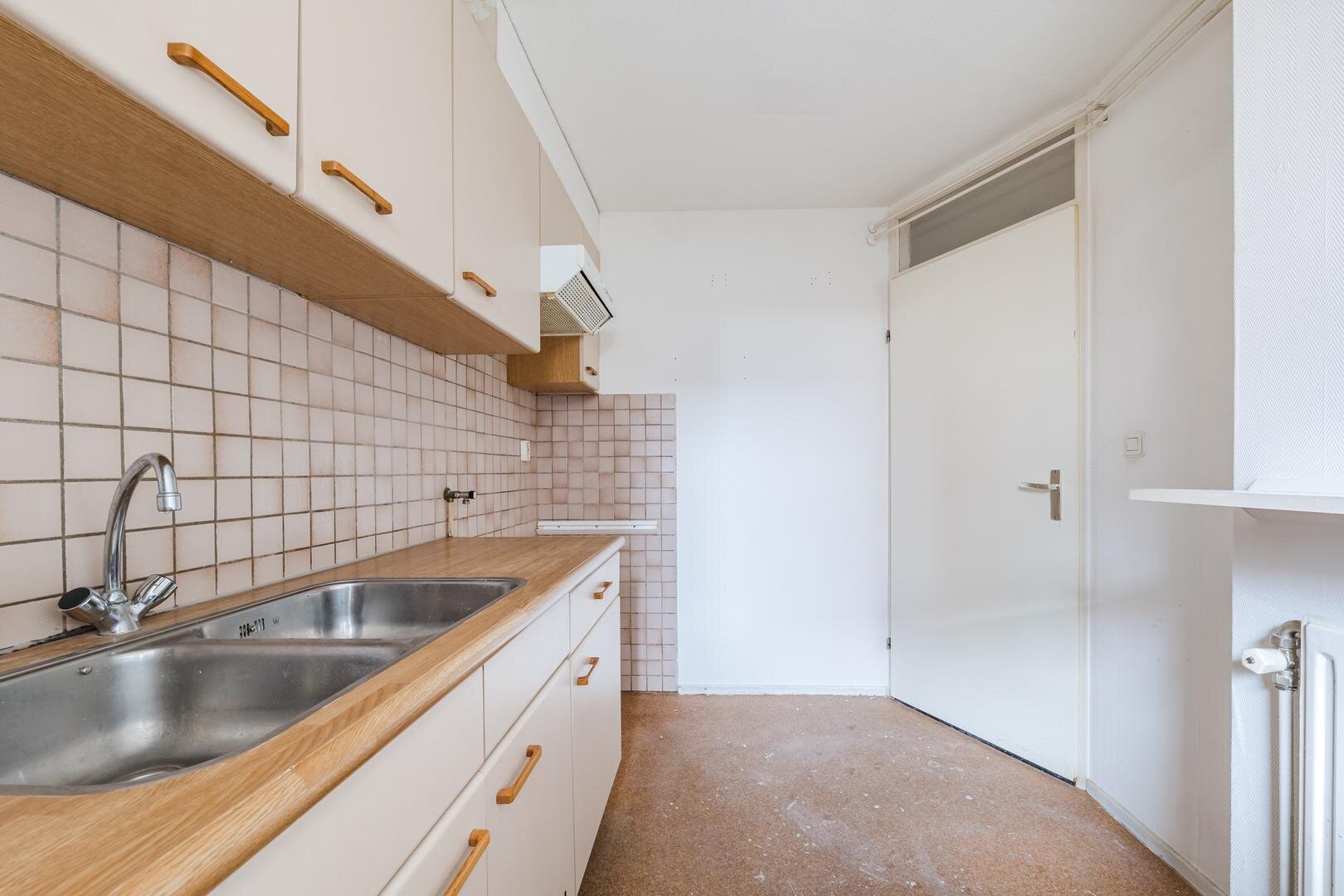 Dit appartement is gelegen op de begane grond. Het appartement zelf begint met een gang die toegang geeft tot de eerste slaapkamer, de keuken, het toilet, kastruimte en de woonkamer. De woonkamer is licht en prettig van formaat, met dubbele deuren naar een tweede kamer. Deze ruimte kun je op meerdere manieren gebruiken: als volwaardige slaapkamer, werk- of studeerkamer, of als je meer openheid wilt kun je deze ruimte ook goed samenvoegen met de woonkamer. Vanuit deze slaapkamer heb je toegang tot het balkon. Dichte keuken heeft een rechte opstelling. De badkamer is bereikbaar vanuit beide slaapkamers en voorzien van een bad douchecombinatie, wastafel en aansluiting voor witgoed.