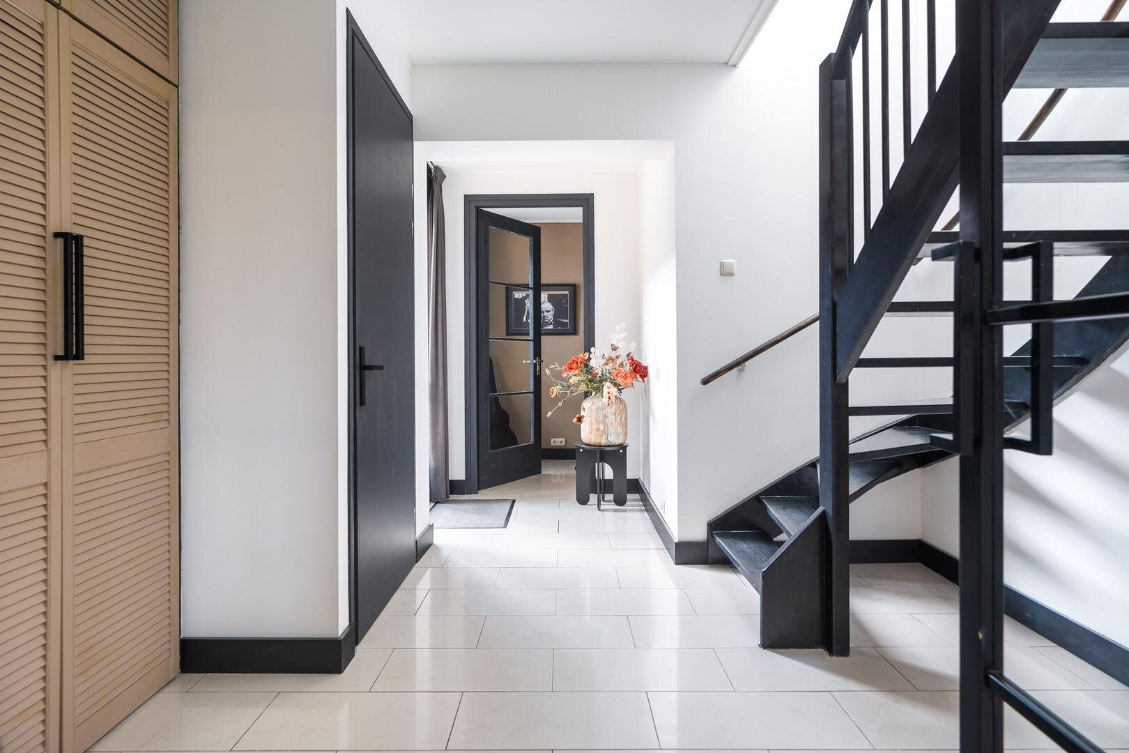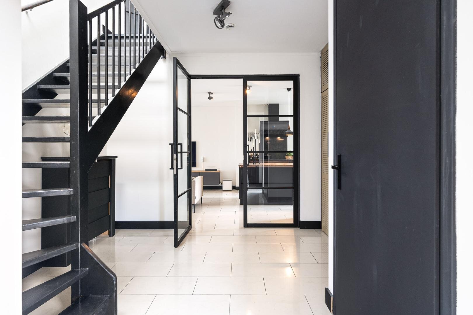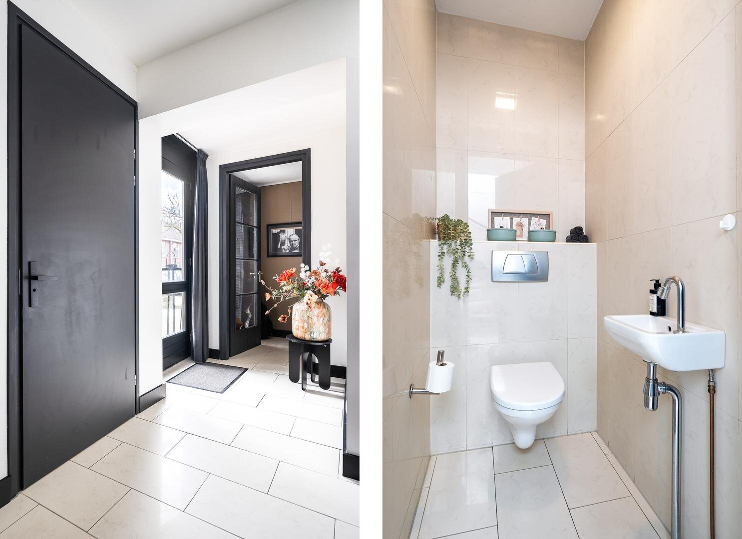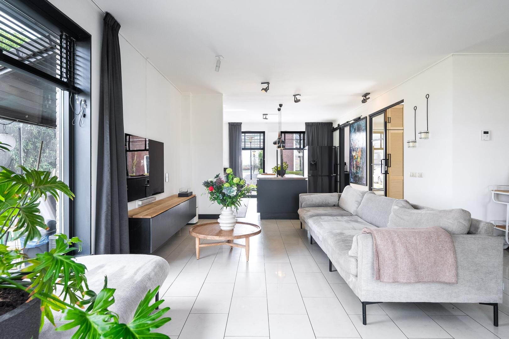 Je wordt verwelkomd in een ruime entree die direct de toon zet voor de rest van de woning: licht, ruimte en comfort. De royale leefruimte is voorzien van grote raampartijen en een strakke, moderne afwerking, waardoor binnen en buiten naadloos in elkaar overlopen. De woonkamer biedt volop mogelijkheden voor meerdere zithoeken en staat via een grote schuifpui in directe verbinding met de tuin en de serre.