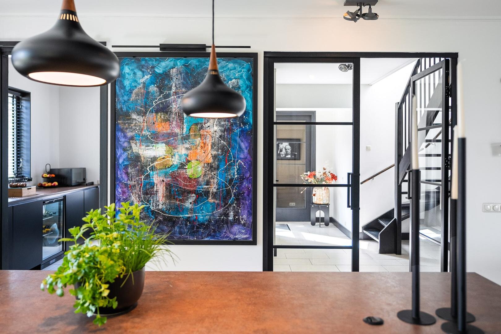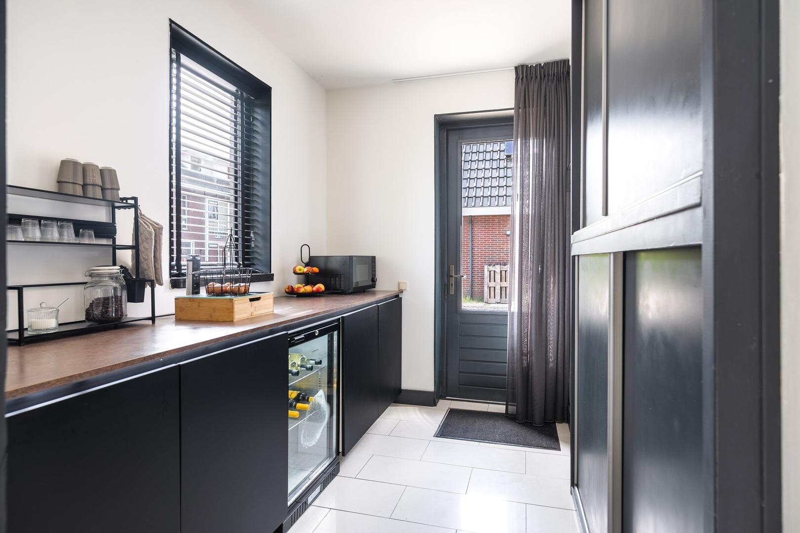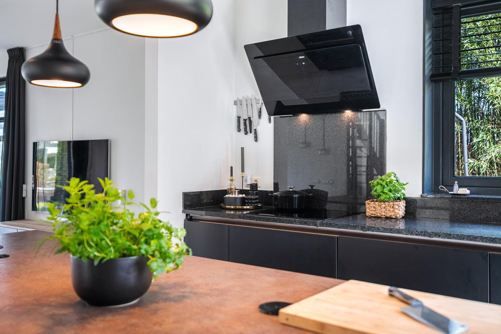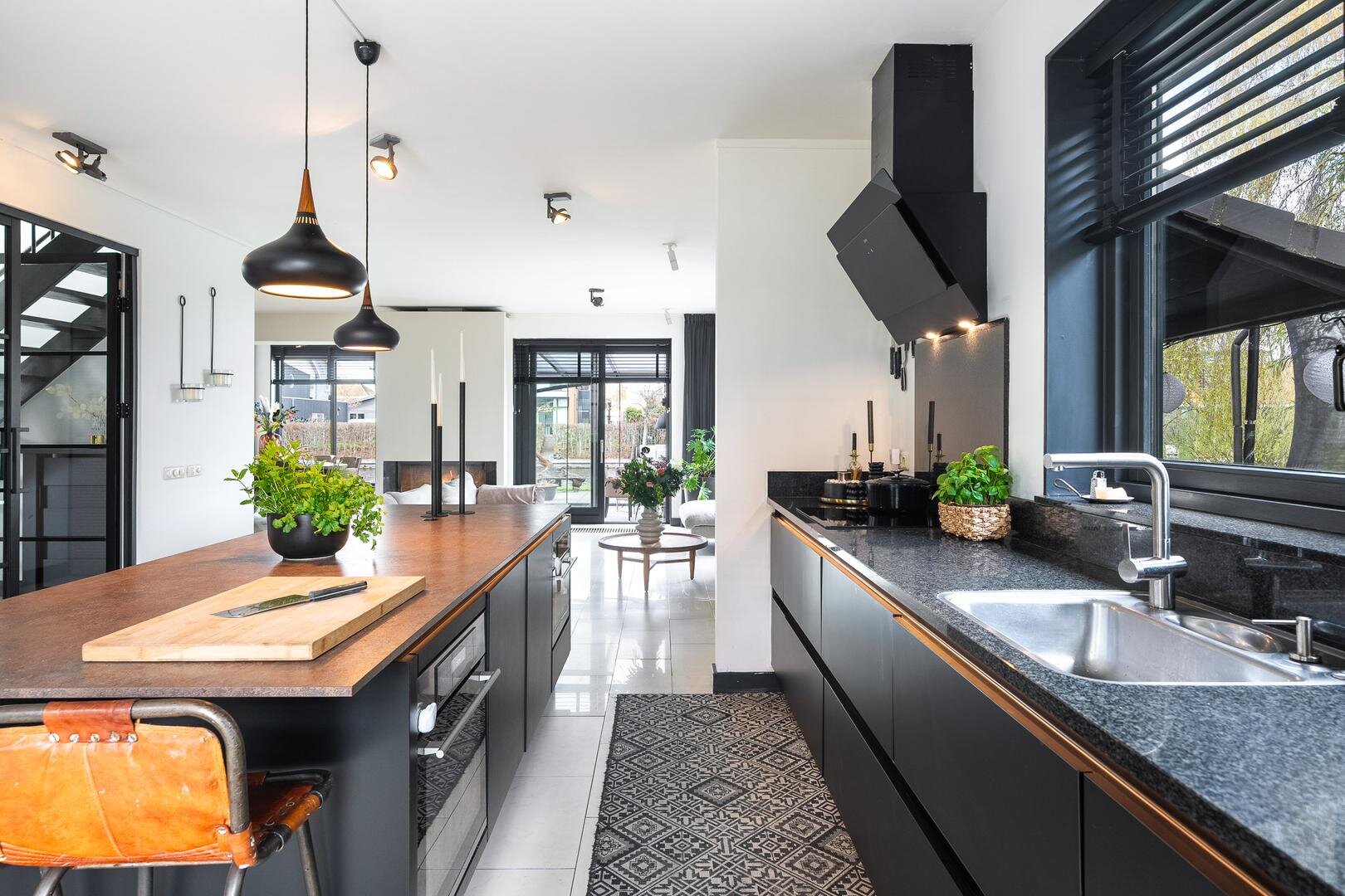De luxe open keuken vormt het hart van het huis en is uitgevoerd met een royaal kookeiland en hoogwaardige inbouwapparatuur. Hier kook en leef je tegelijk. Perfect voor gezellige avonden met familie en vrienden. Aansluitend vind je een praktische bijkeuken met extra bergruimte en toegang naar buiten.