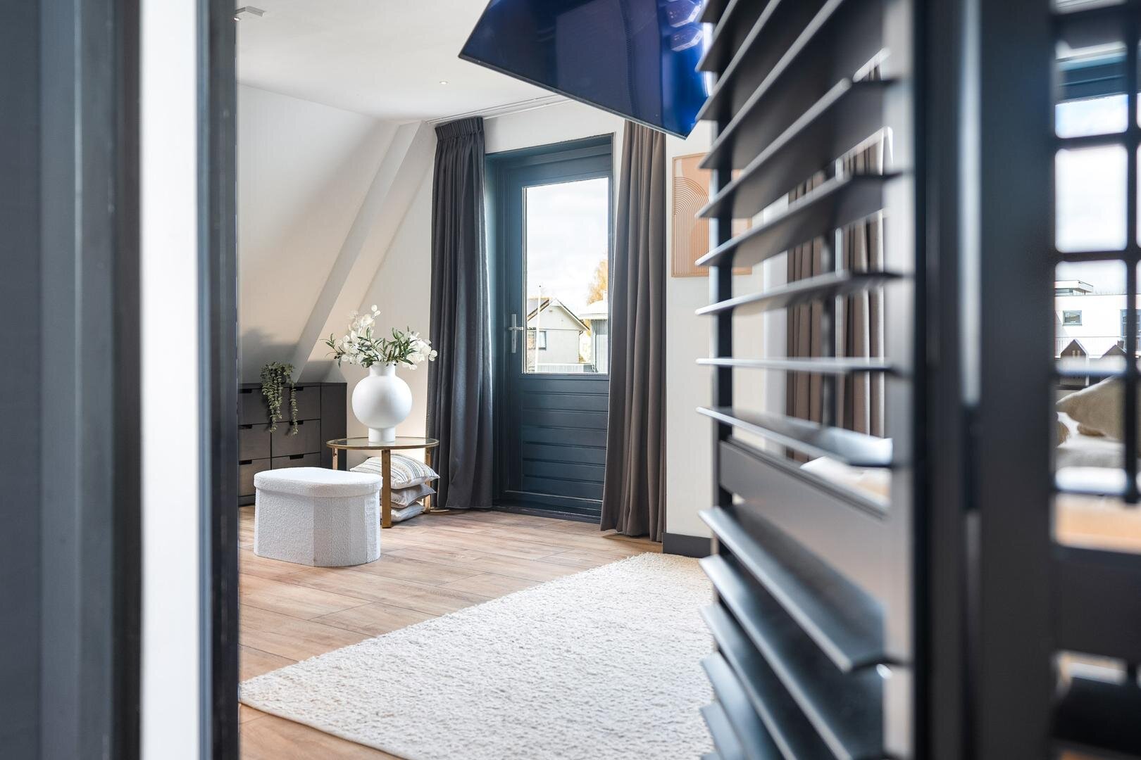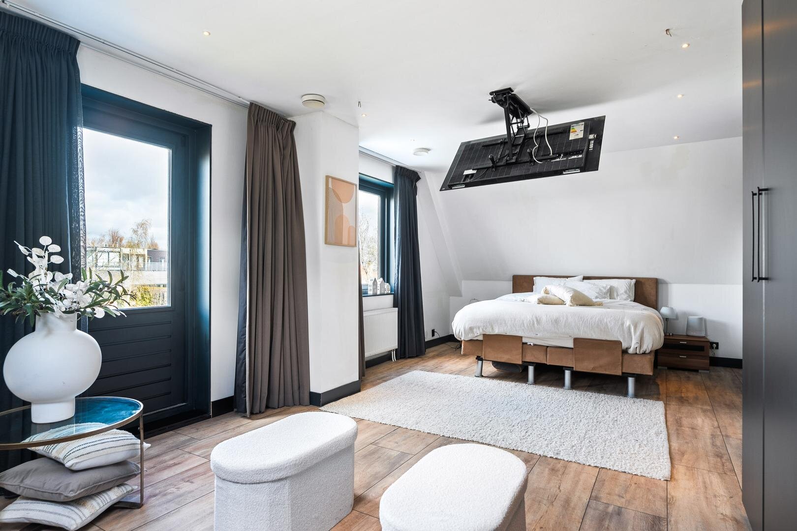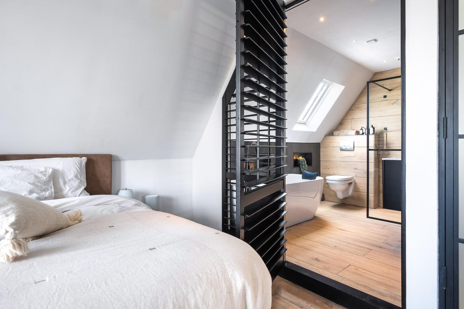 De overloop geeft toegang tot drie ruime slaapkamers. De master bedroom is een echte eyecatcher en beschikt over een directe verbinding met de badkamer, wat zorgt voor een luxe en hotelachtige sfeer. De badkamer is compleet en verzorgd uitgevoerd.