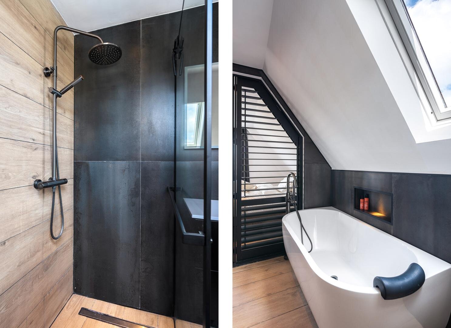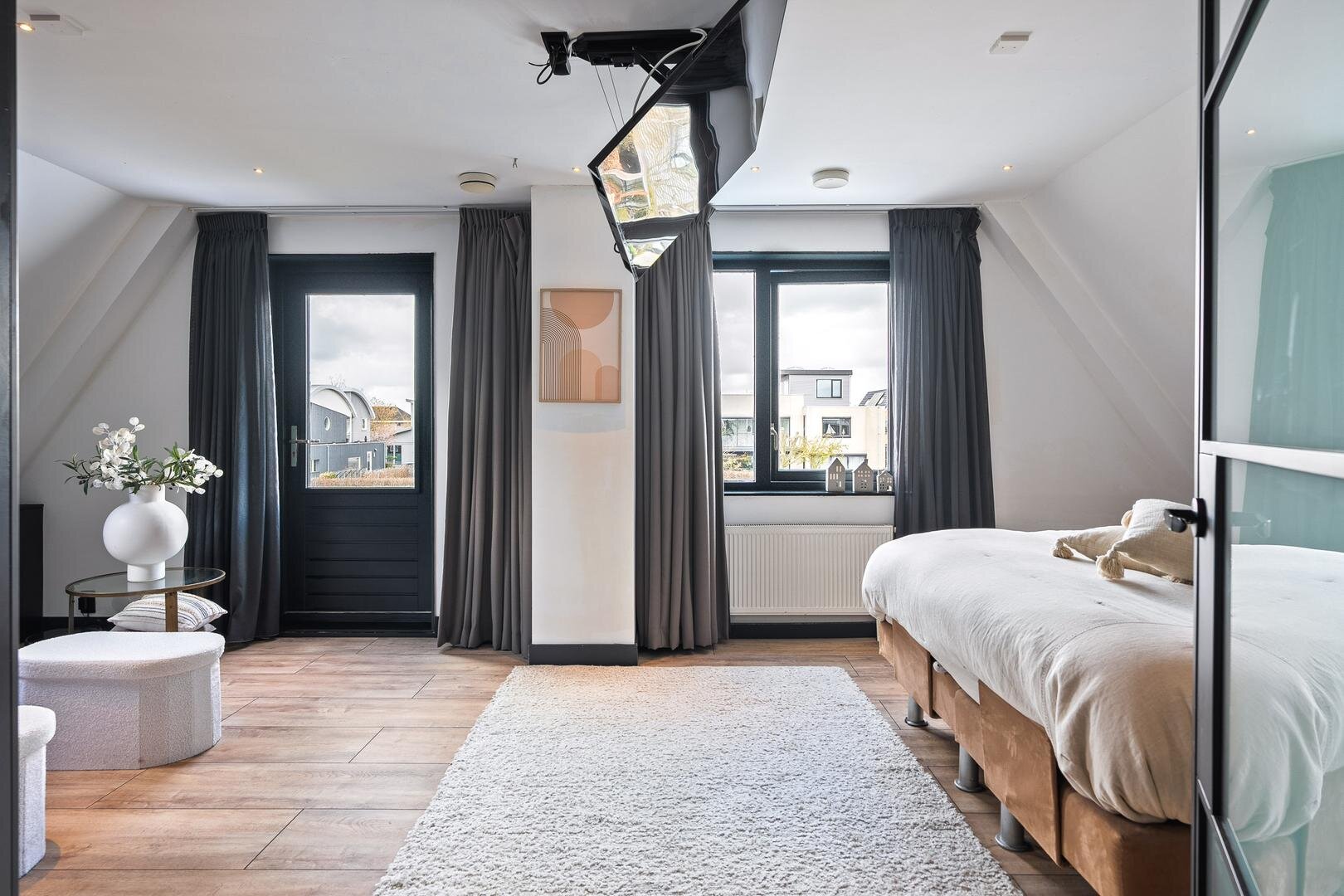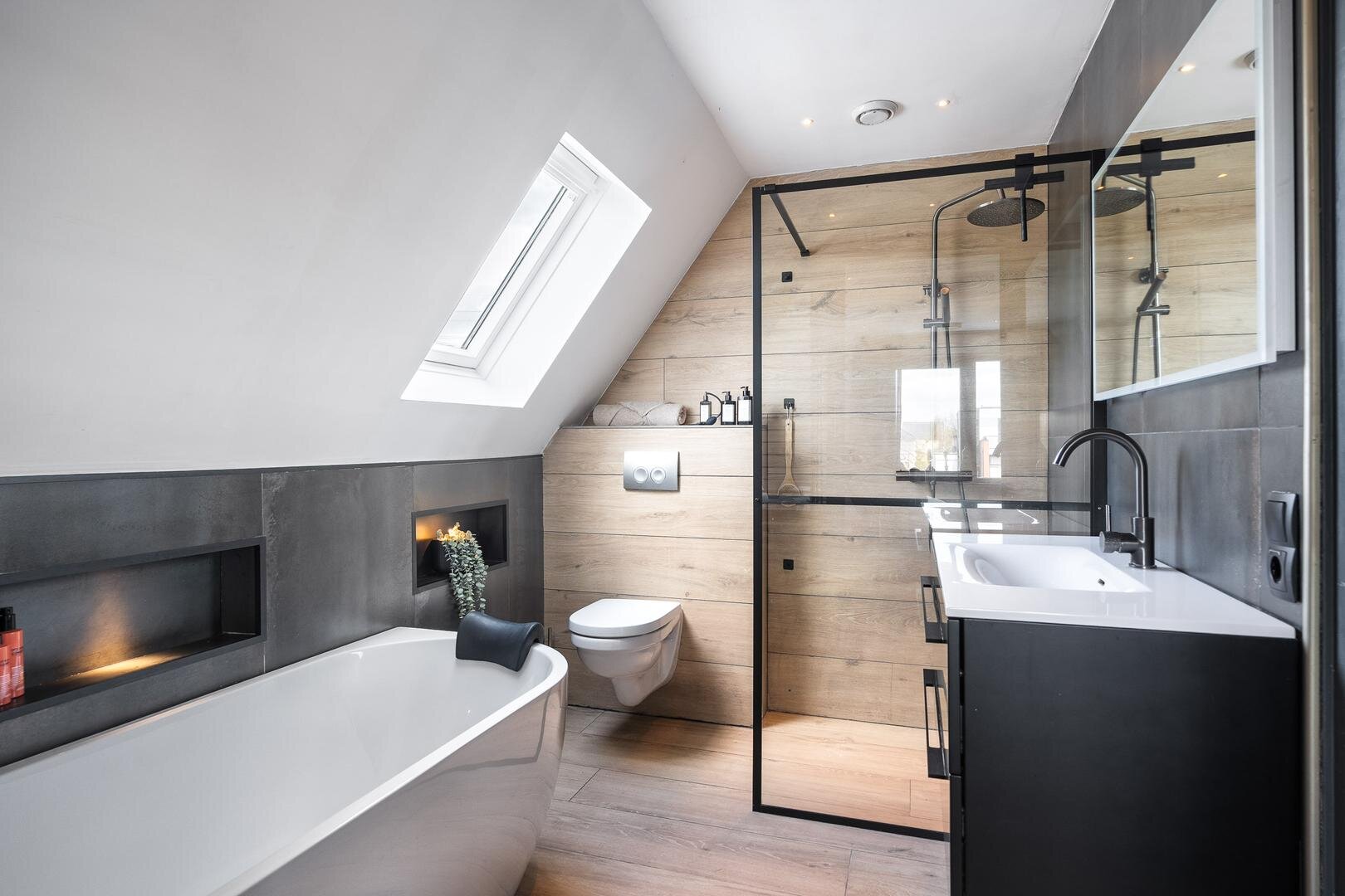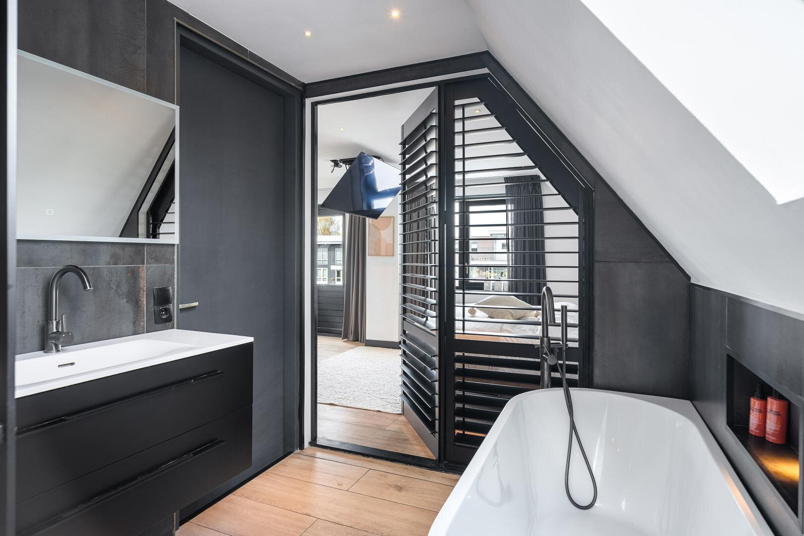 De overloop geeft toegang tot drie ruime slaapkamers. De master bedroom is een echte eyecatcher en beschikt over een directe verbinding met de badkamer, wat zorgt voor een luxe en hotelachtige sfeer. De badkamer is compleet en verzorgd uitgevoerd.